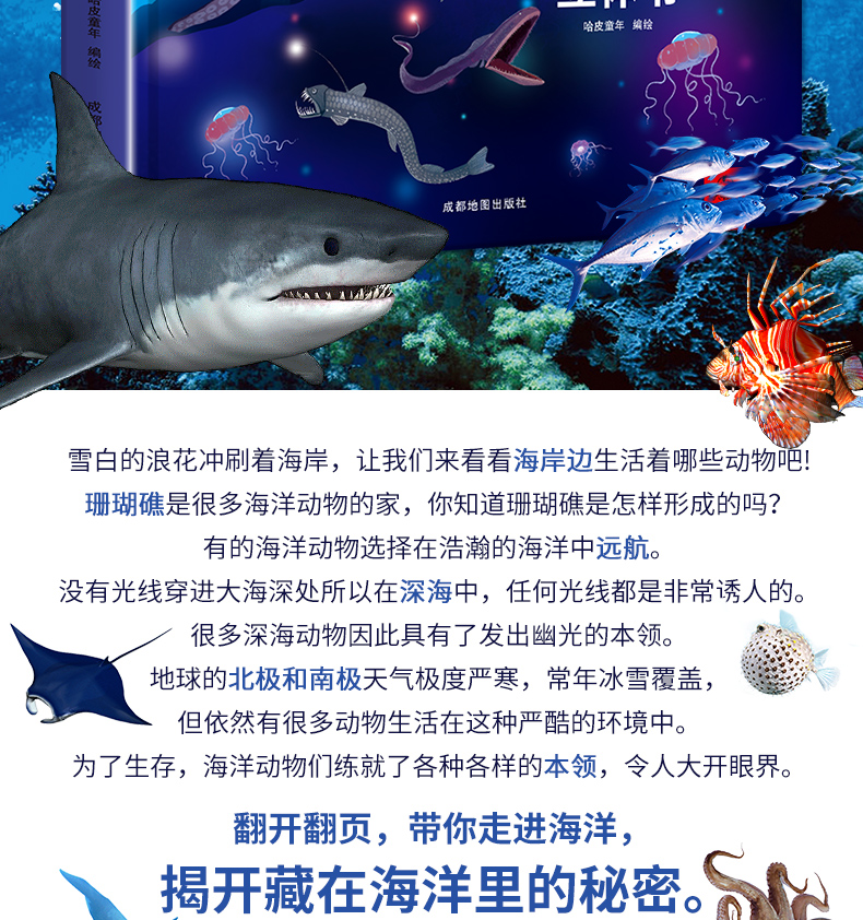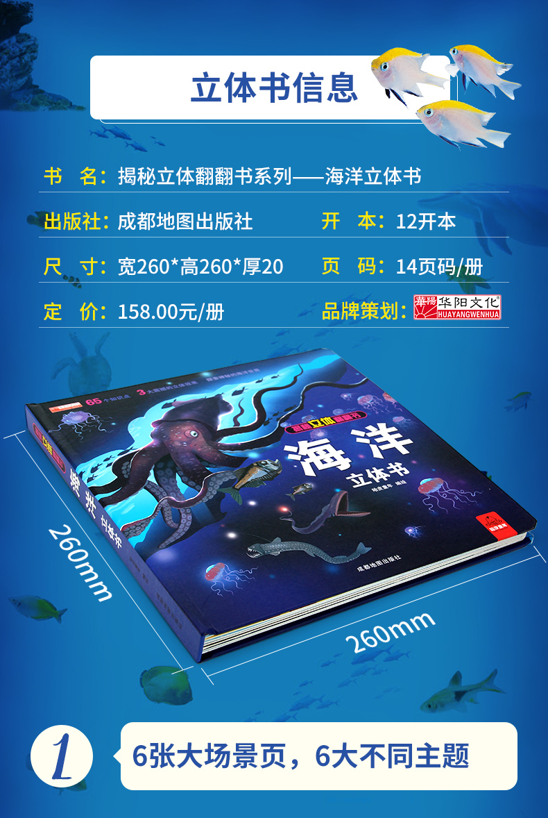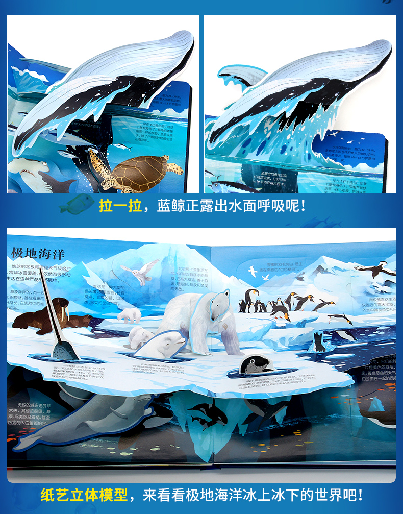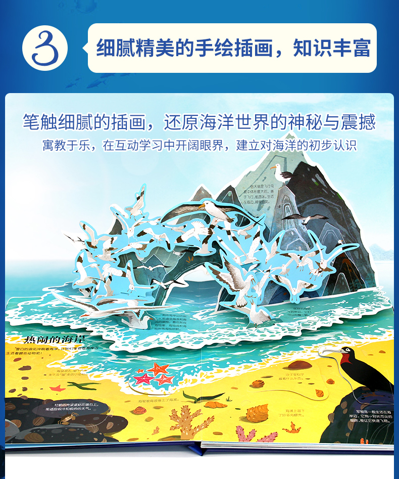探秘海洋立体书3d揭秘系列儿童翻翻书6-8岁以上绘本故事书海底世界科普百科全书宝宝启蒙认知三地折叠书本幼儿园婴儿3岁情景体验