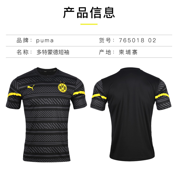 PUMA/彪马多特蒙德赛前热身足球短袖T恤成人男76501802