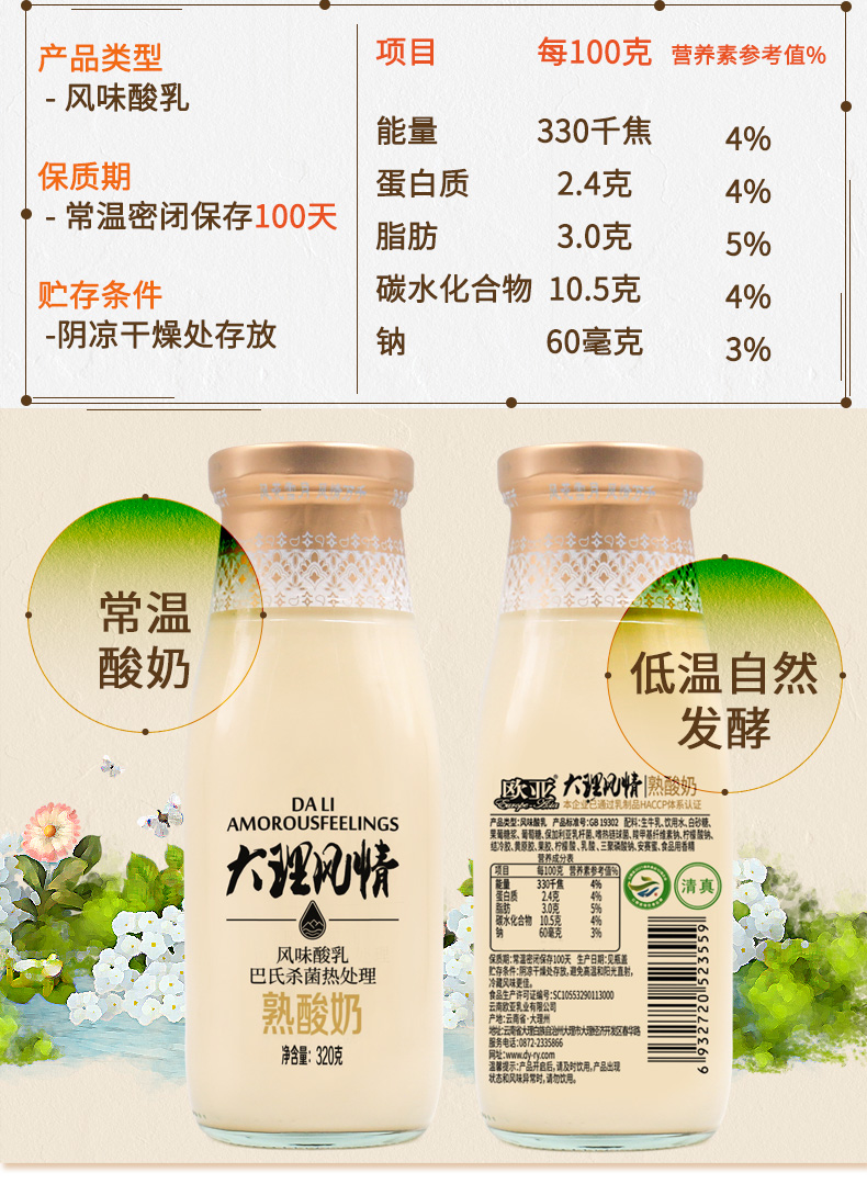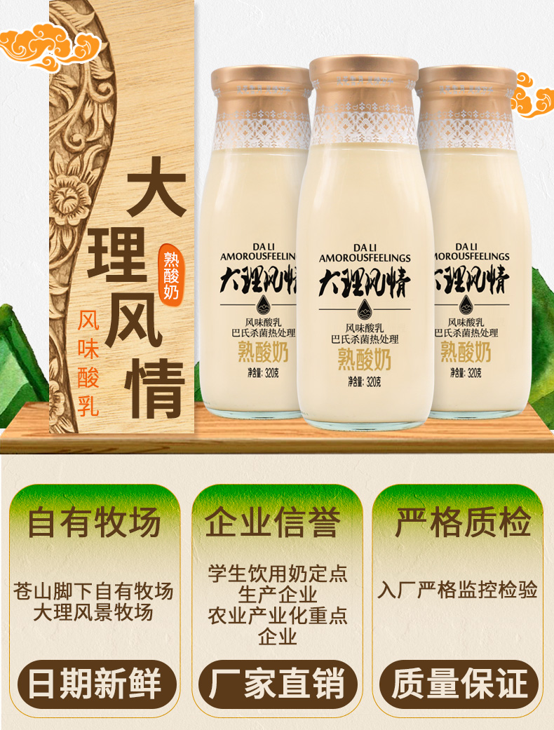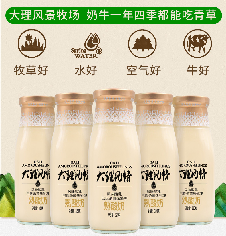 【日期新鲜】欧亚大理风情熟酸奶320g*10瓶乳制品