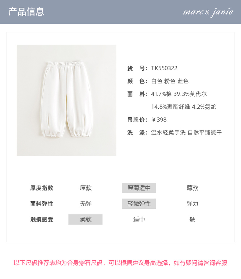 马克珍妮男女童挺括空气运动裤儿童裤子卫裤2025年春装新款550322