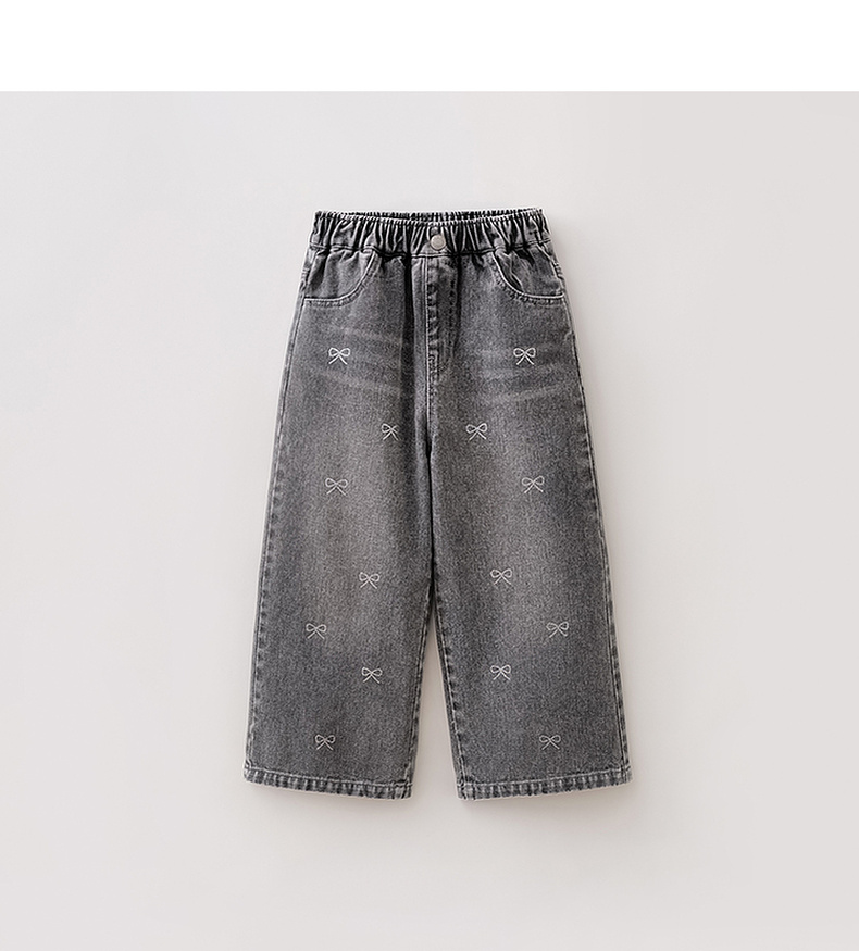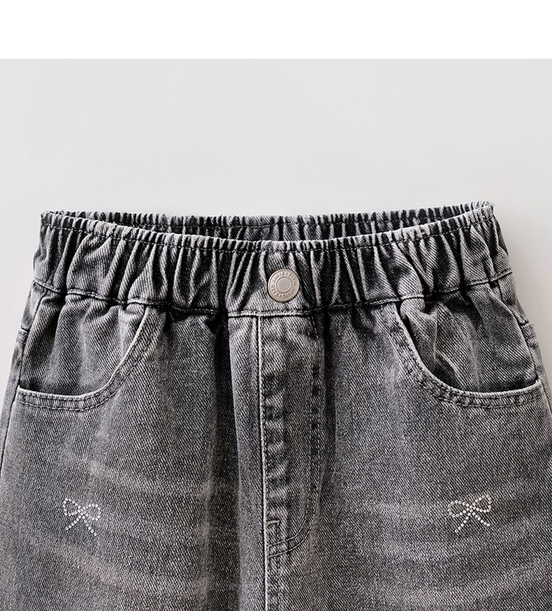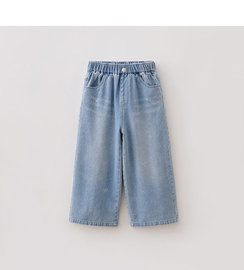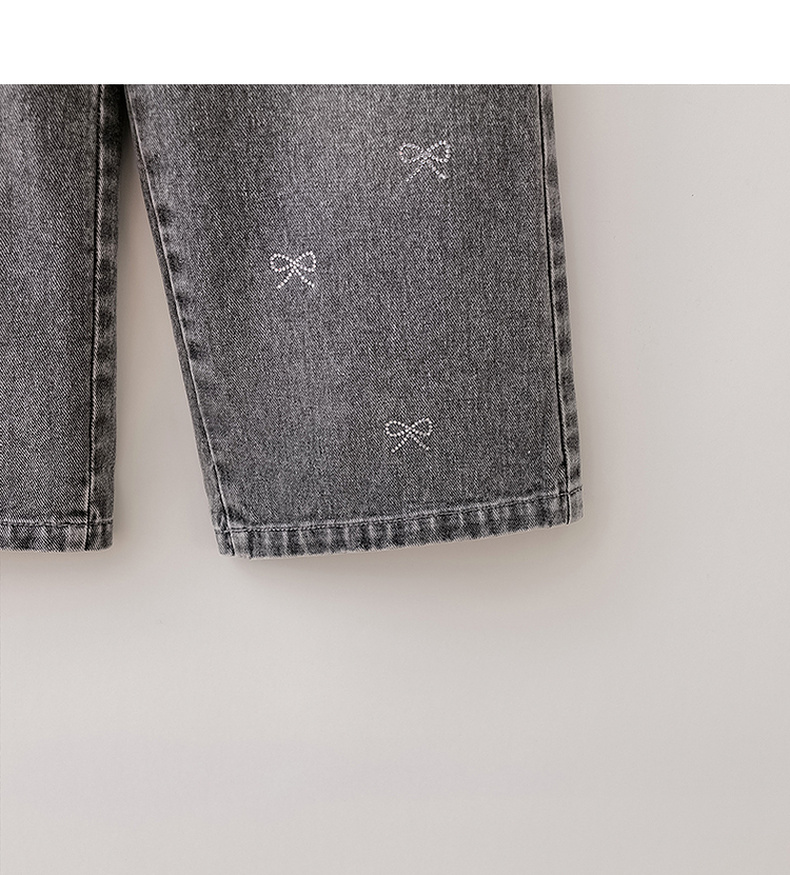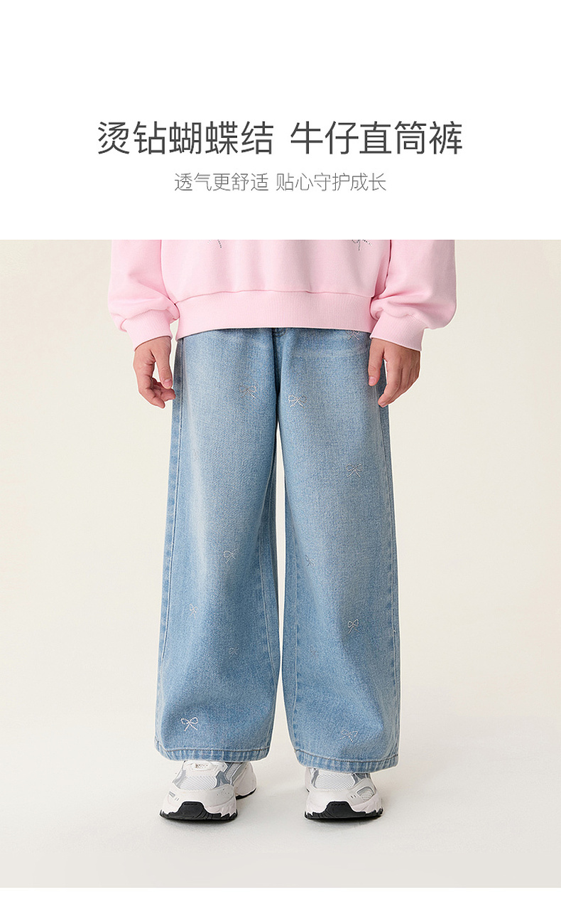 马克珍妮烫钻蝴蝶结女童牛仔直筒裤2026年春装新款560173