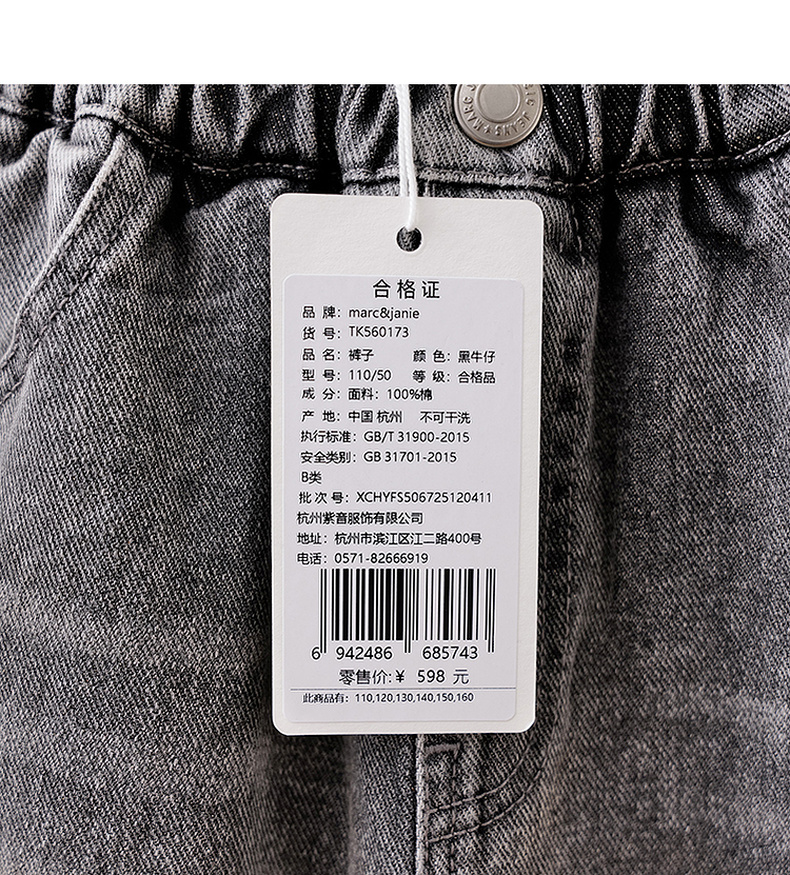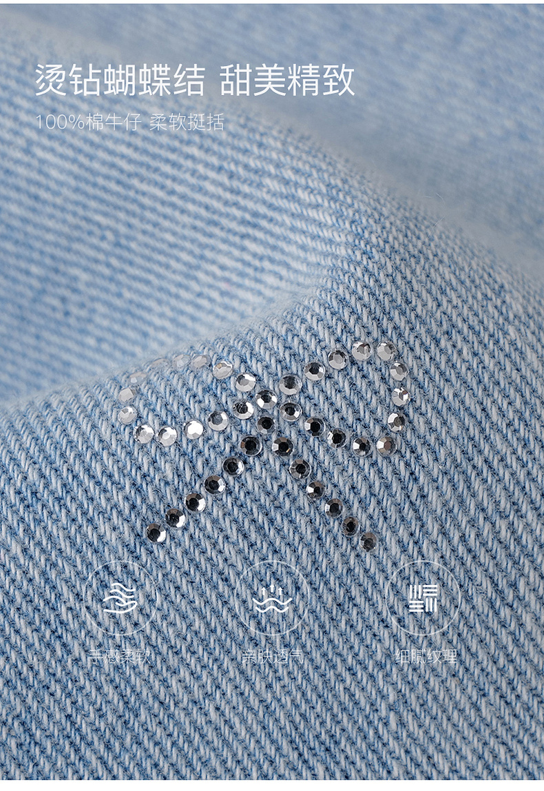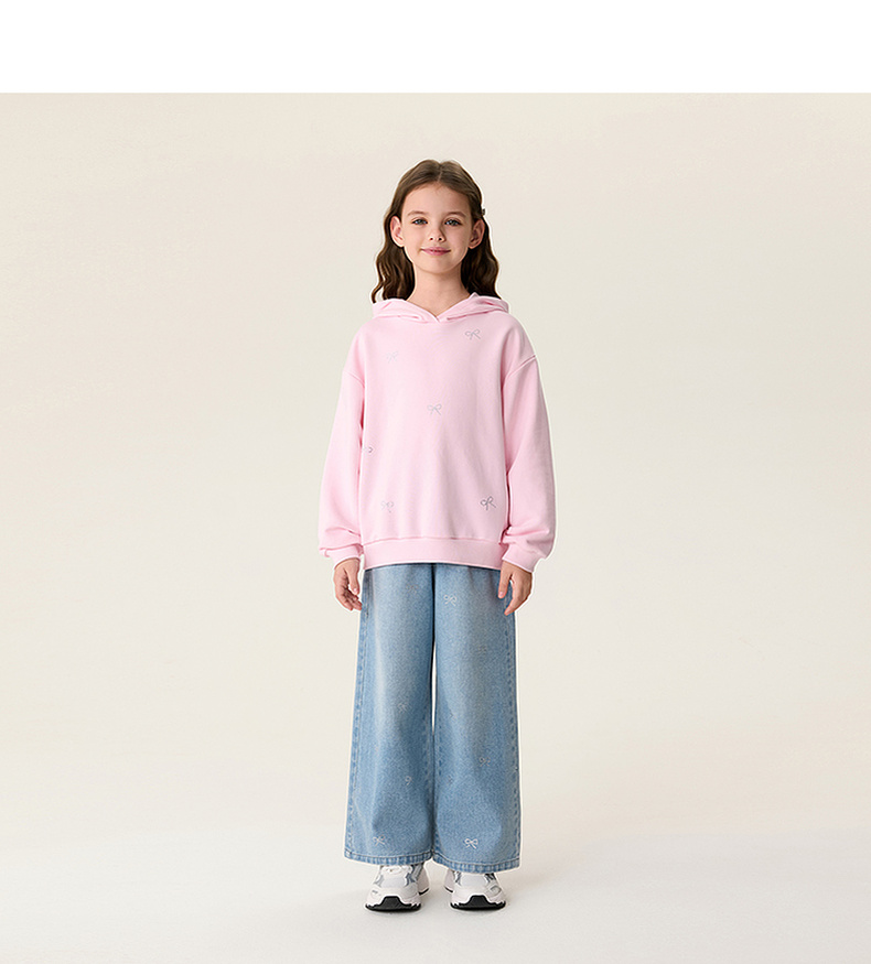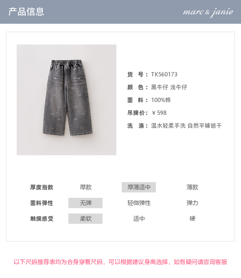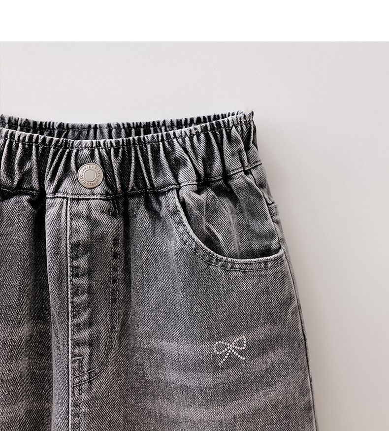 马克珍妮烫钻蝴蝶结女童牛仔直筒裤2026年春装新款560173