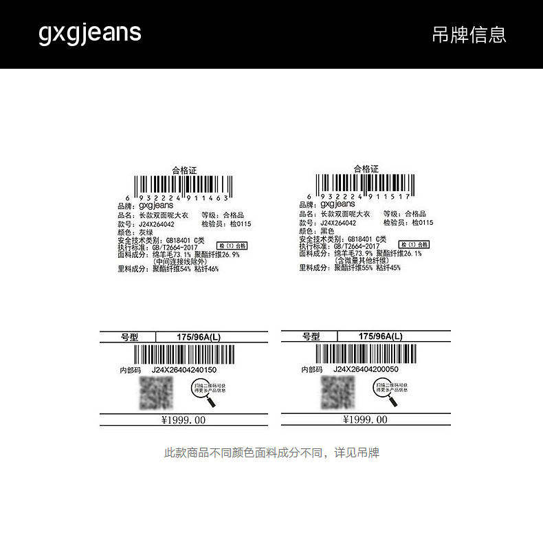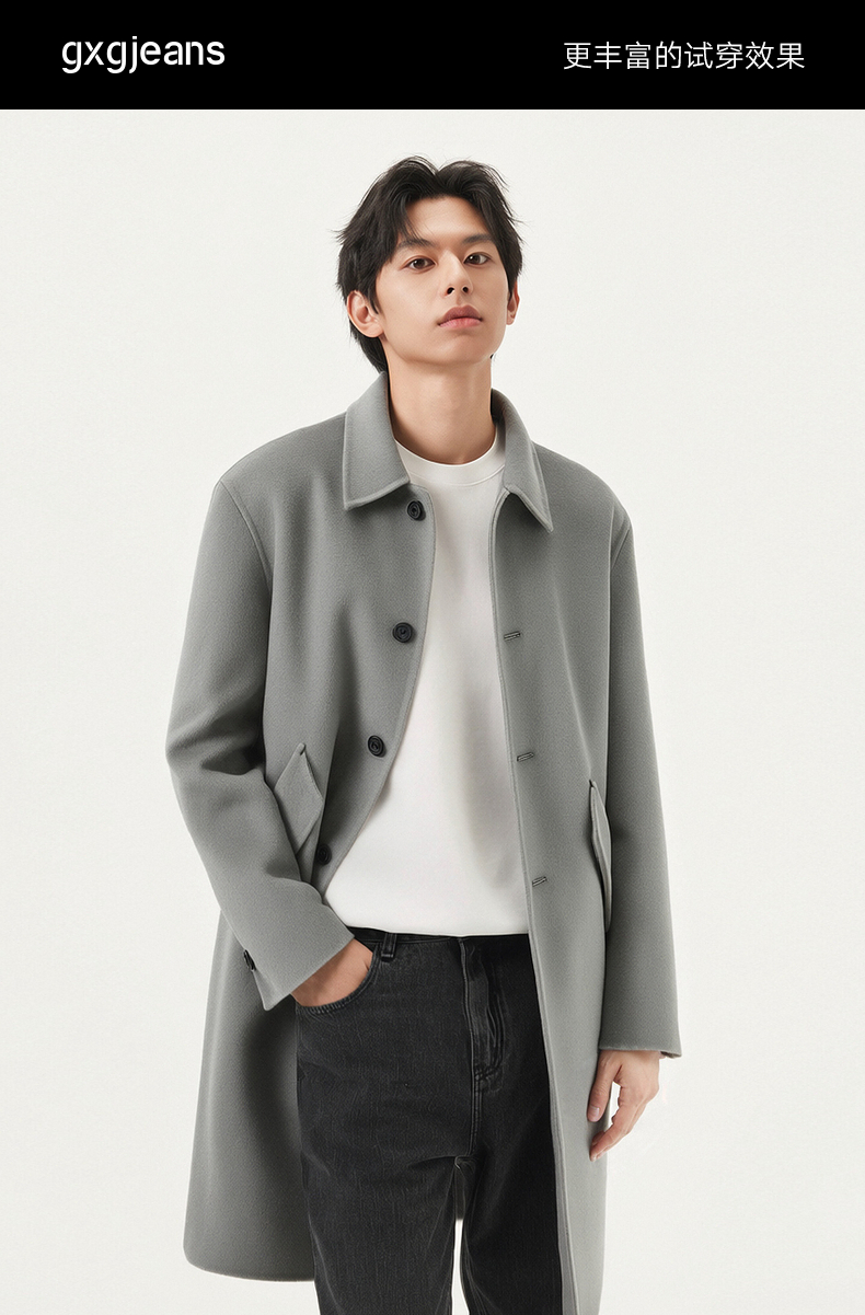 gxg.jeans男装 冬季热卖长款双面呢大衣J24X264042