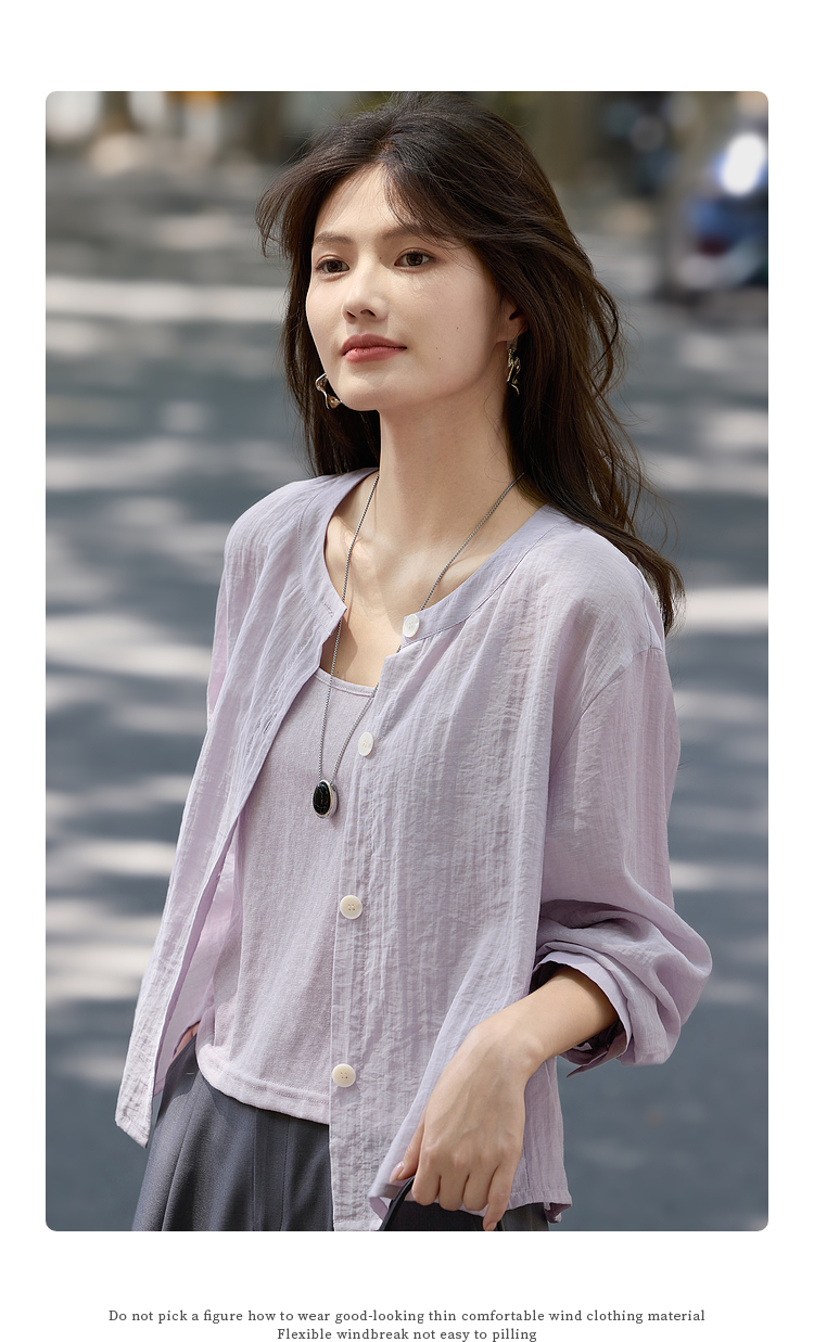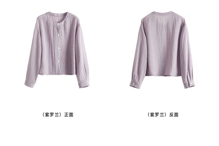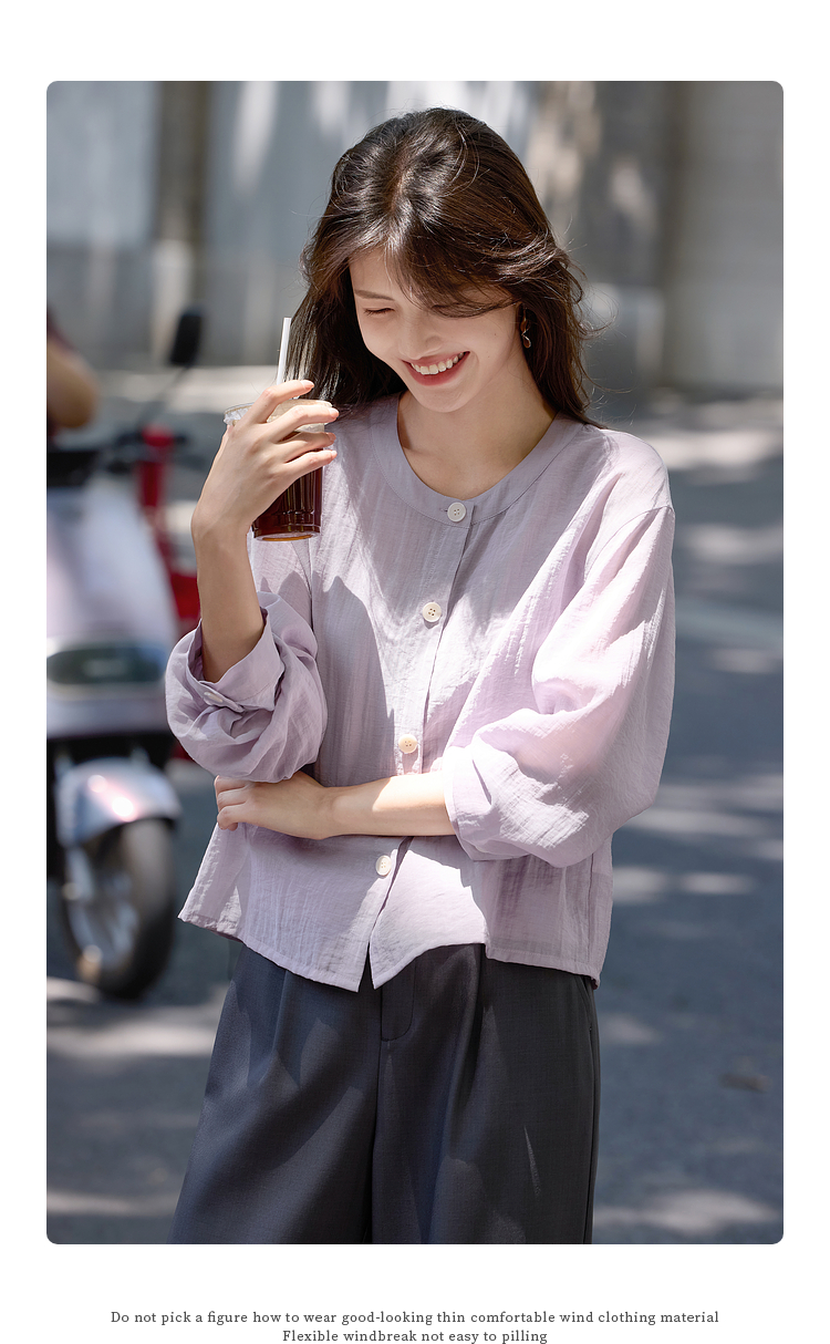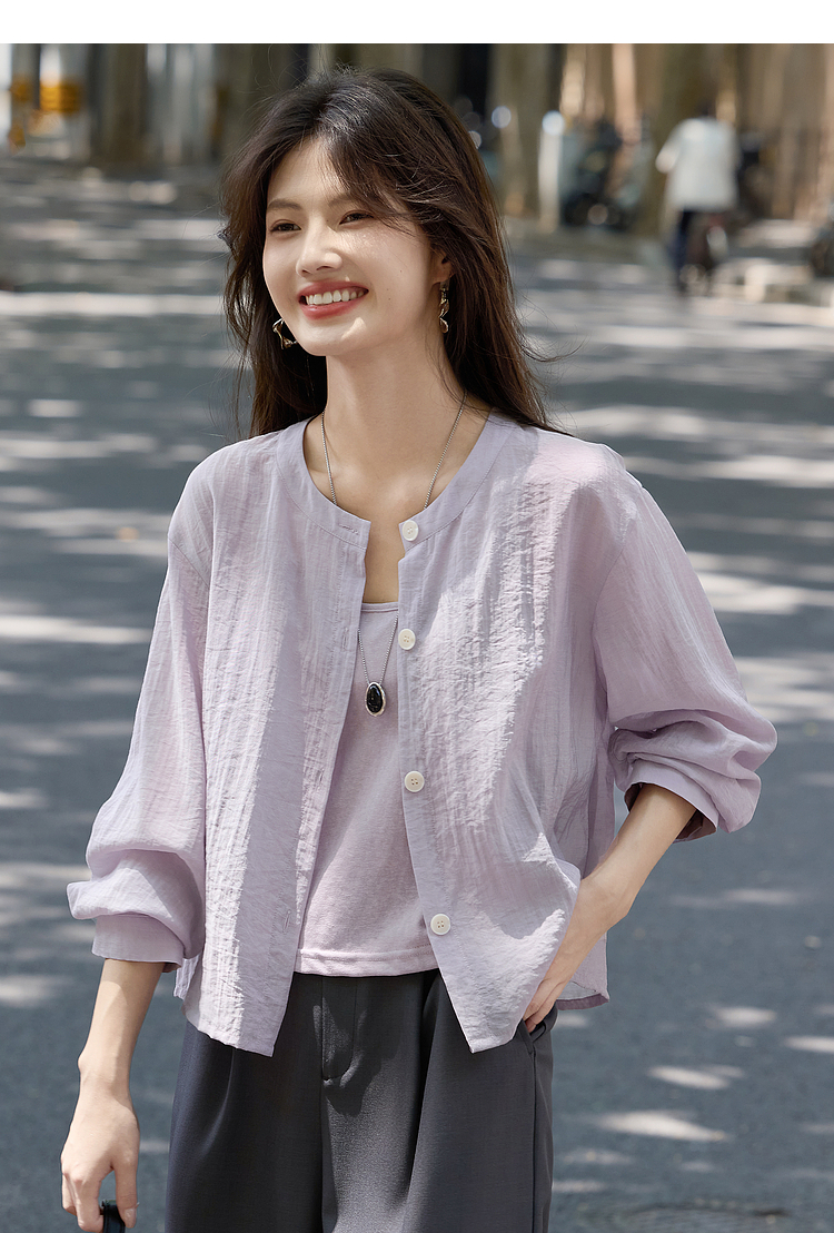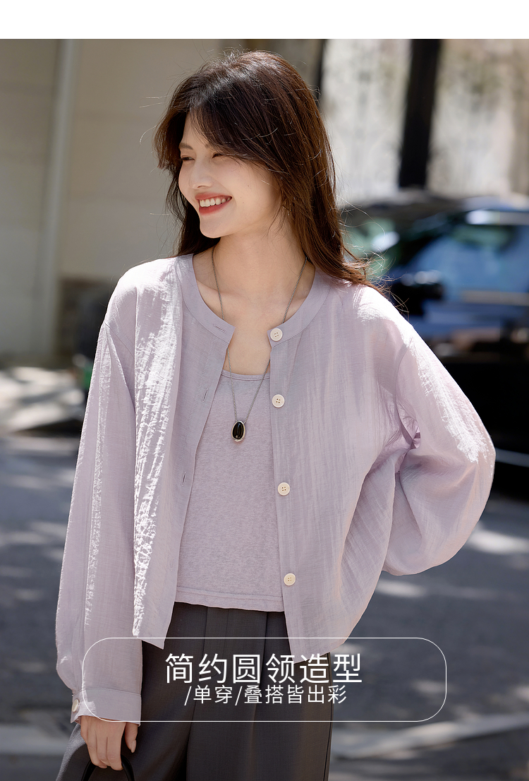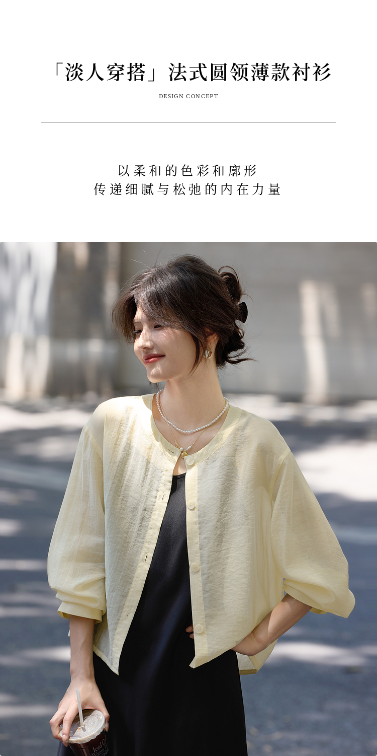 【08/06新品】熙世界淡人穿搭法式圆领衬衫女夏秋薄款长袖圆领防晒上衣2025新款