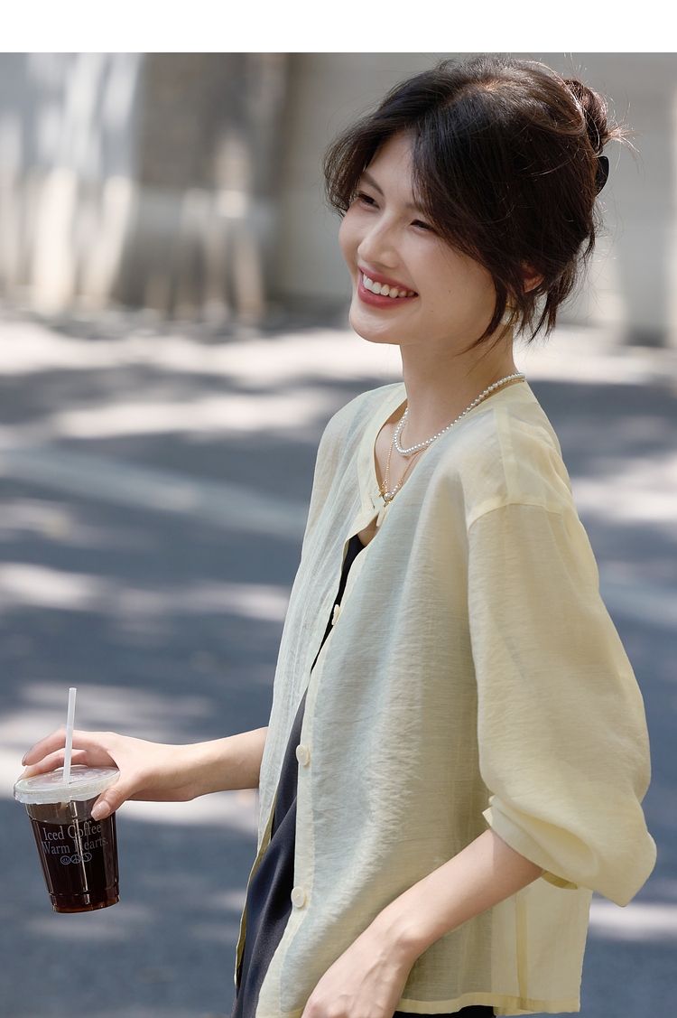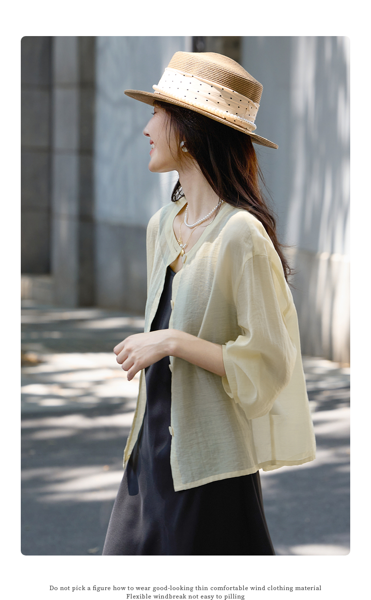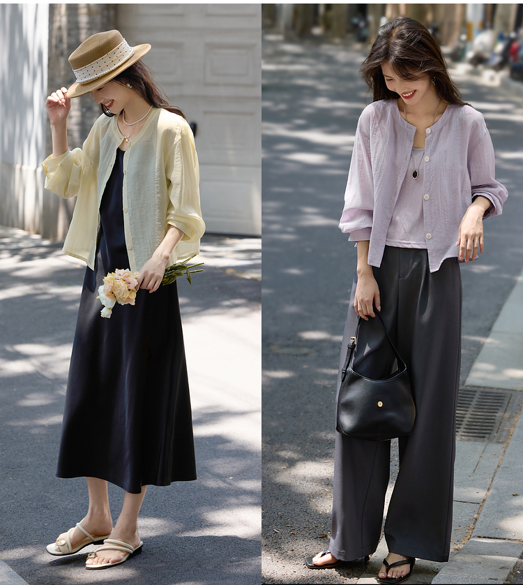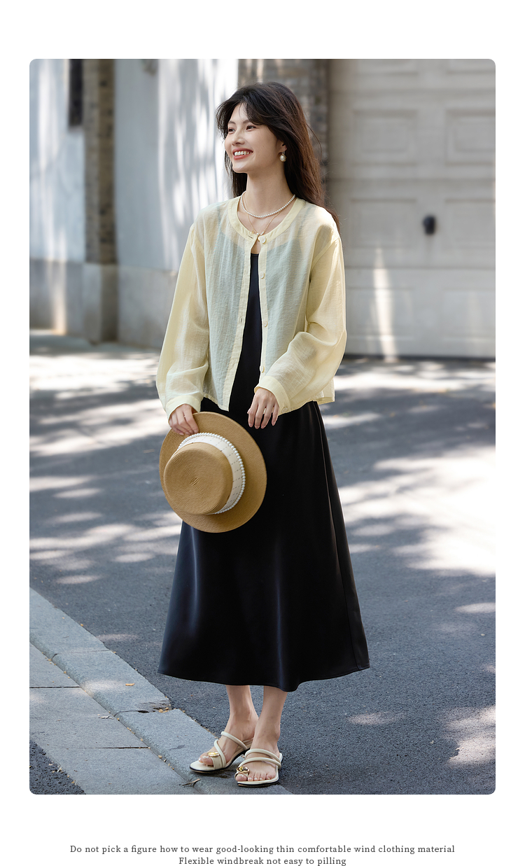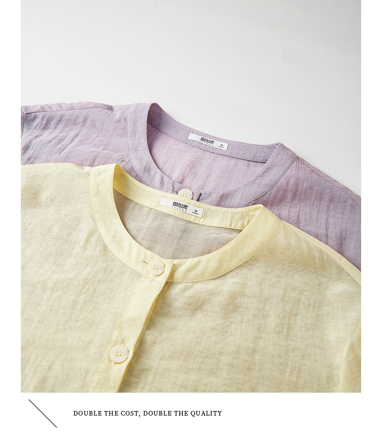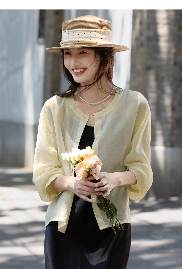【08/06新品】熙世界淡人穿搭法式圆领衬衫女夏秋薄款长袖圆领防晒上衣2025新款