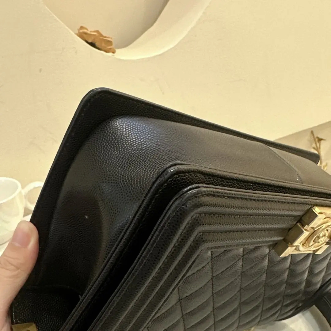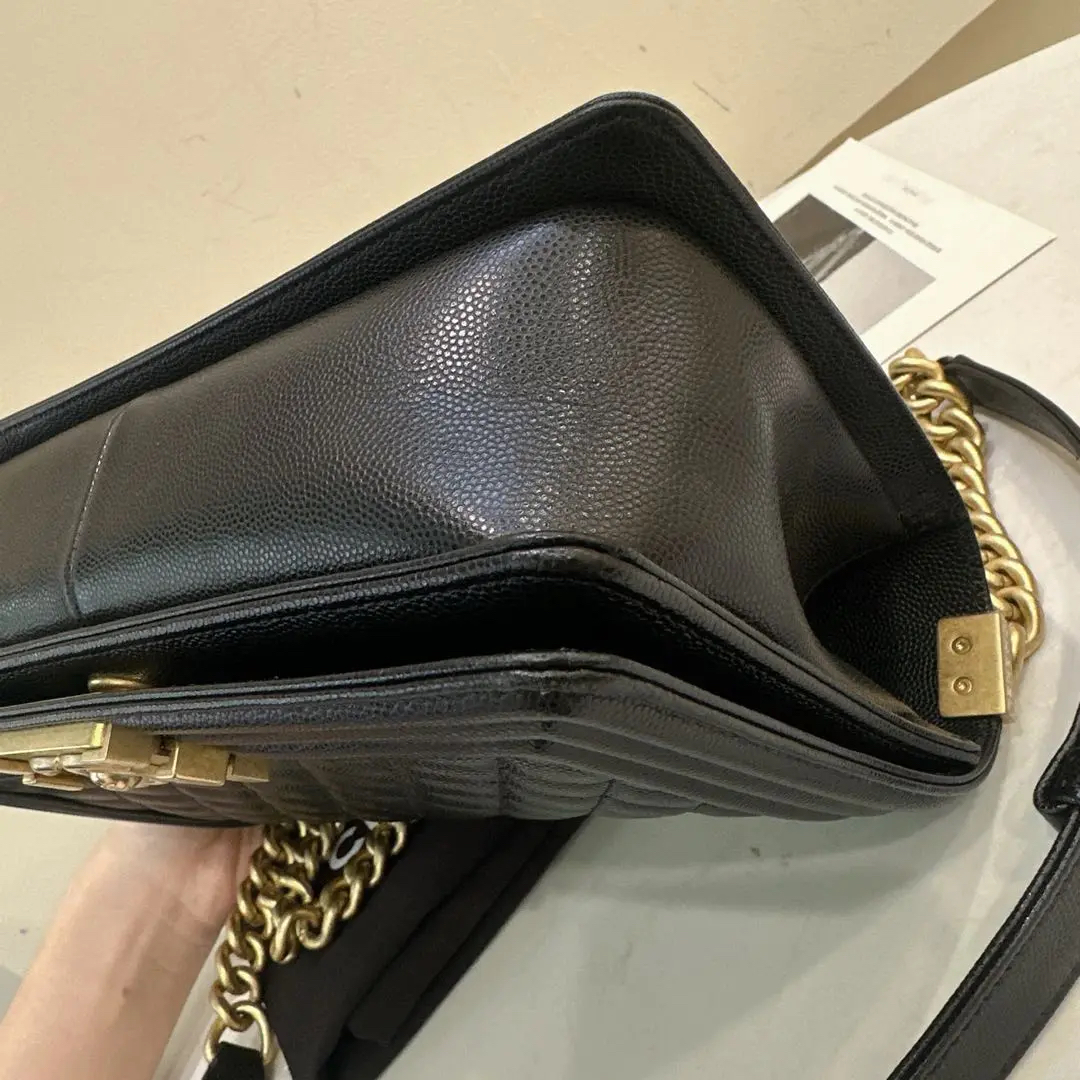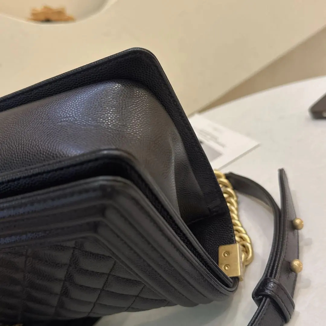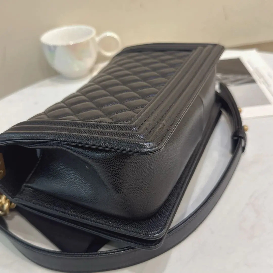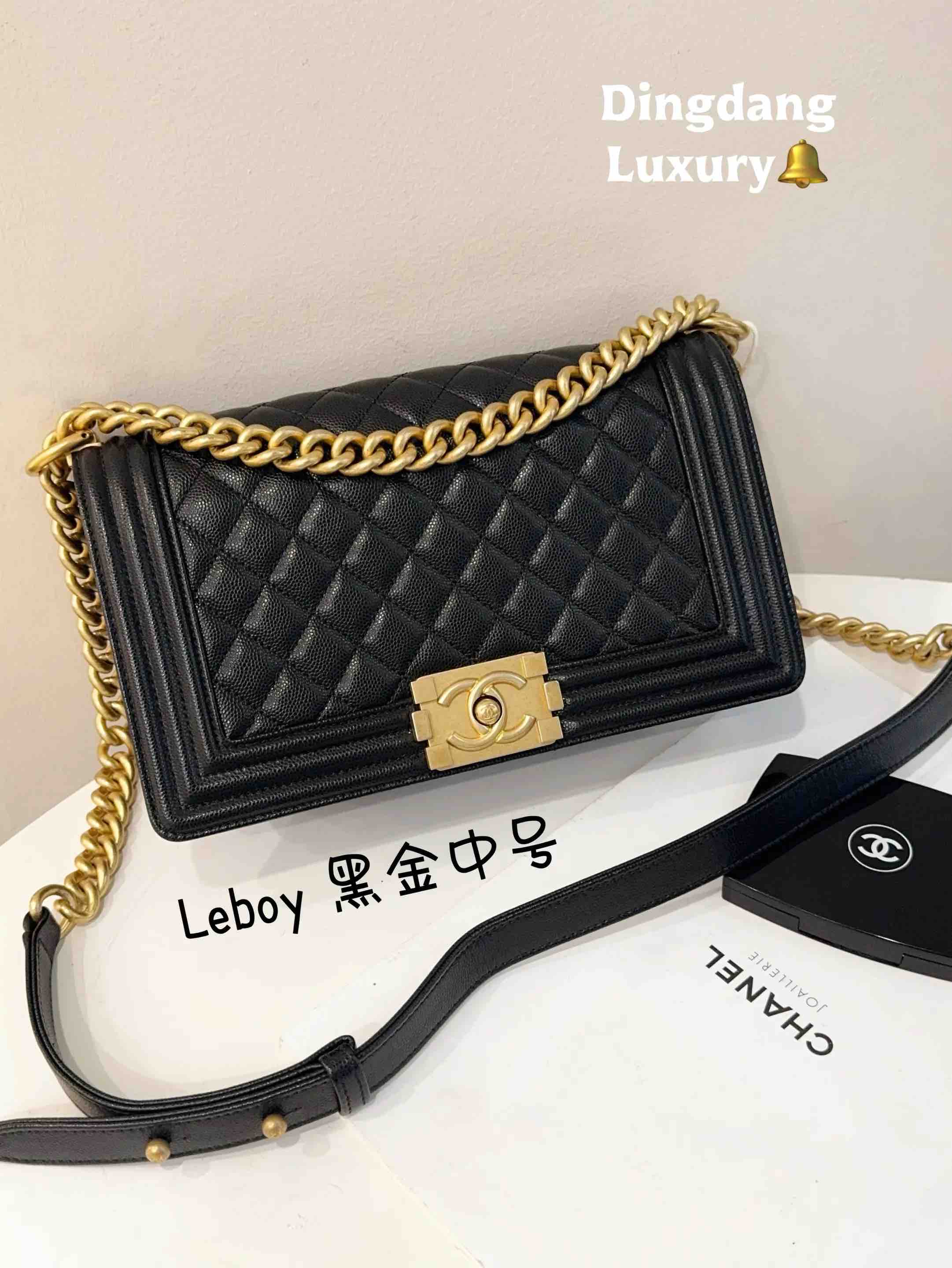 【商品详情】正品二手 Chanel leboy 黑金 荔枝纹牛皮 中号 斜挎包🛍️ 97新 25*15 镭射26开 配件:说明书 防尘袋。个性率真l