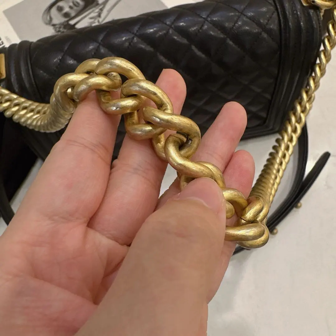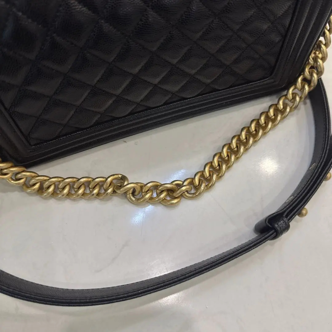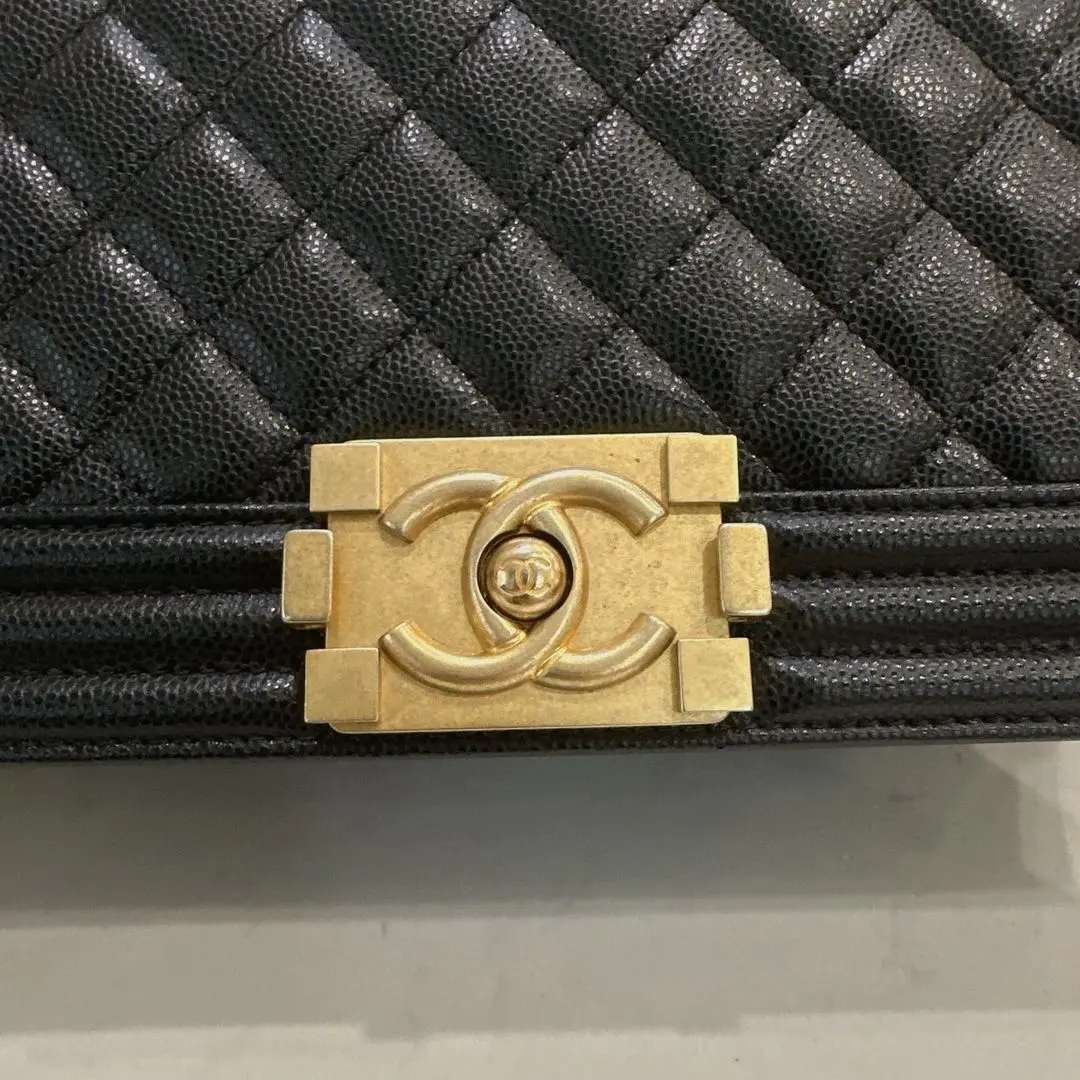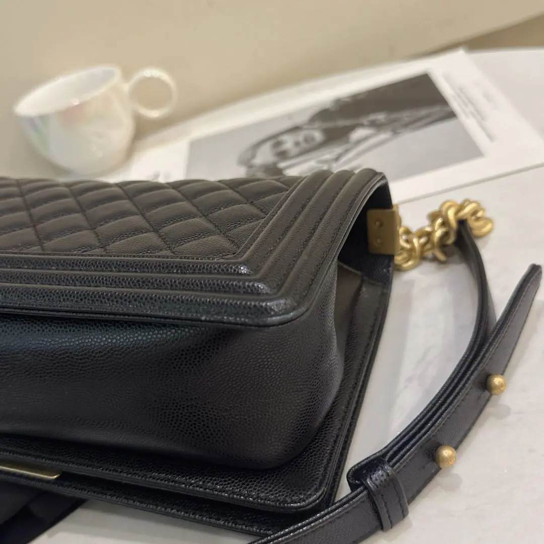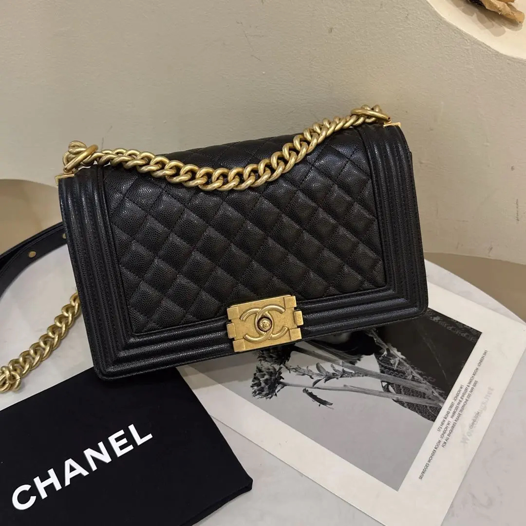 【商品详情】正品二手 Chanel leboy 黑金 荔枝纹牛皮 中号 斜挎包🛍️ 97新 25*15 镭射26开 配件:说明书 防尘袋。个性率真l