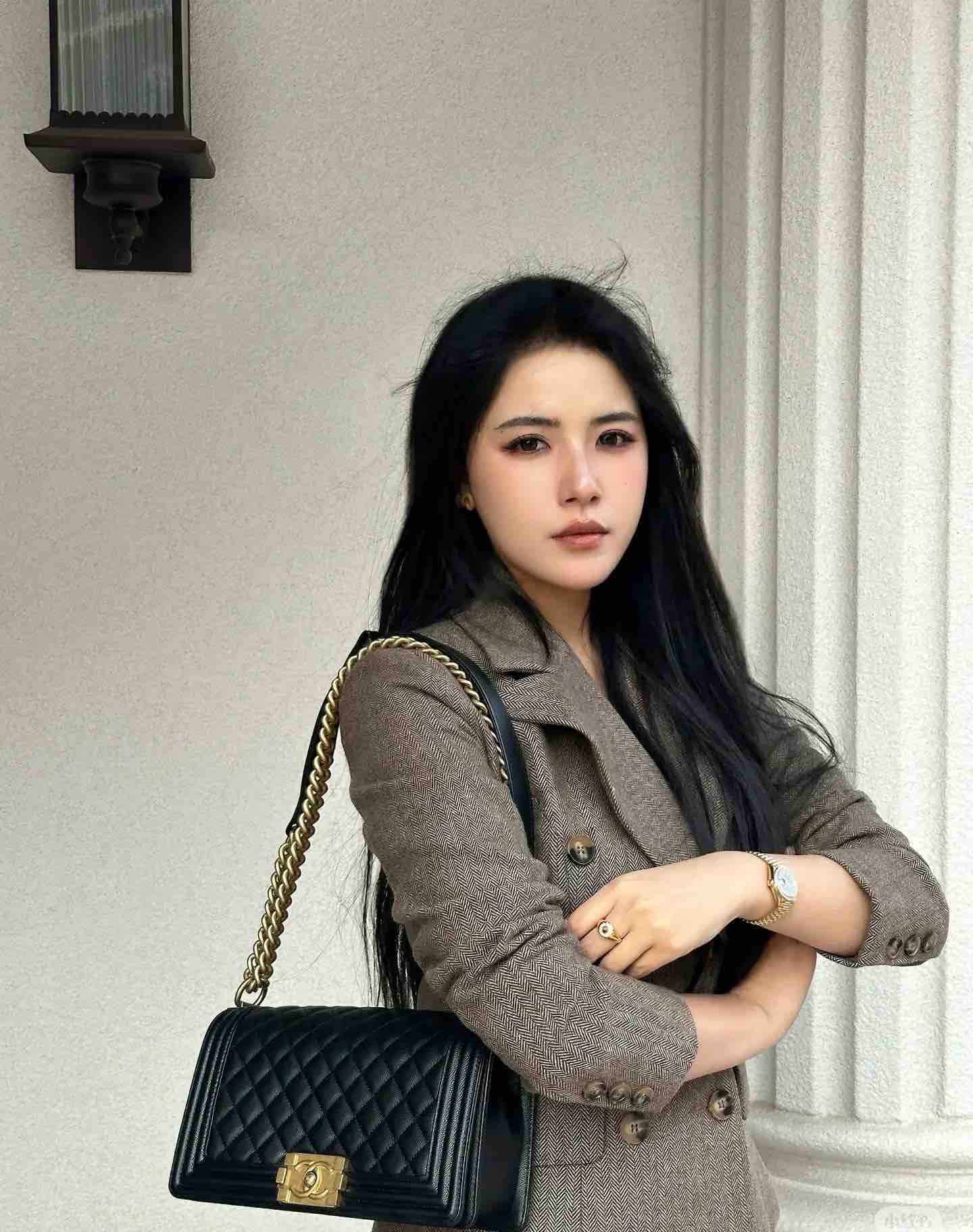 配上丝绒裙,它是"甜酷平衡器",黑色的中性感中和了甜腻🥰金扣又添了份"贵气迷人"🔱