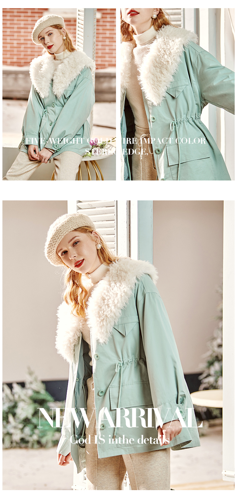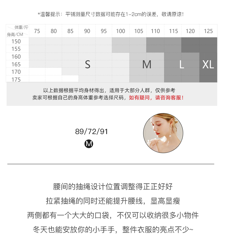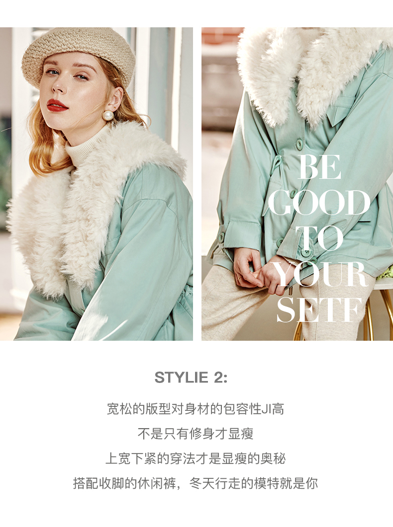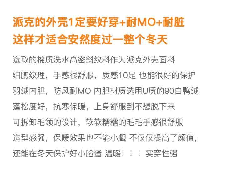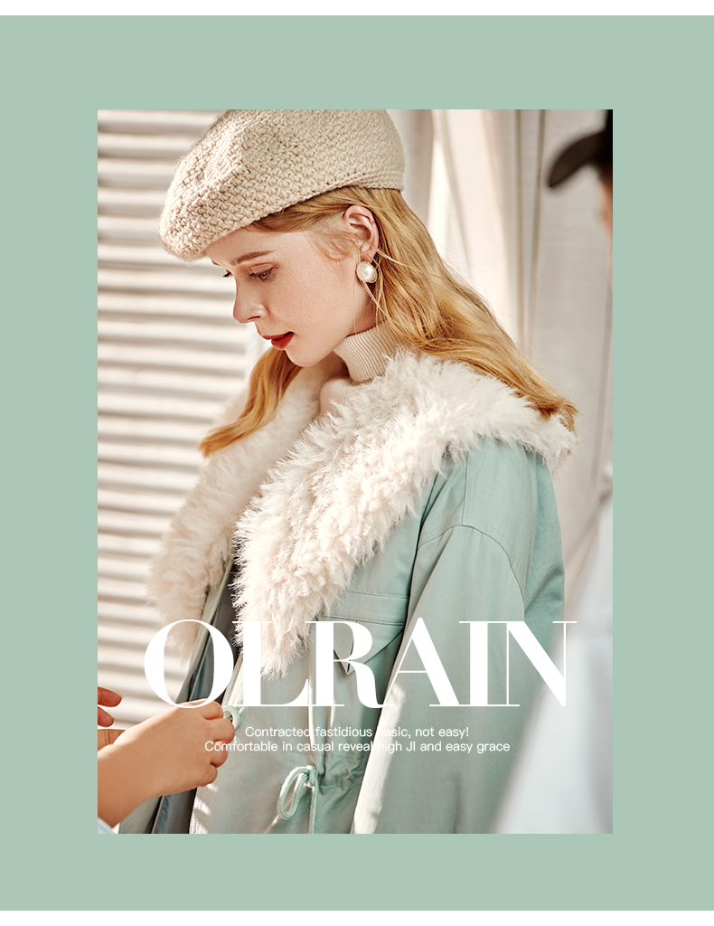 欧芮儿2021冬季新款可拆卸毛领抽绳收腰显瘦羽绒服女派克翻领外套