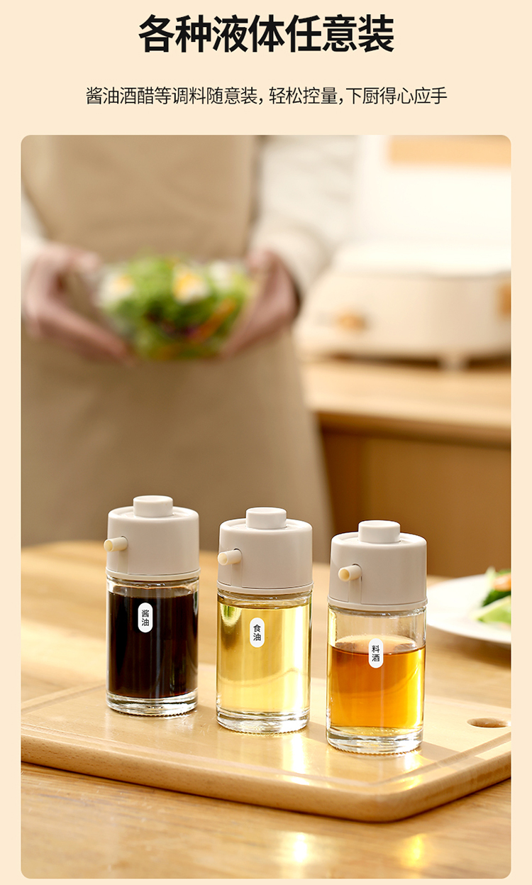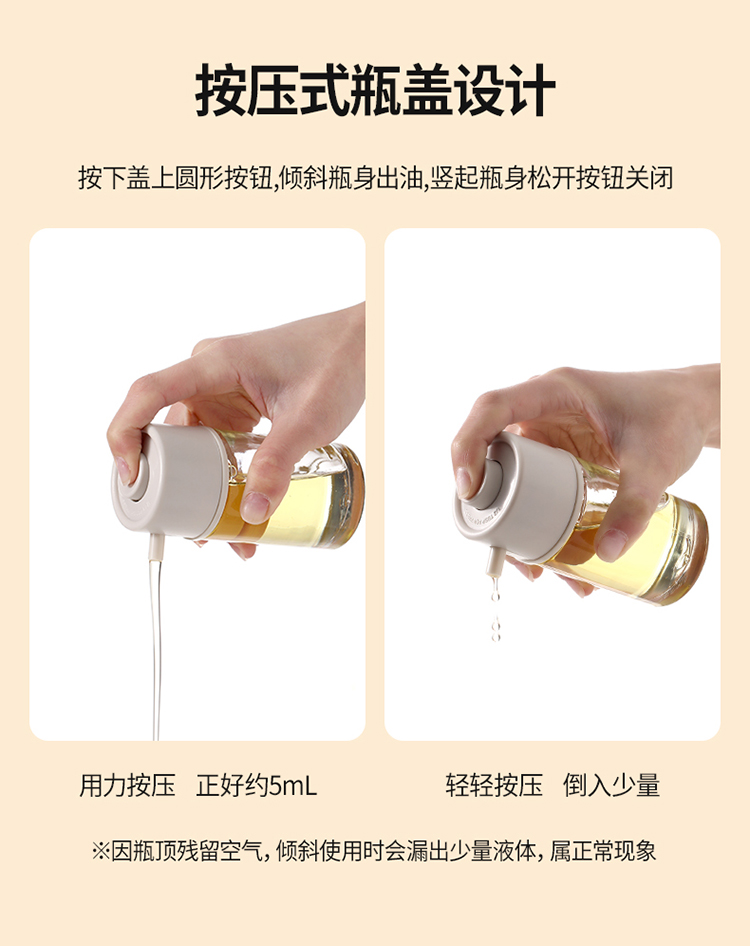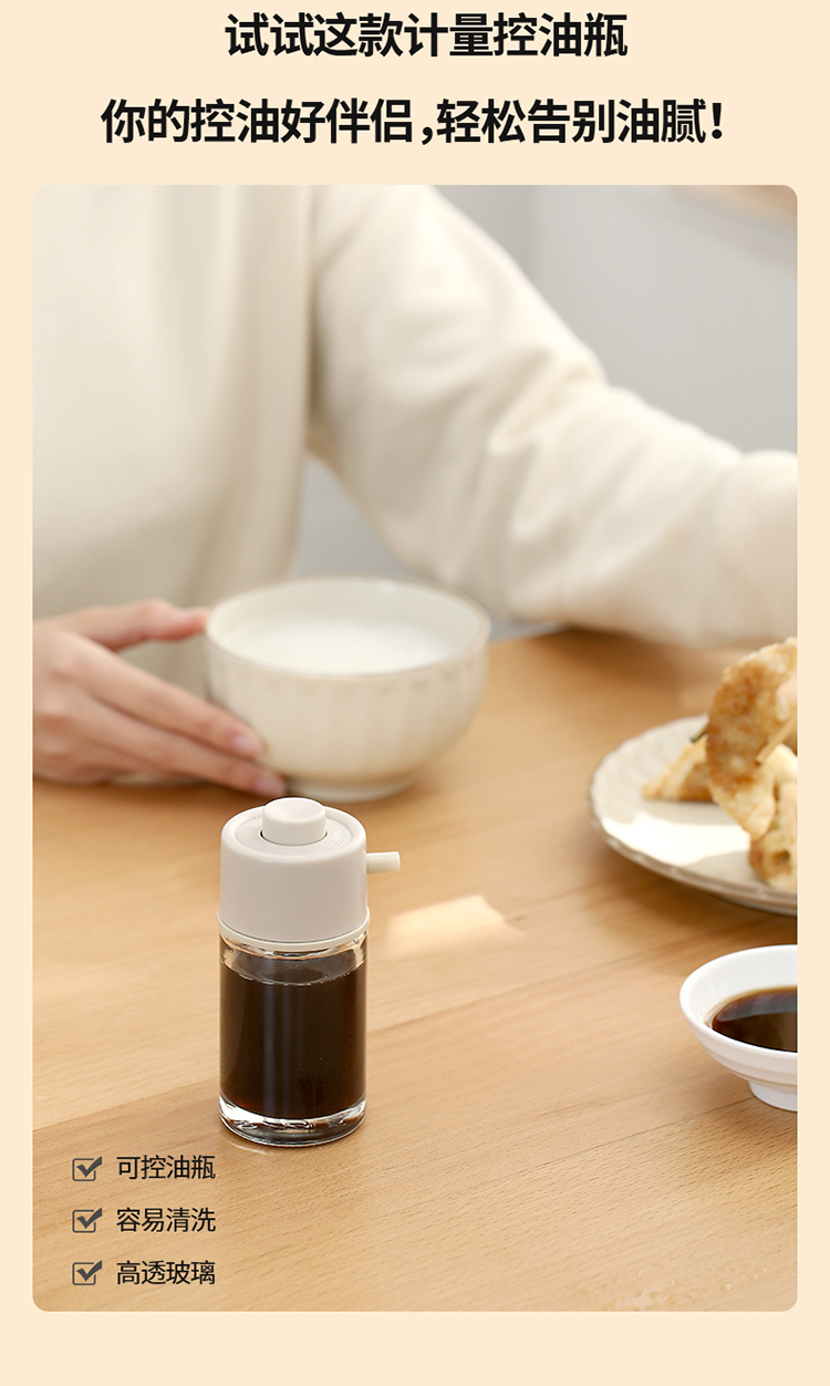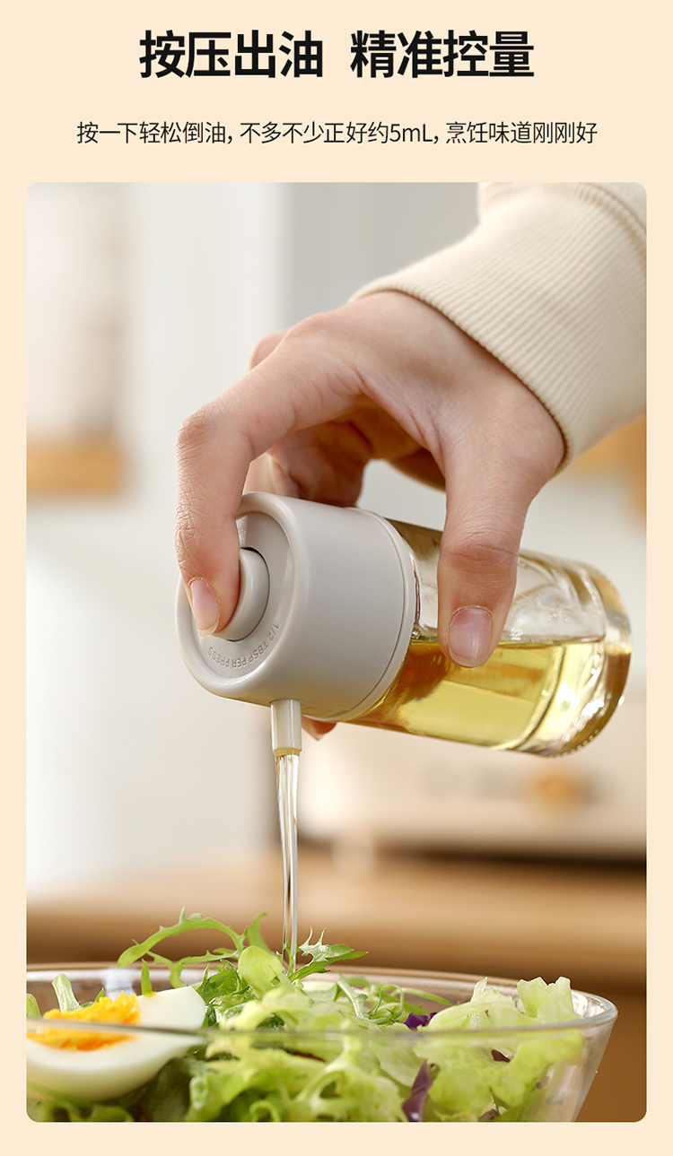 FaSoLa日式玻璃油壶家用厨房定量控油瓶按压倒油防滴漏不挂油油罐