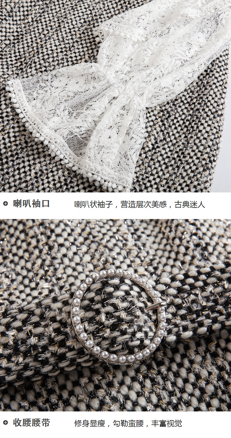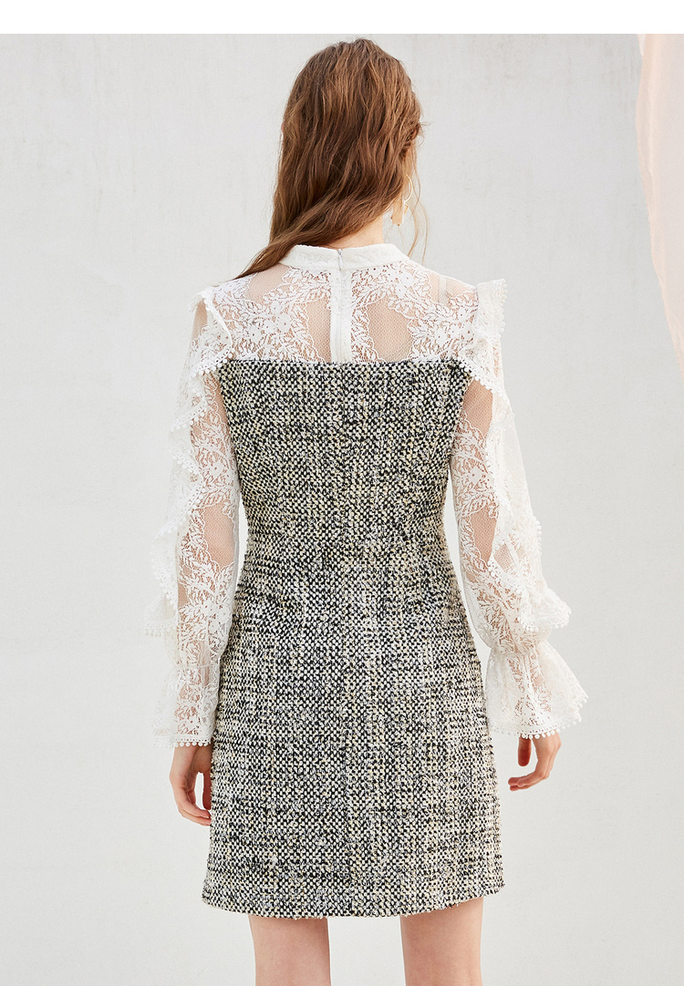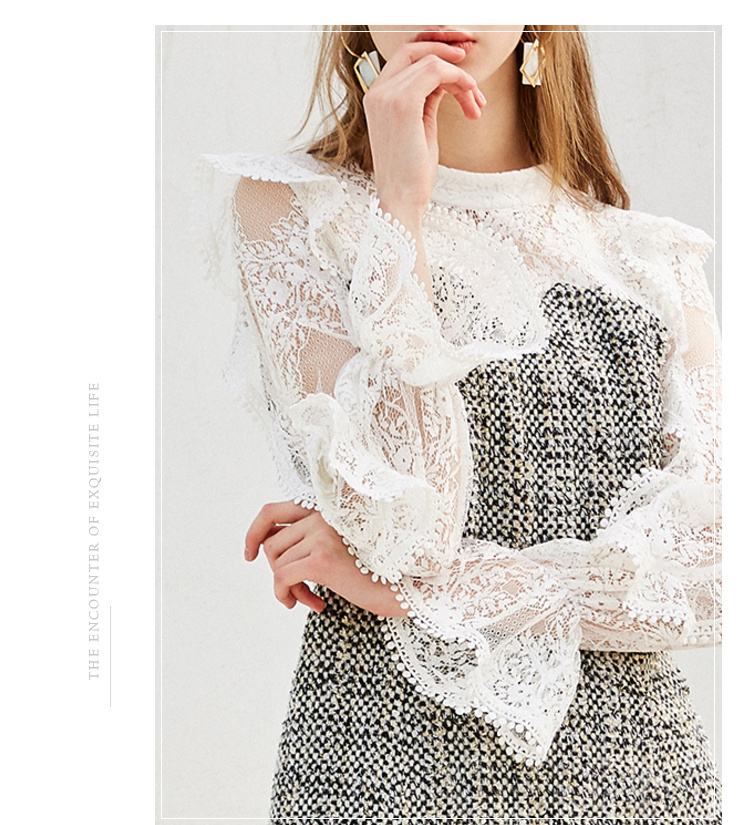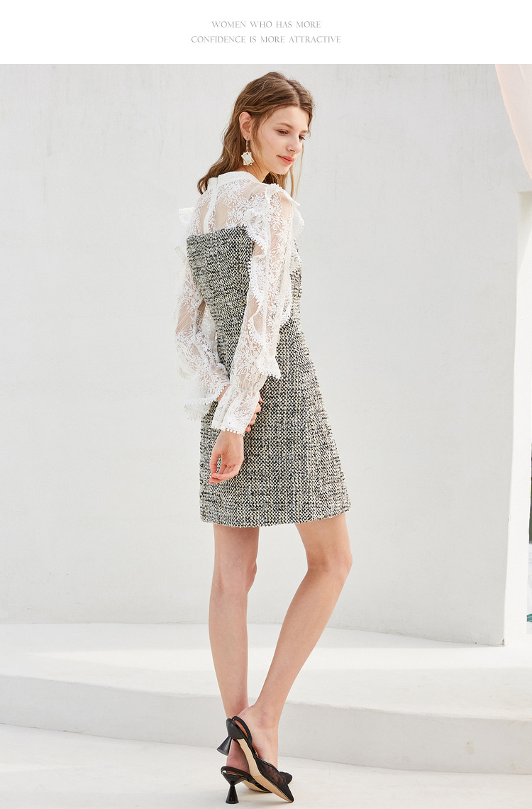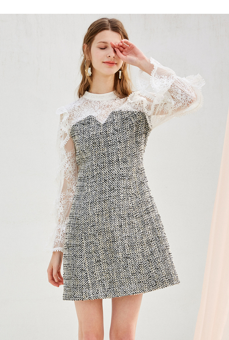 欧芮儿蕾丝拼接连衣裙女中长款春装2019新款荷叶边针织女裙子