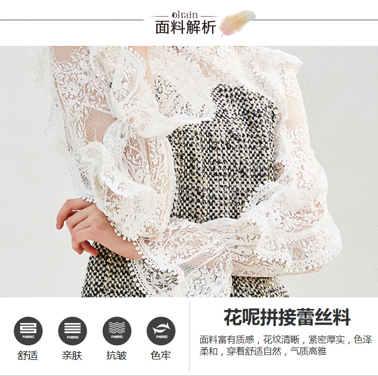 OLrain欧芮儿时尚套装女夏季2025年新款通勤拼接蕾丝两件套