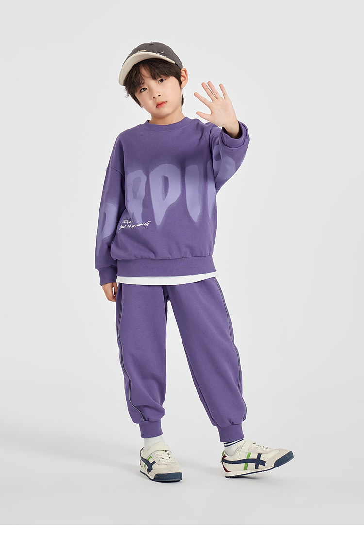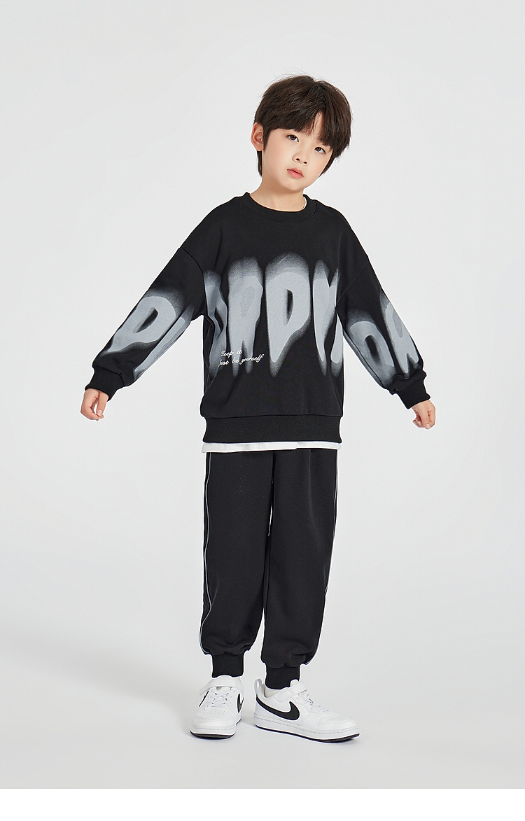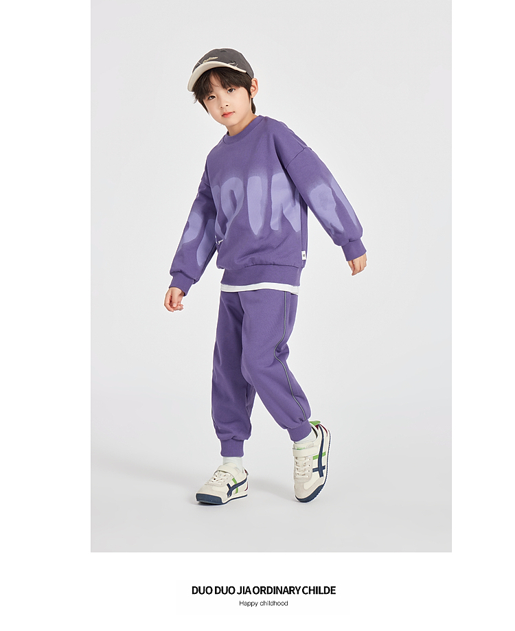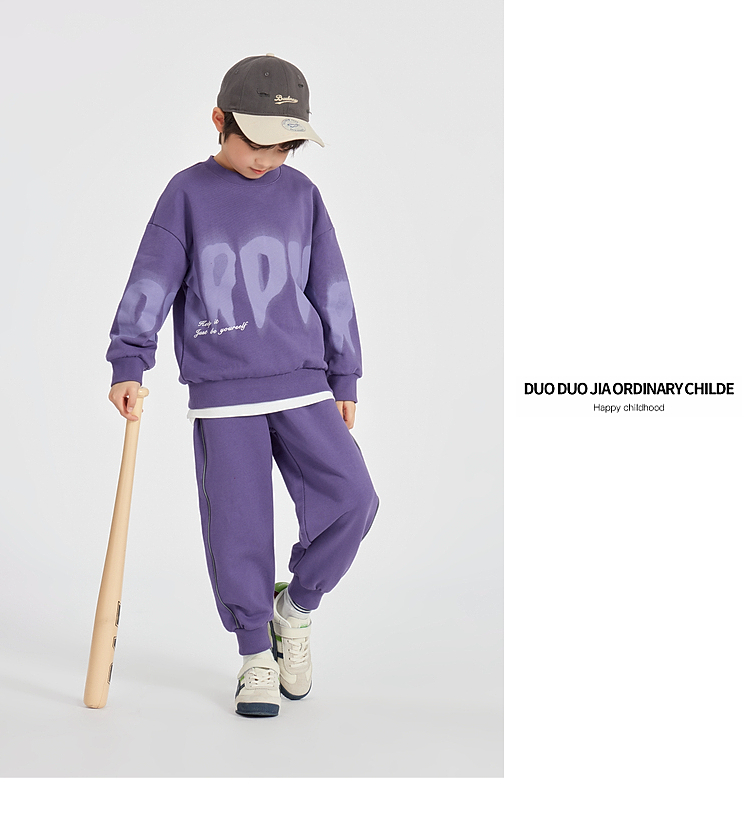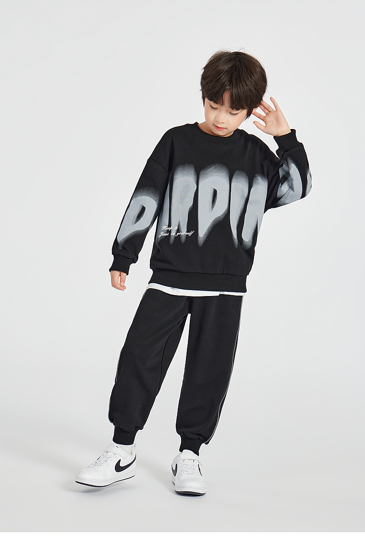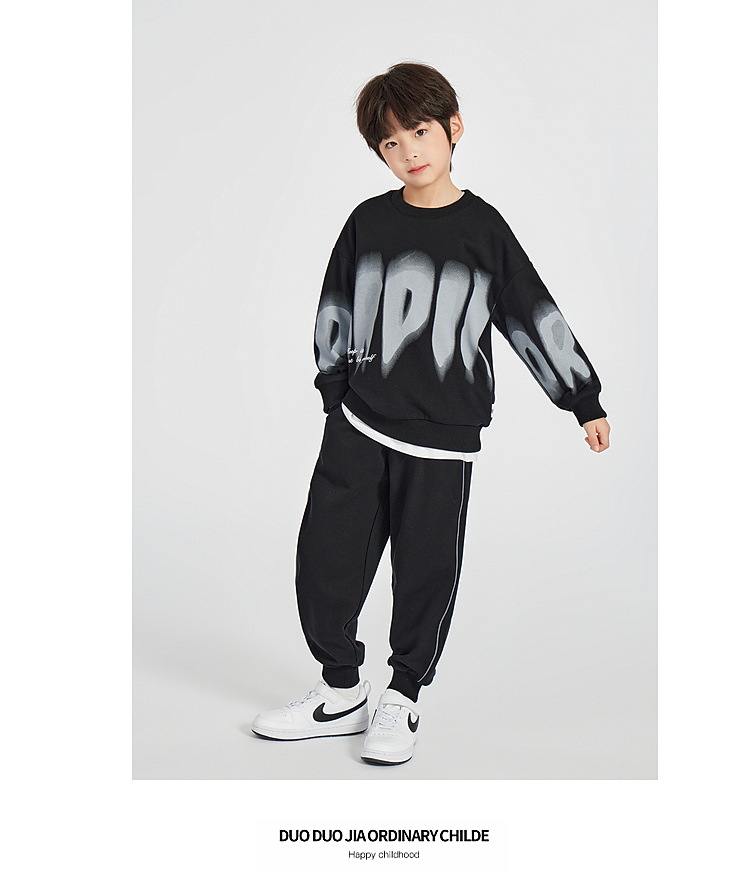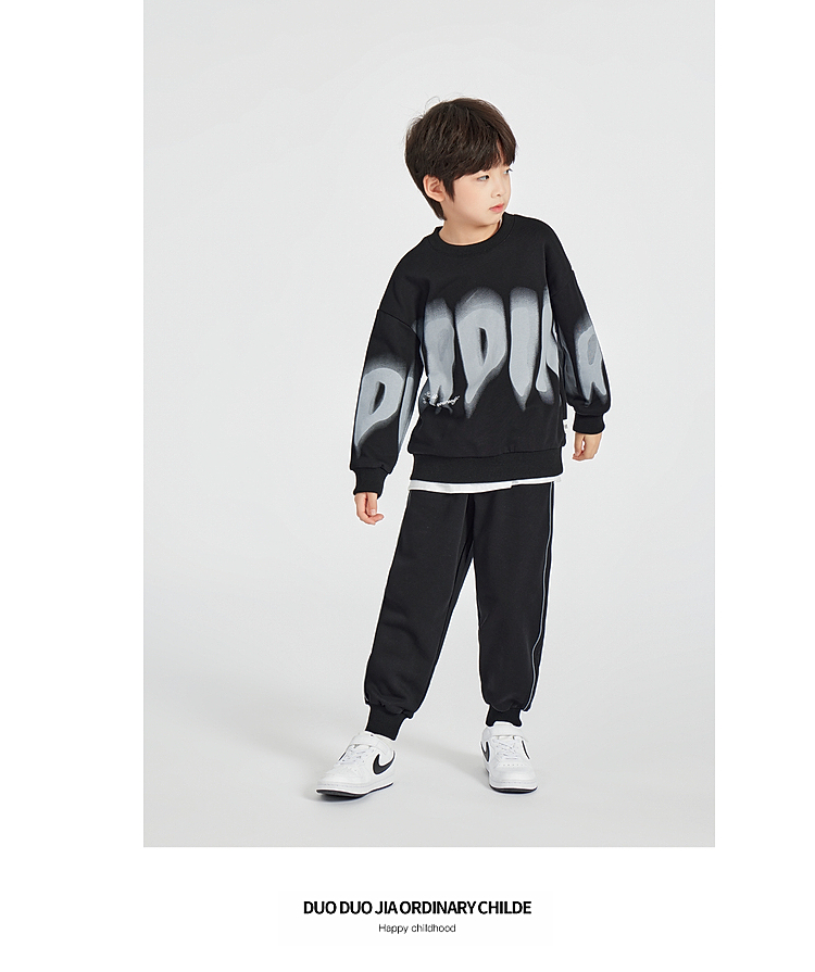 【团购价99.9】多多家男童运动套装2025新款春秋款儿童中大童圆领字母印花两件套10236