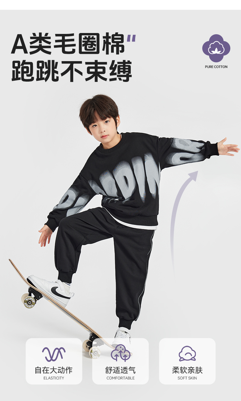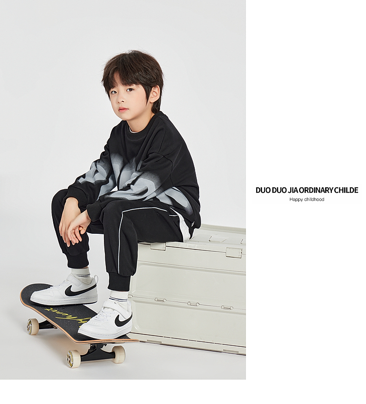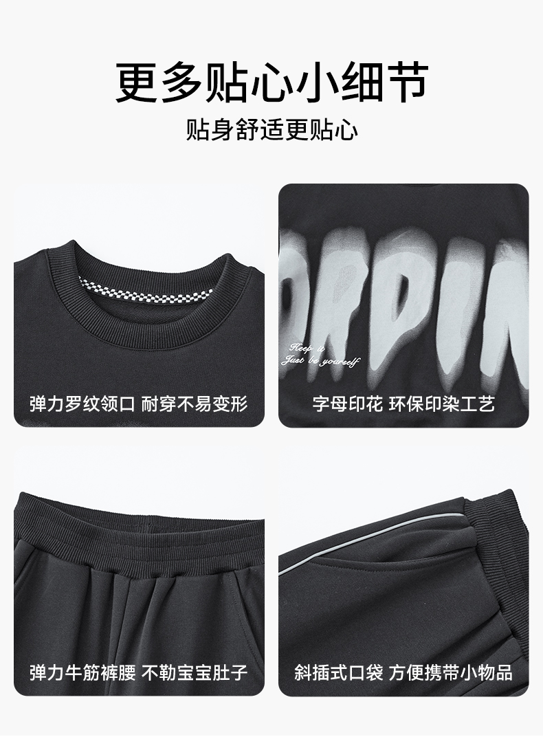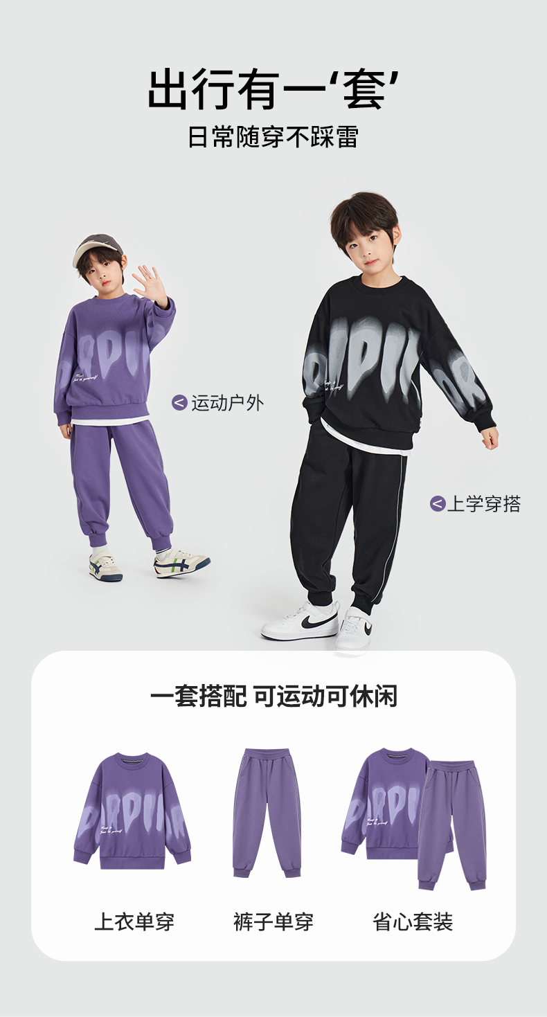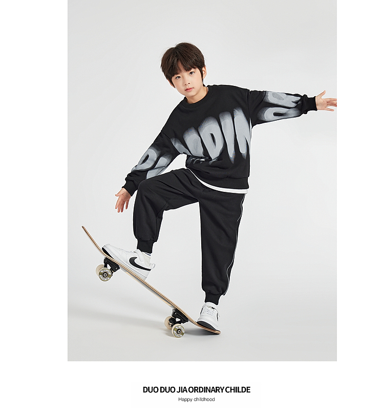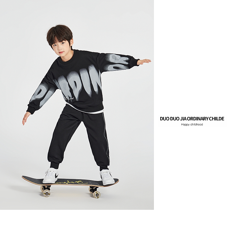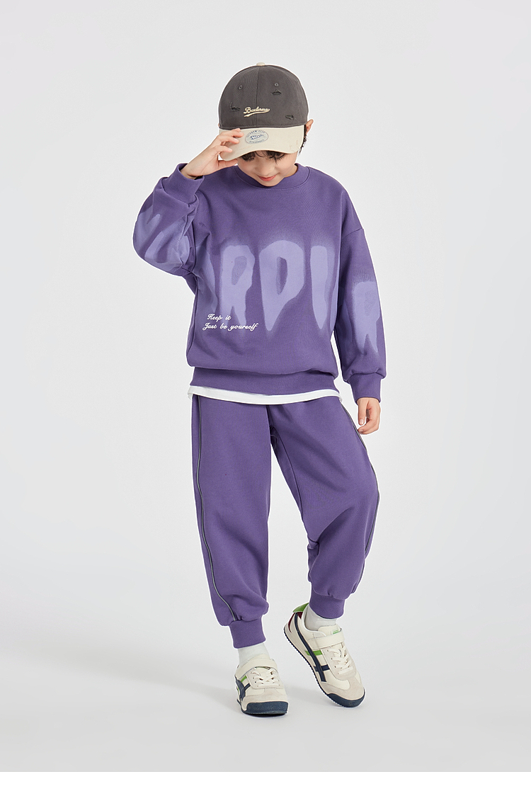 【团购价99.9】多多家男童运动套装2025新款春秋款儿童中大童圆领字母印花两件套10236