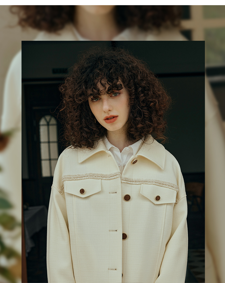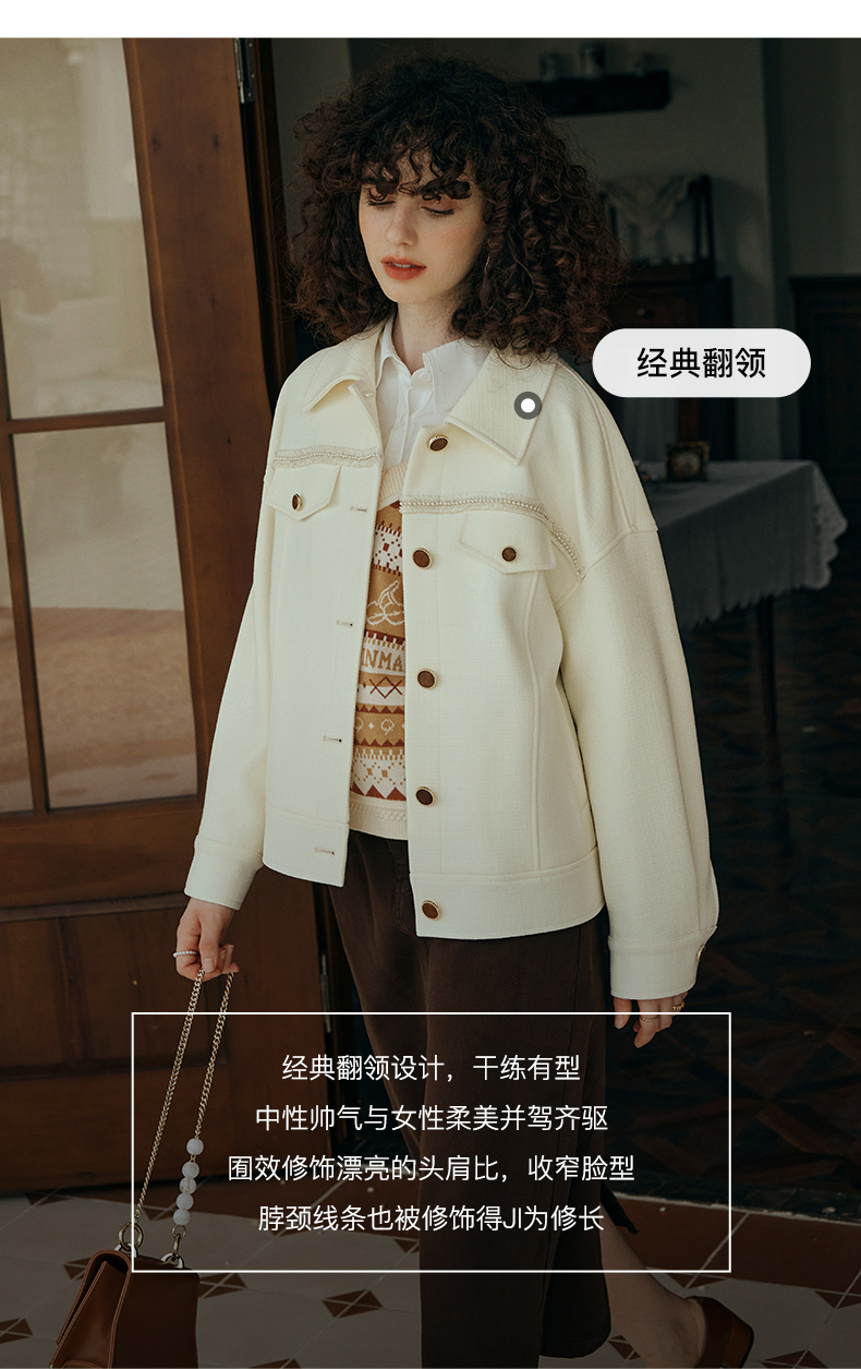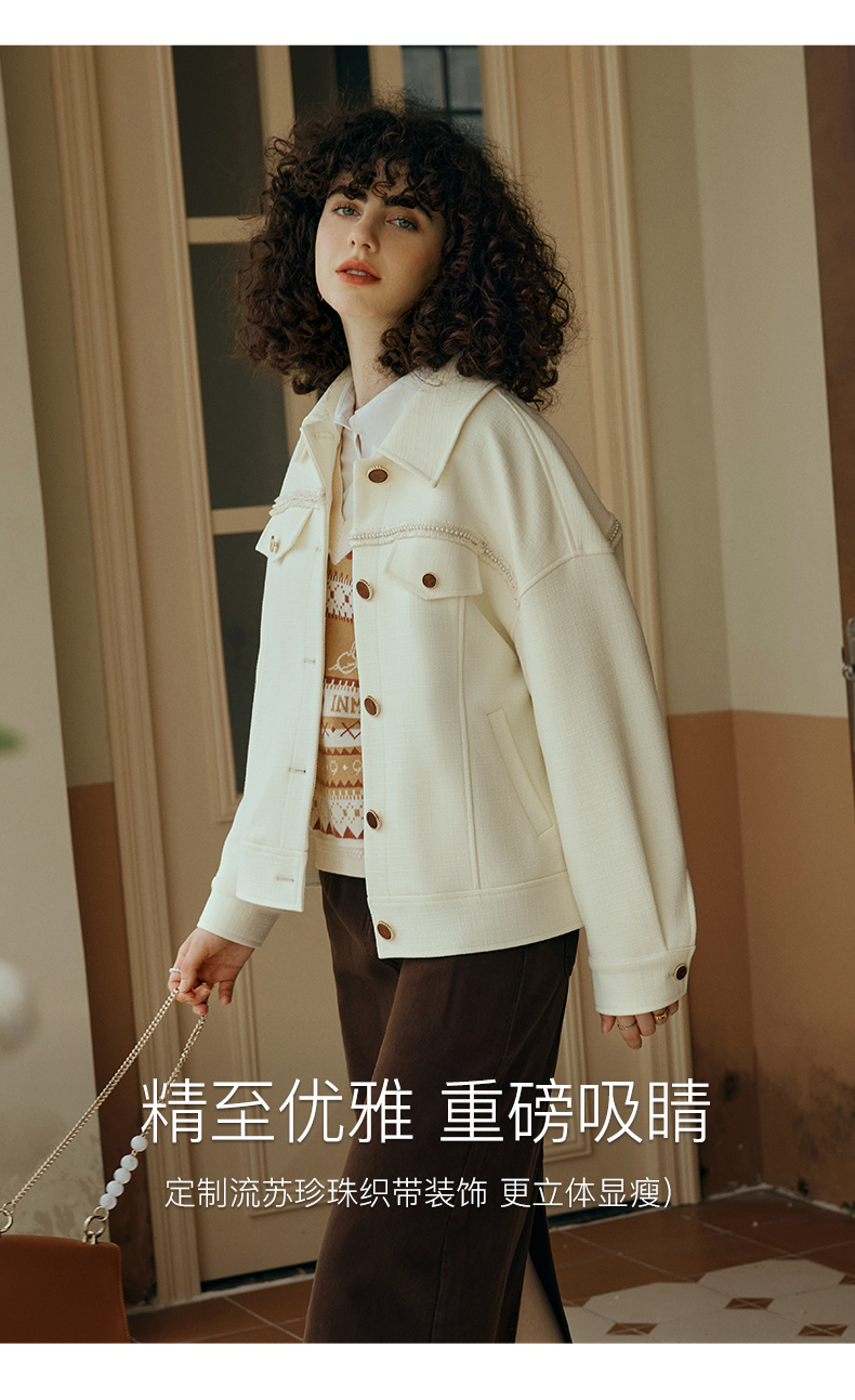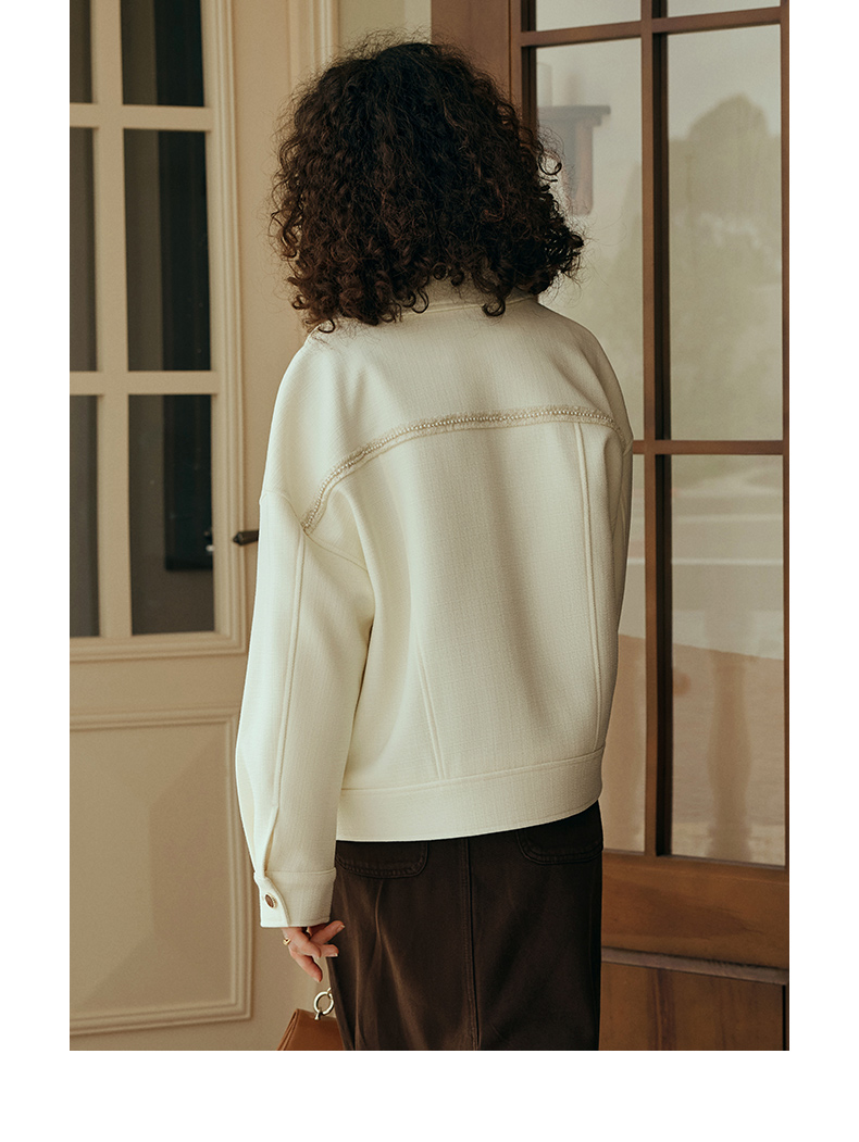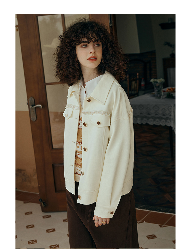 OLrain欧芮儿小香风短外套女初秋2023新款宽松立体花边夹克式上衣