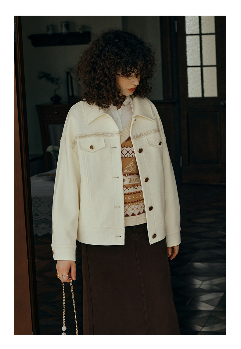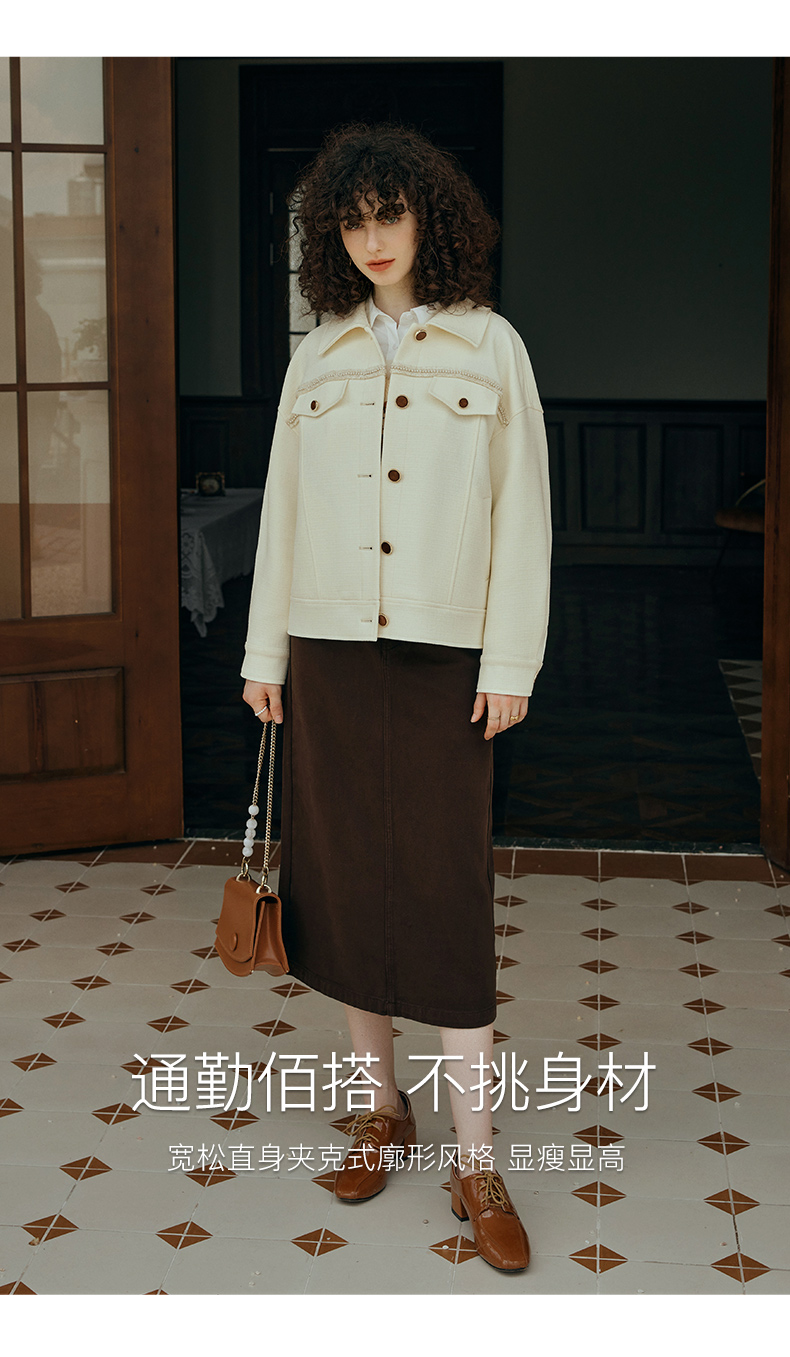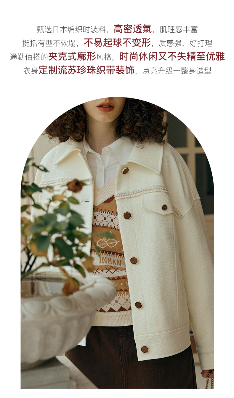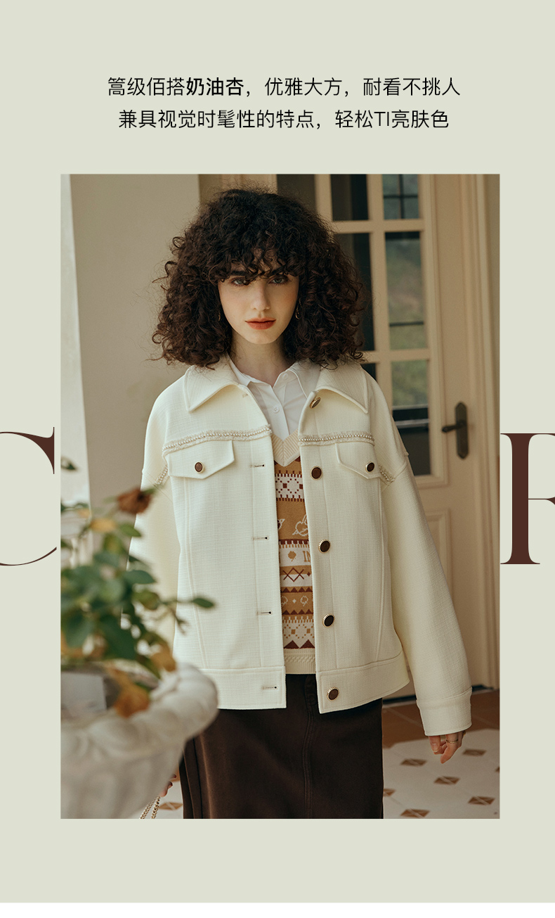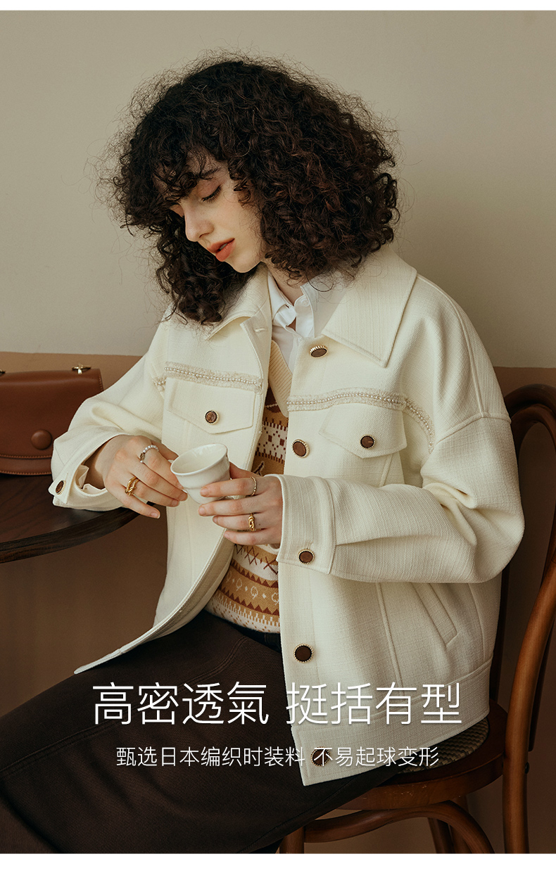 OLrain欧芮儿小香风短外套女初秋2023新款宽松立体花边夹克式上衣