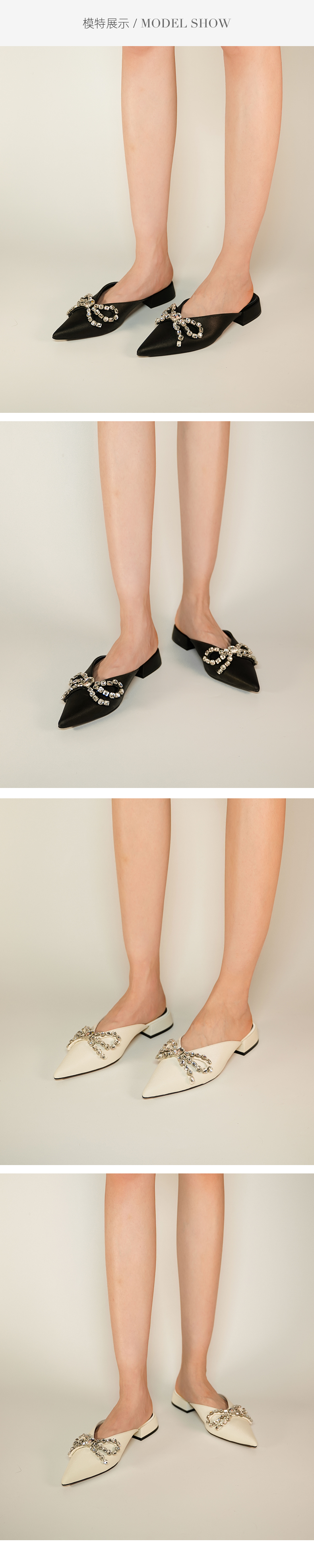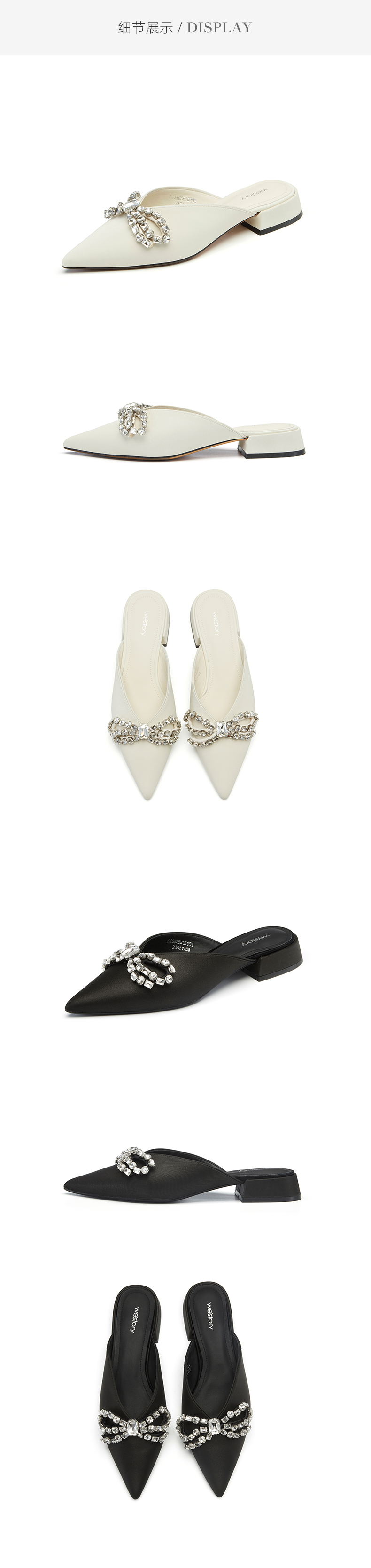 westory2023夏季新款蝴蝶结水钻细跟包头拖法式厚底拖鞋女56101
