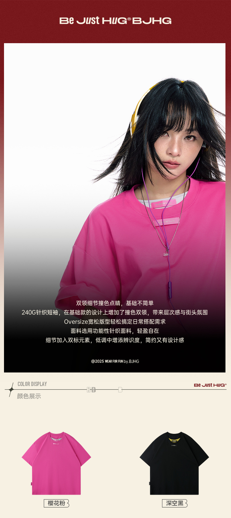 BJHG不计后果 基础款撞色短袖t恤女2025新款抗菌凉感防晒功能半袖