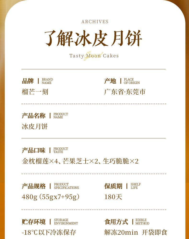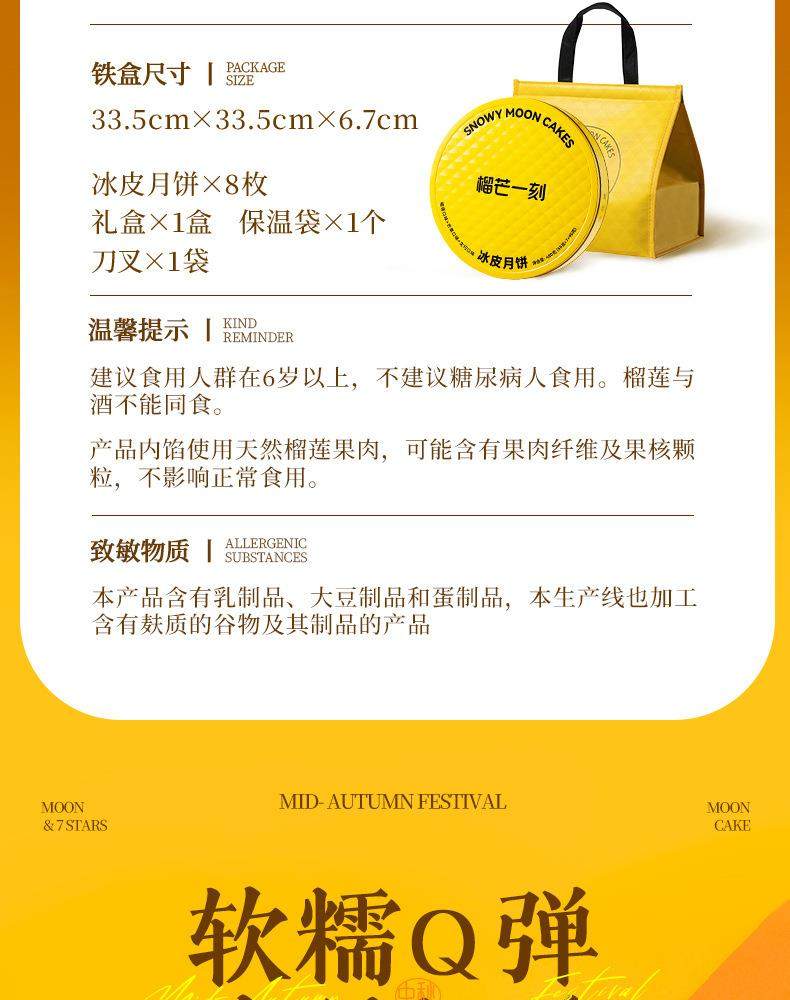 榴芒一刻榴莲芒果生巧冰皮月饼480g