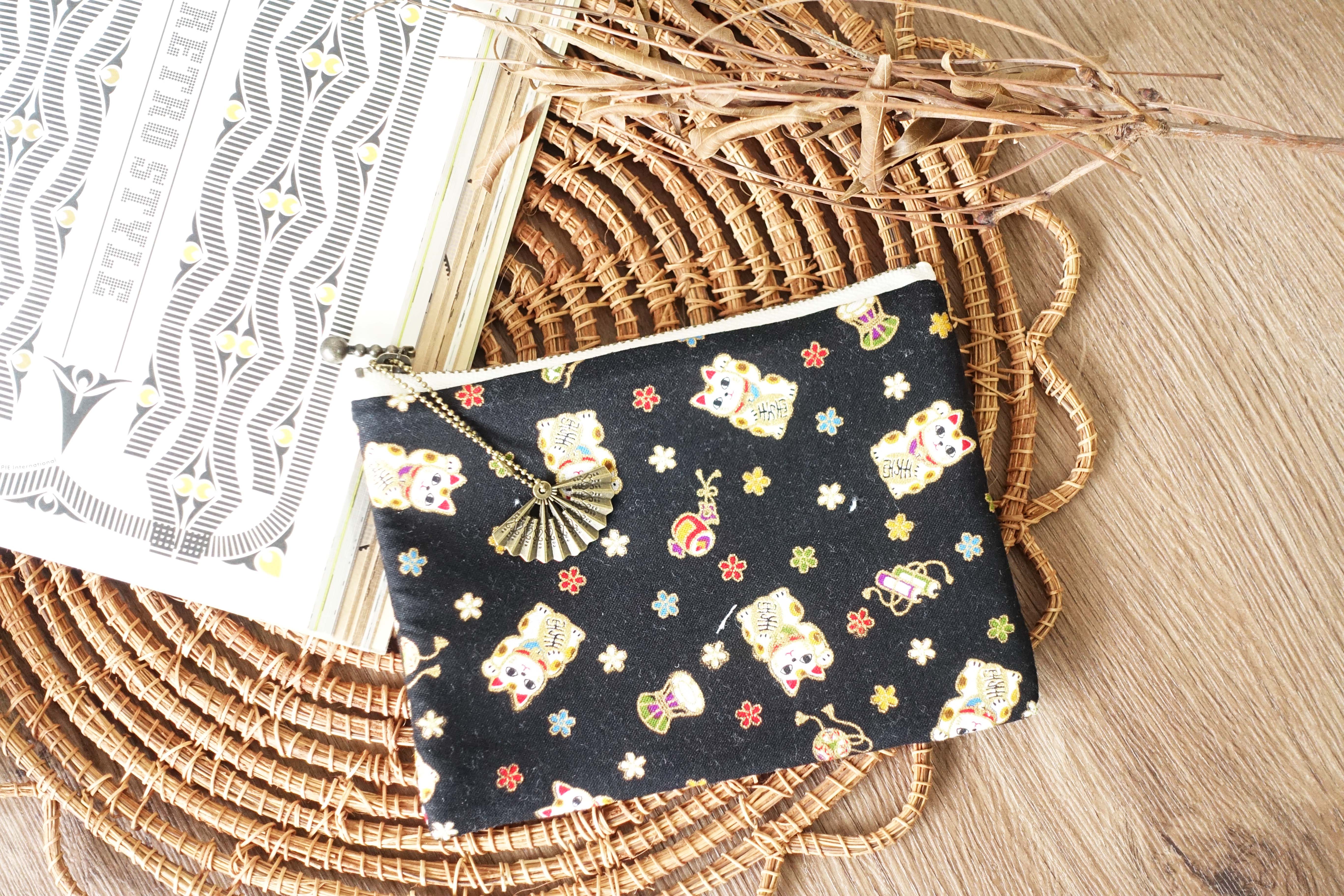 HUJI祤集Komon收纳包风の花招财猫猫