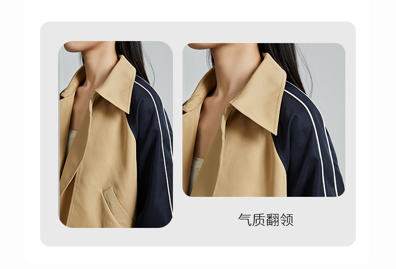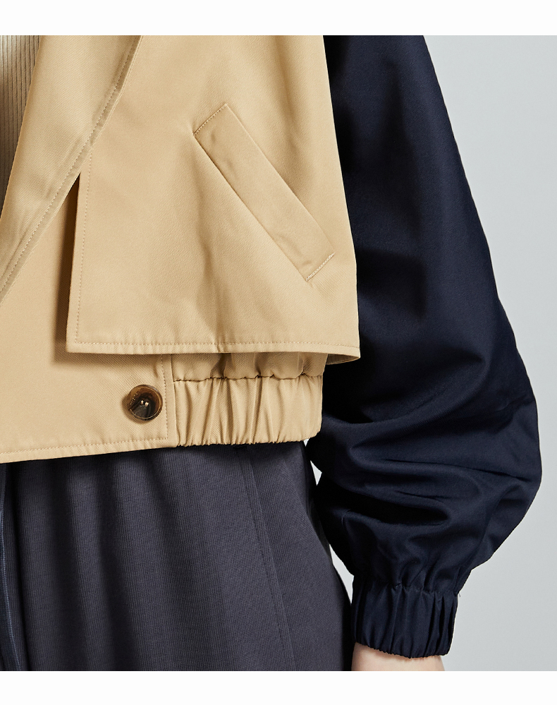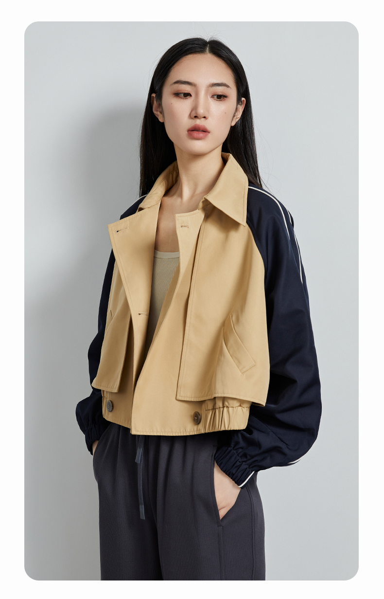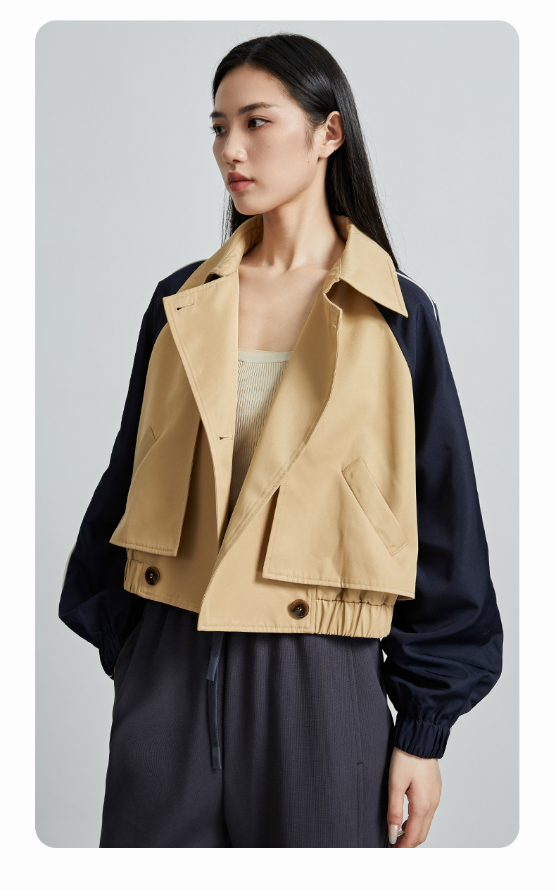 oldcolour秋季新款直筒短款翻领拼色简约通勤长袖外套女P330405A1