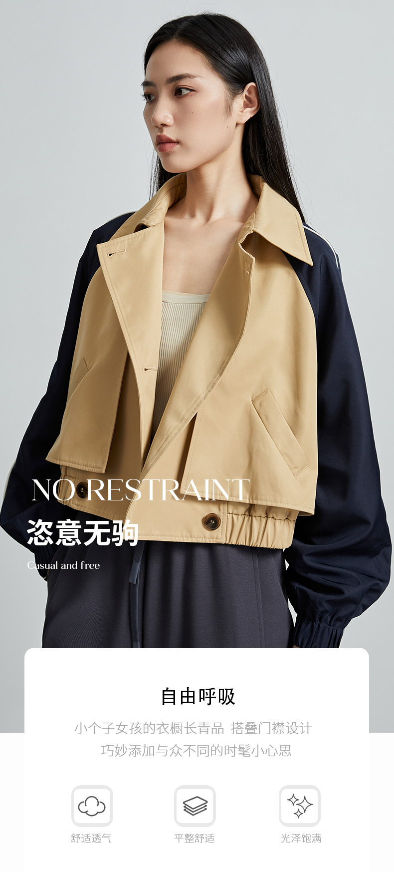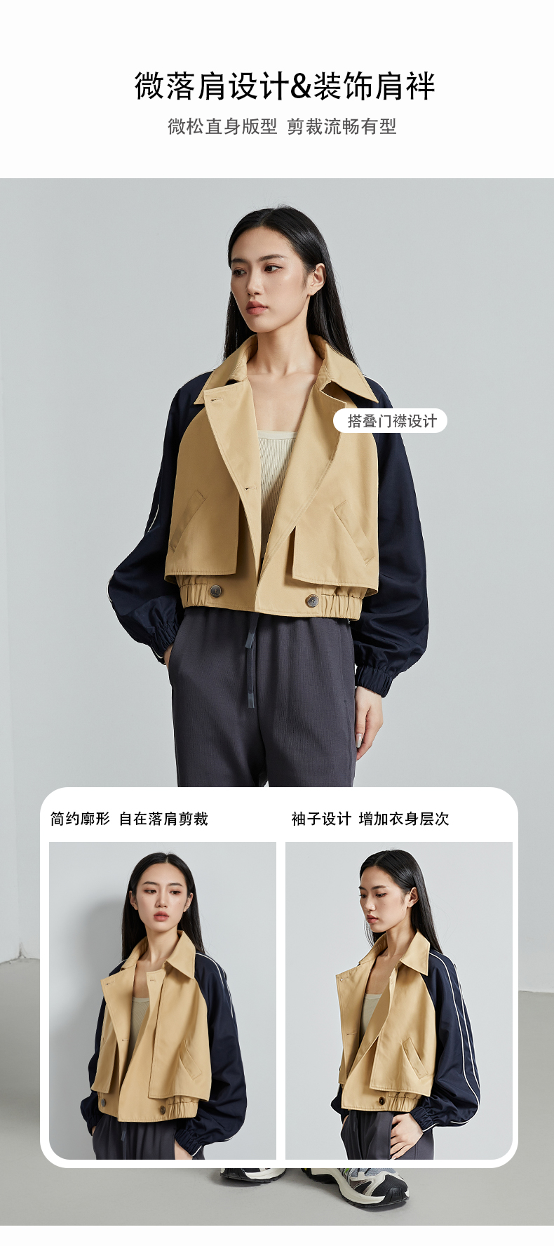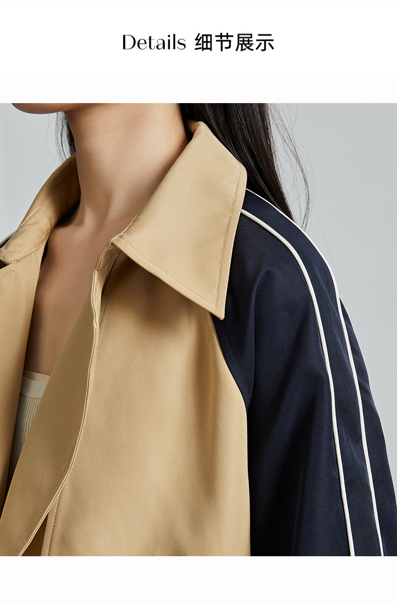 oldcolour秋季新款直筒短款翻领拼色简约通勤长袖外套女P330405A1