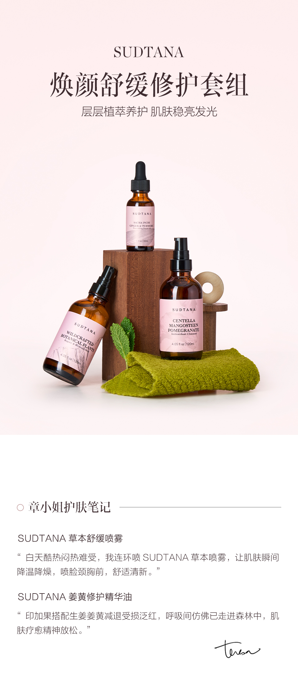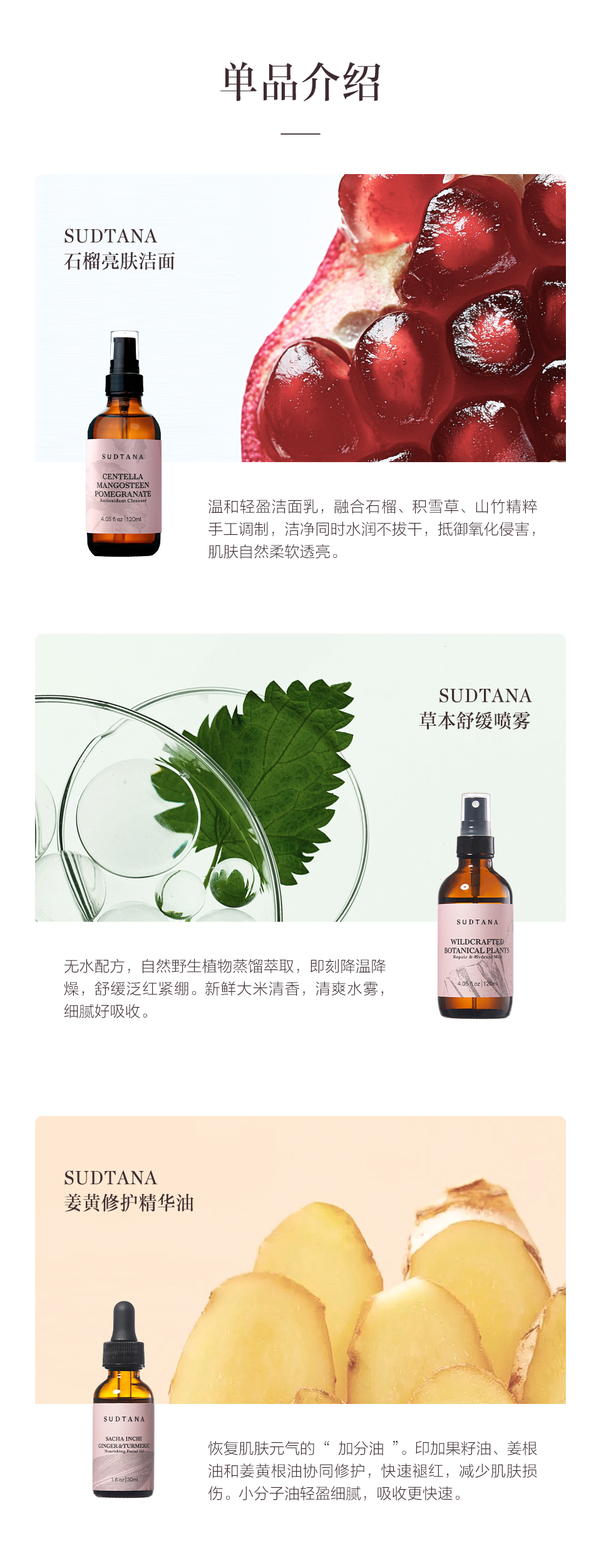 保税直发 SUDTANA 焕颜舒缓修护套组(石榴亮肤洁面 120mL+姜黄修护精华油 30mL+草本舒缓喷雾 120mL)