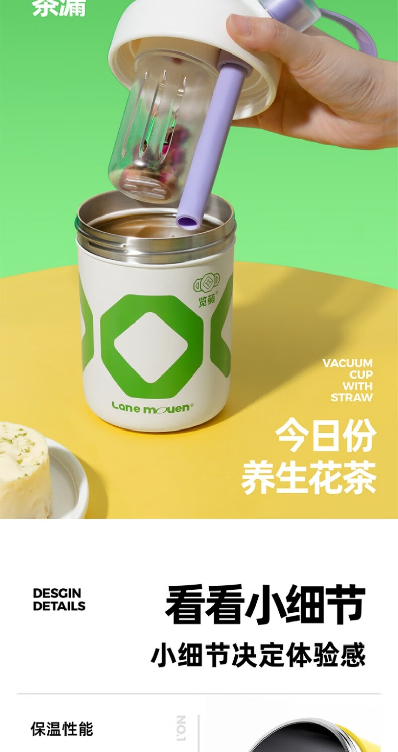 览萌316不锈钢茶水分离奇趣吸管杯 白色420ml CWX