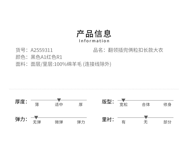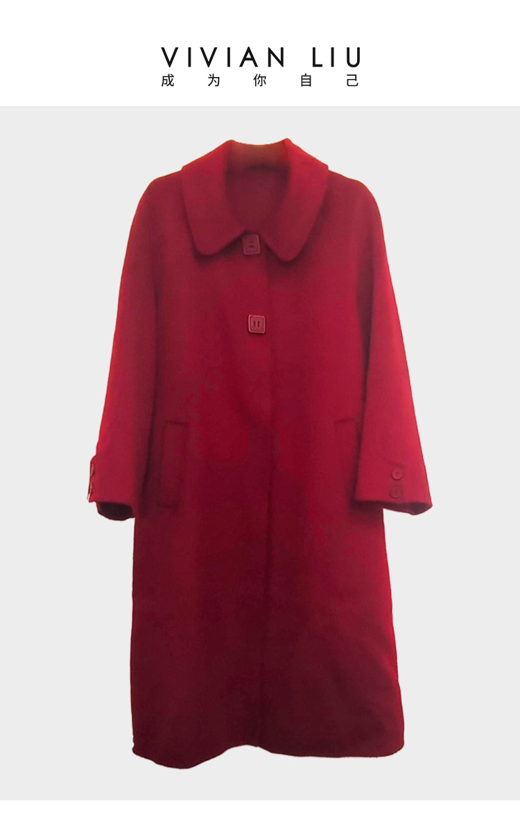 VIVIAN LIU薇薇安刘A2559311秋女装新款翻领插兜俩粒扣长款大衣