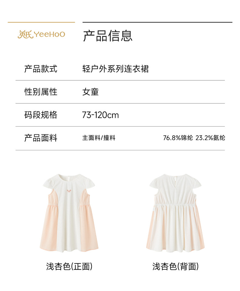 英氏女童短袖连衣裙夏新款女生裙子宝宝洋气公主裙YRLCJ2S039A