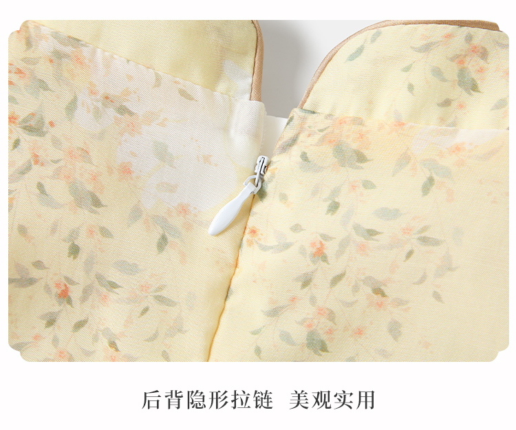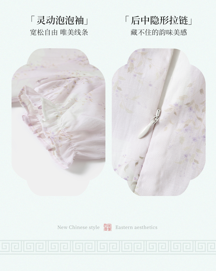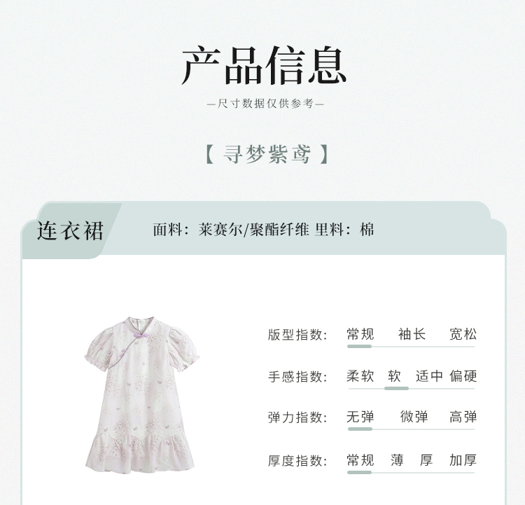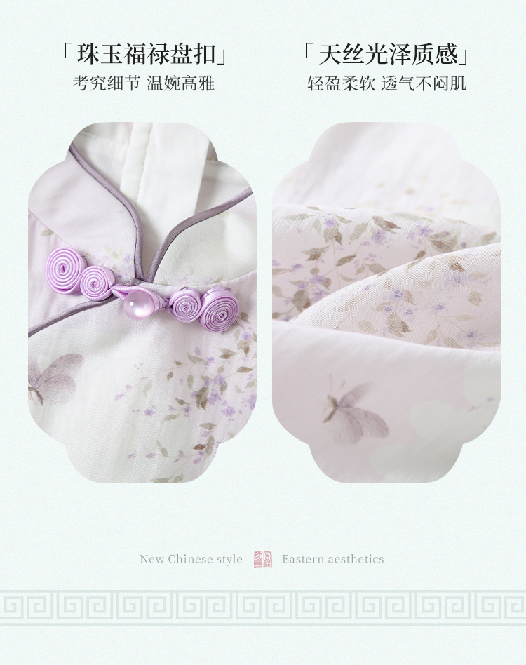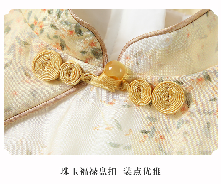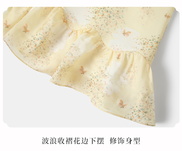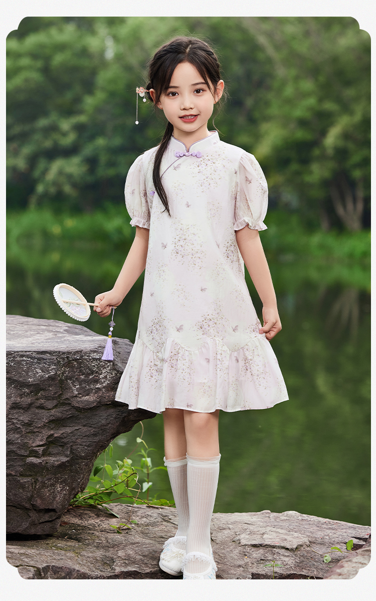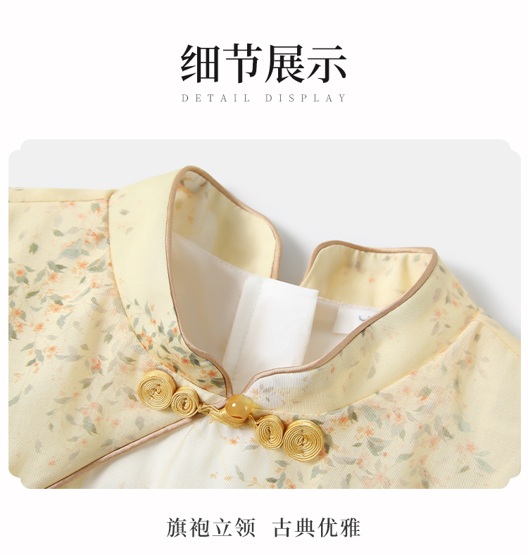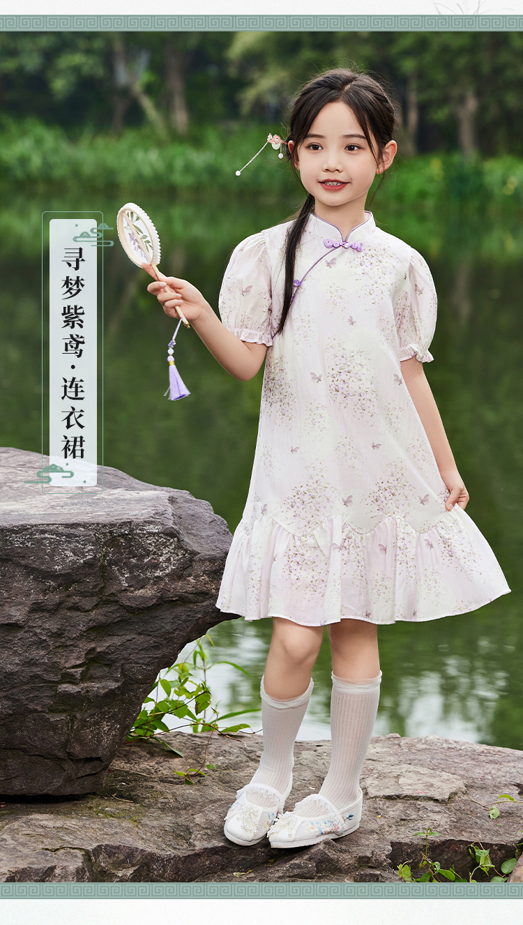 【英氏限时清仓】【甜美新中式】【150-165】女童改良旗袍裙荷叶边裙摆仙女裙