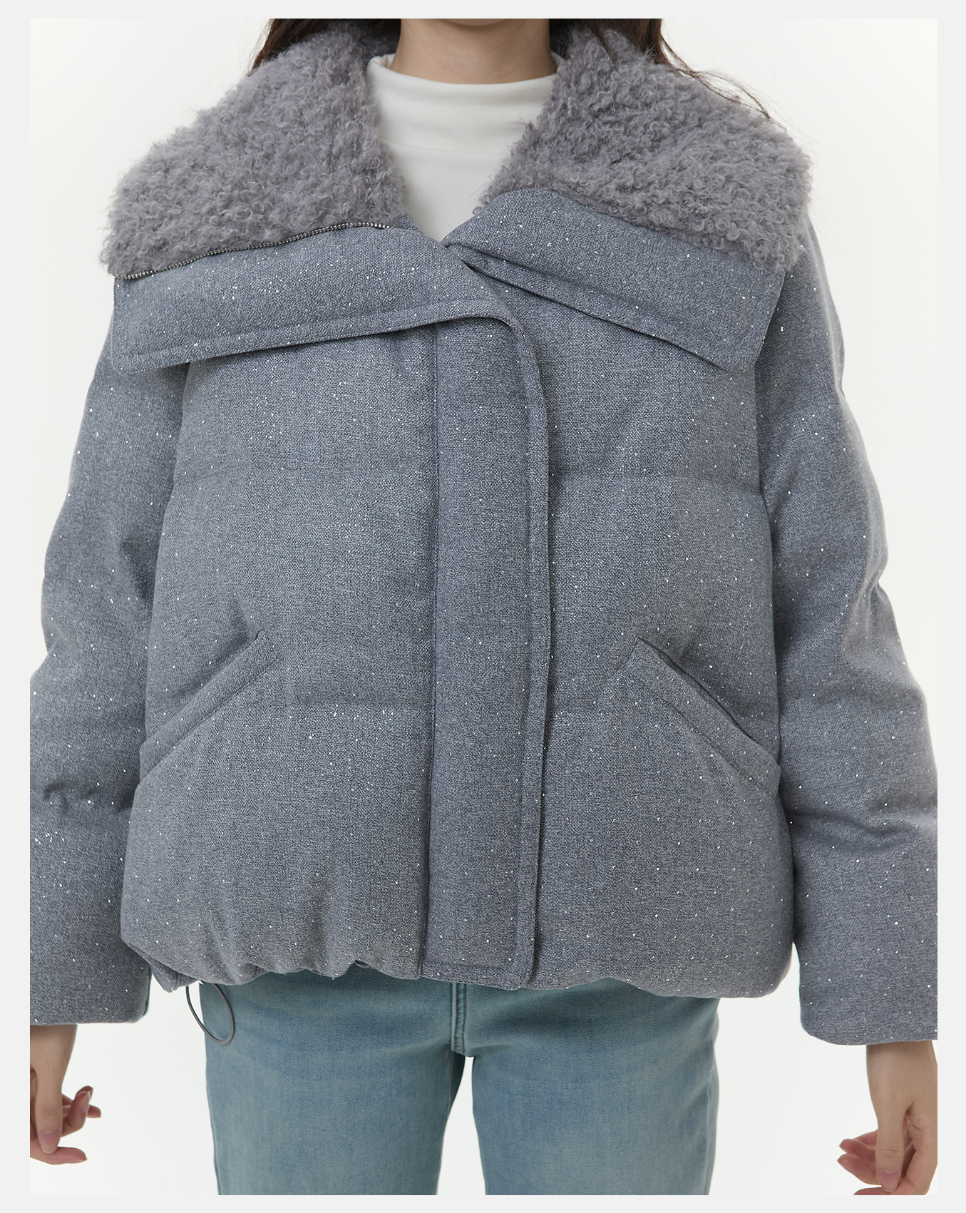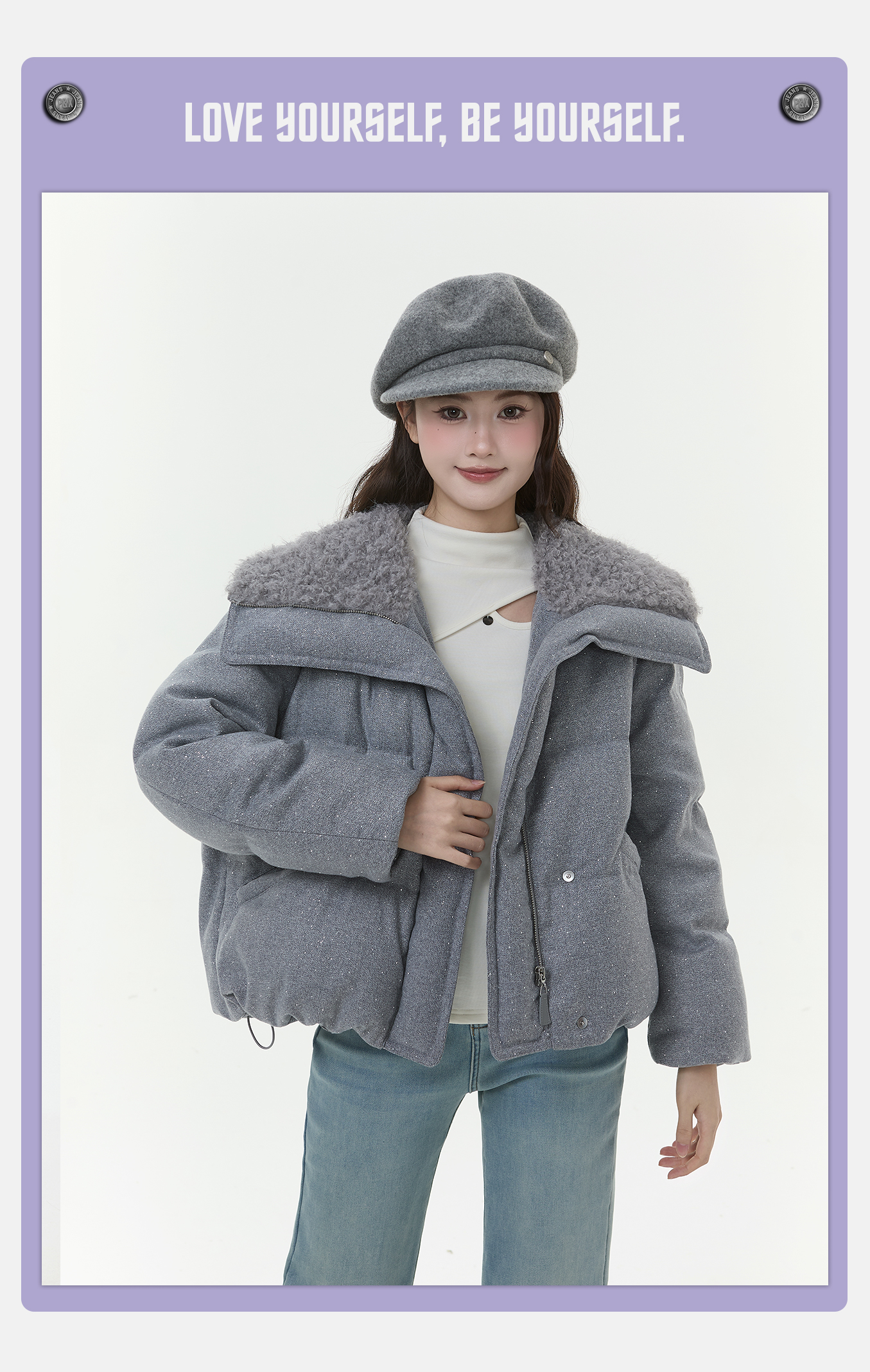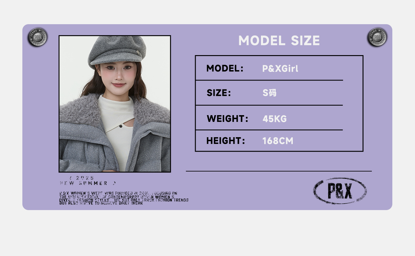 P&X设计师女装2025冬季羊羔绒翻领时尚短款羽绒服825424060 灰色