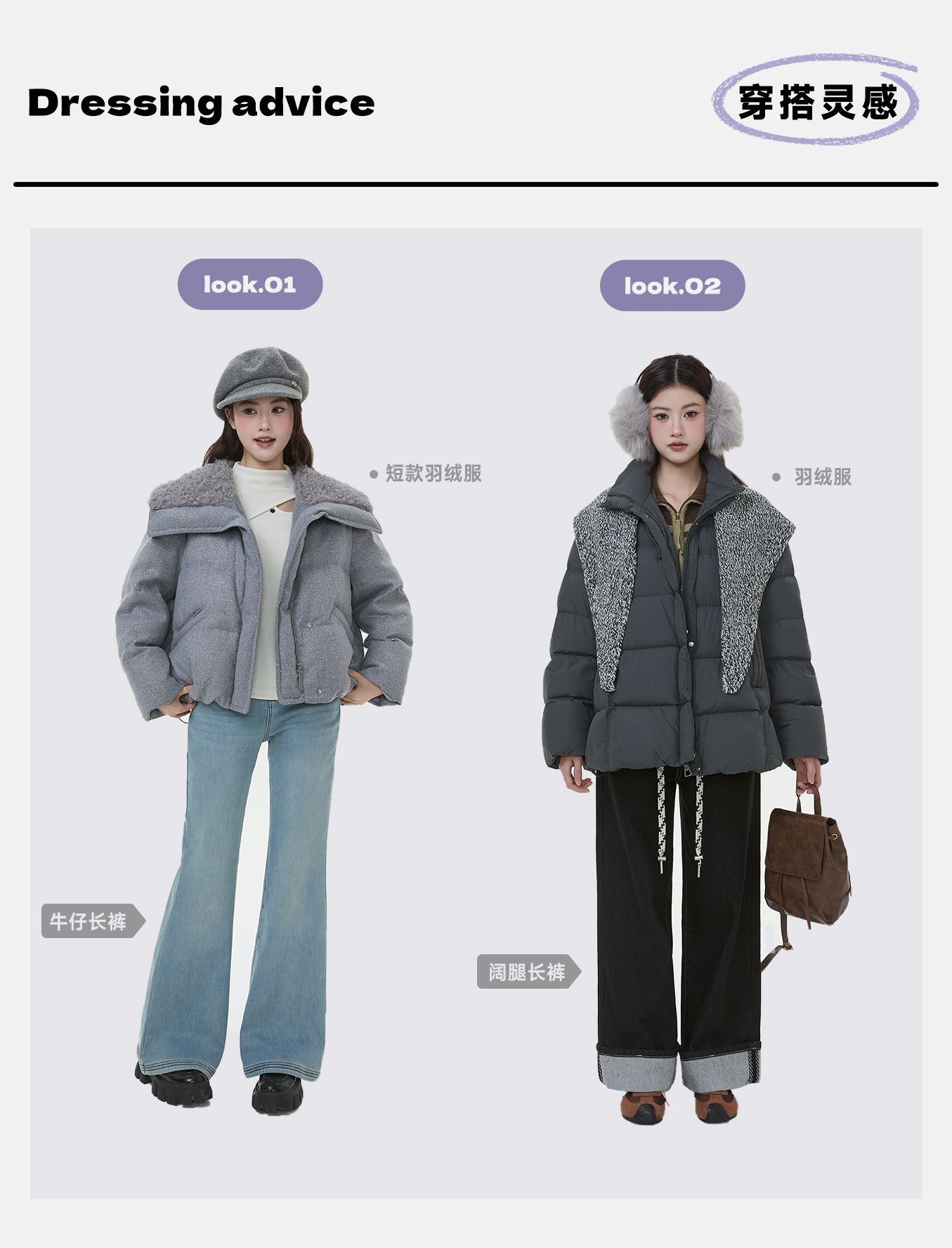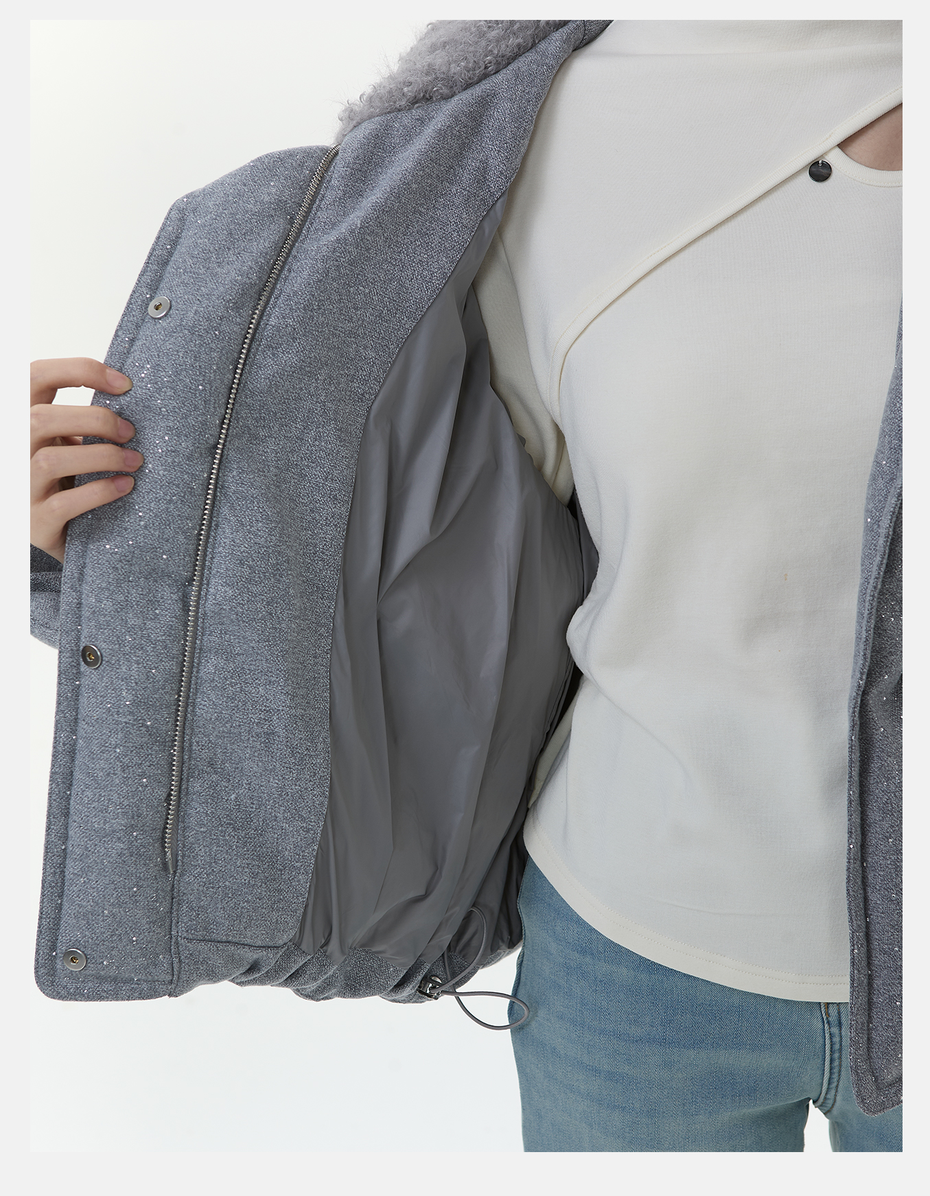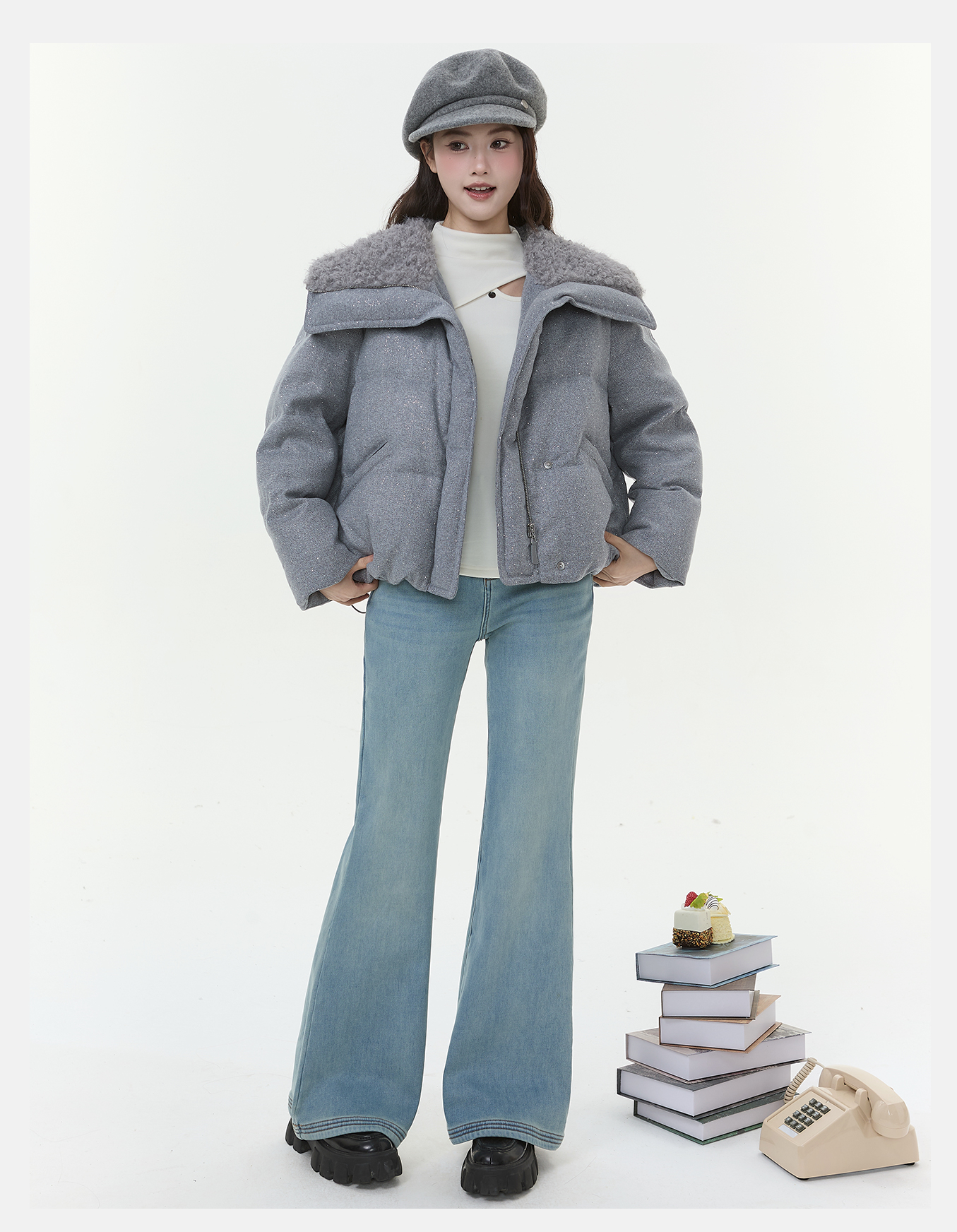 P&X设计师女装2025冬季羊羔绒翻领时尚短款羽绒服825424060 灰色