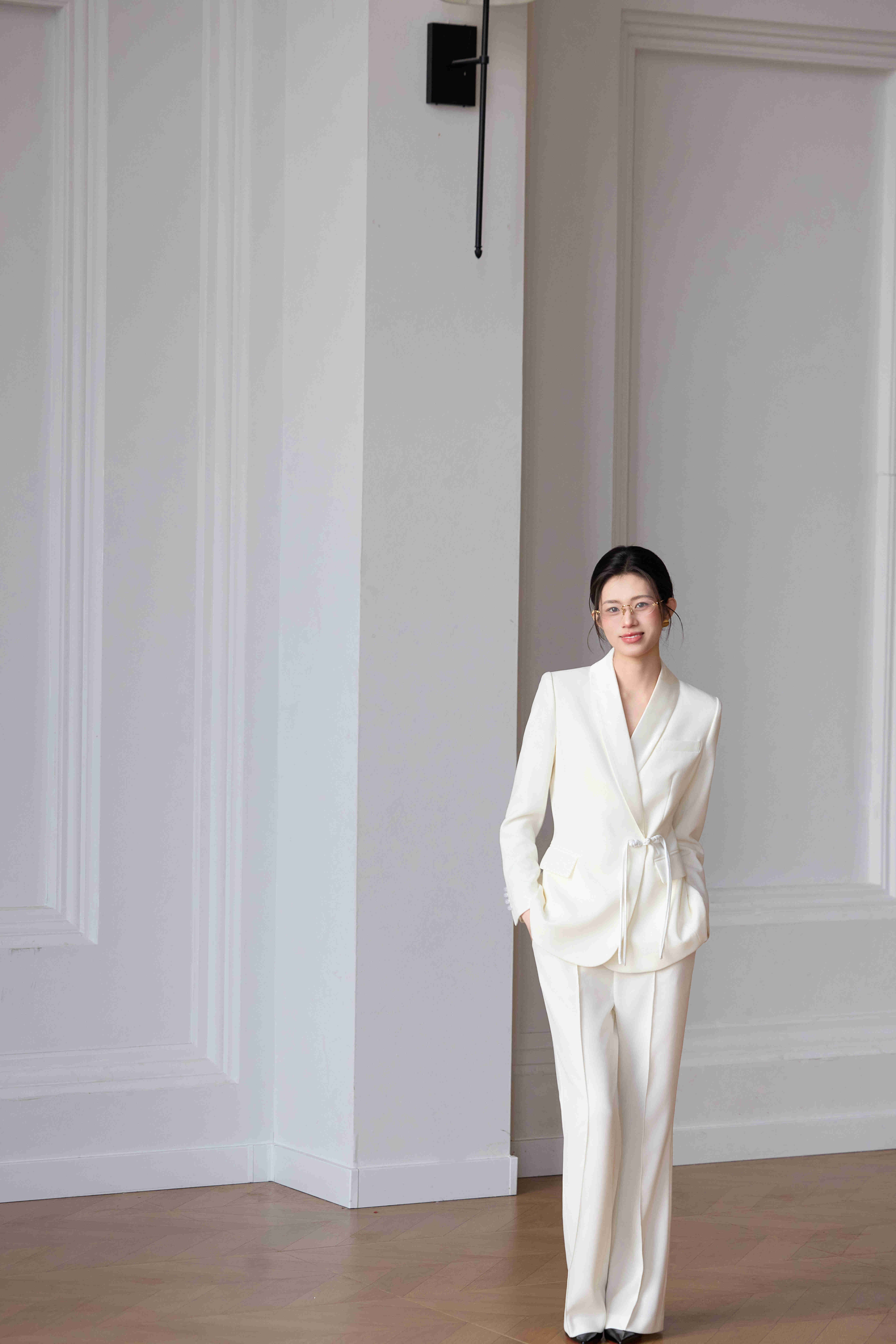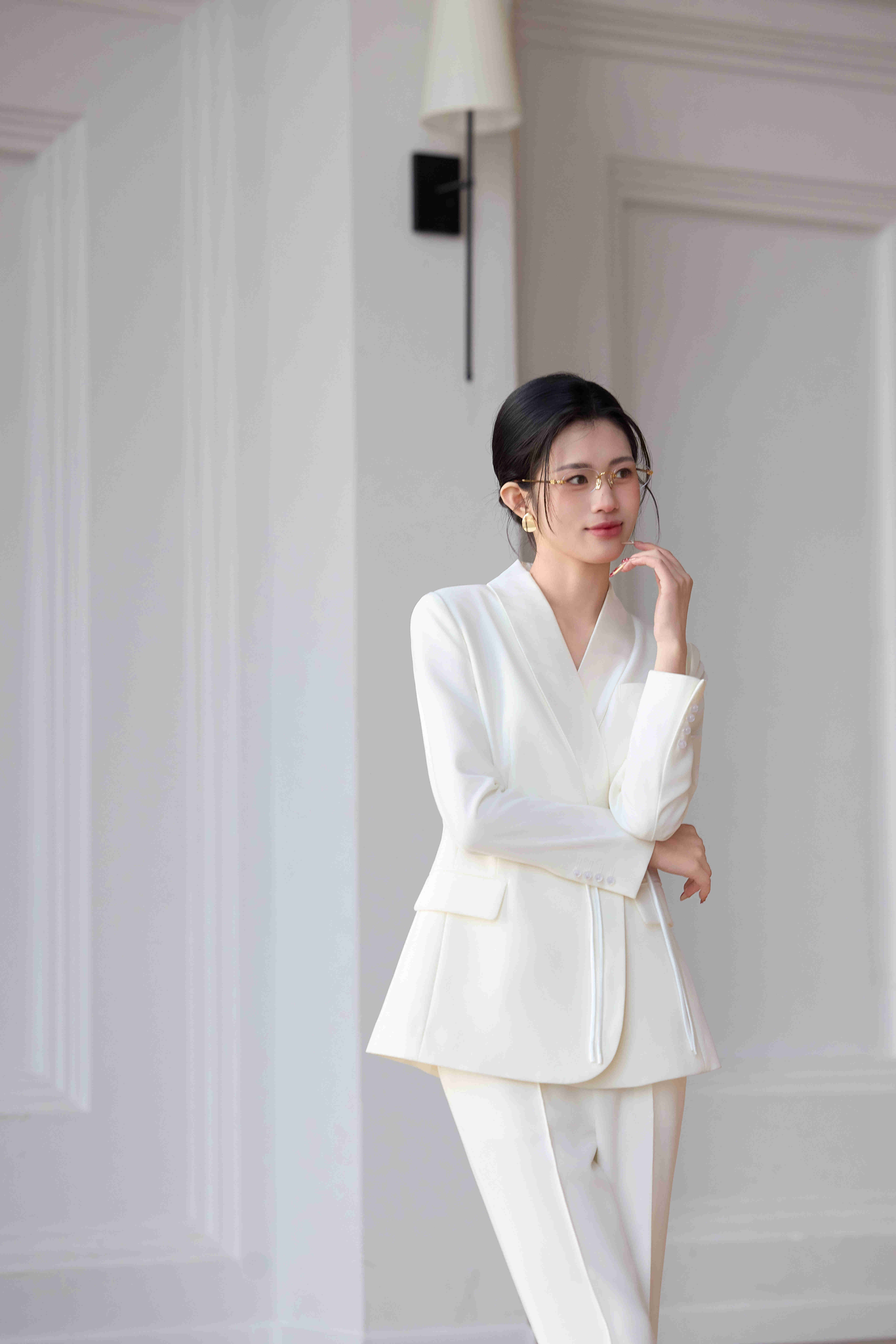 法小曼*子珍白色西装外套女高级感醋酸缎面新中式国风西服套装2026春季新款