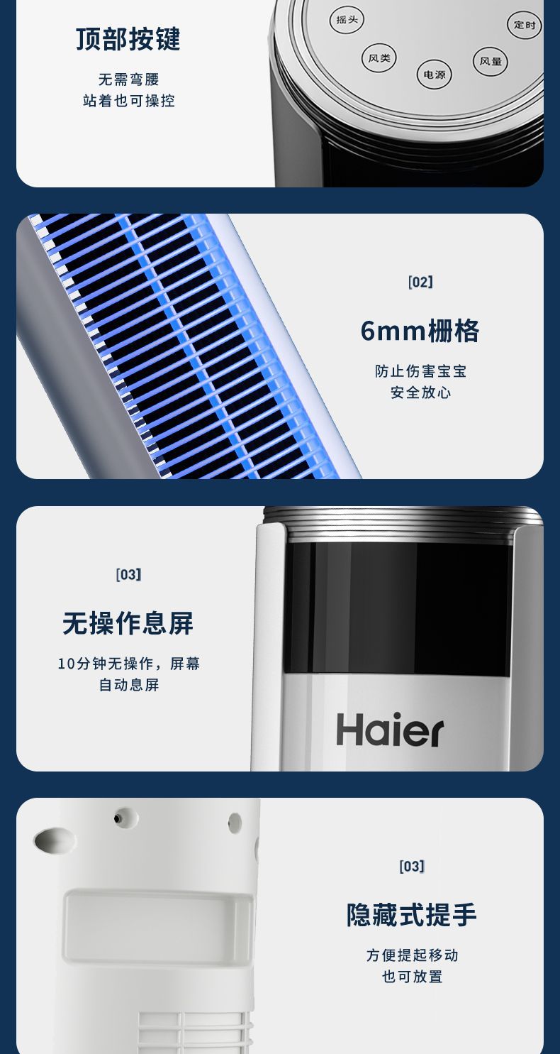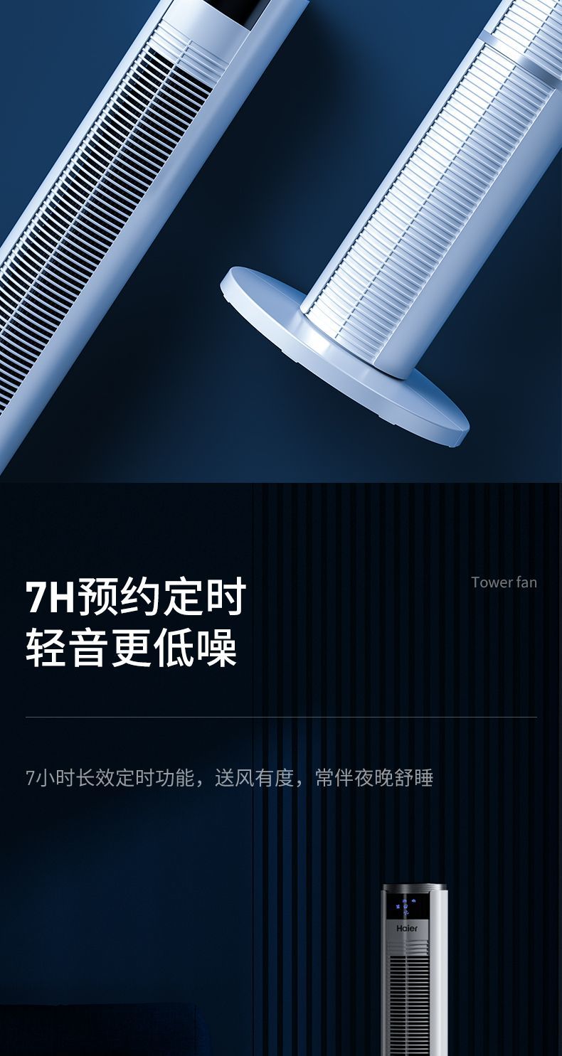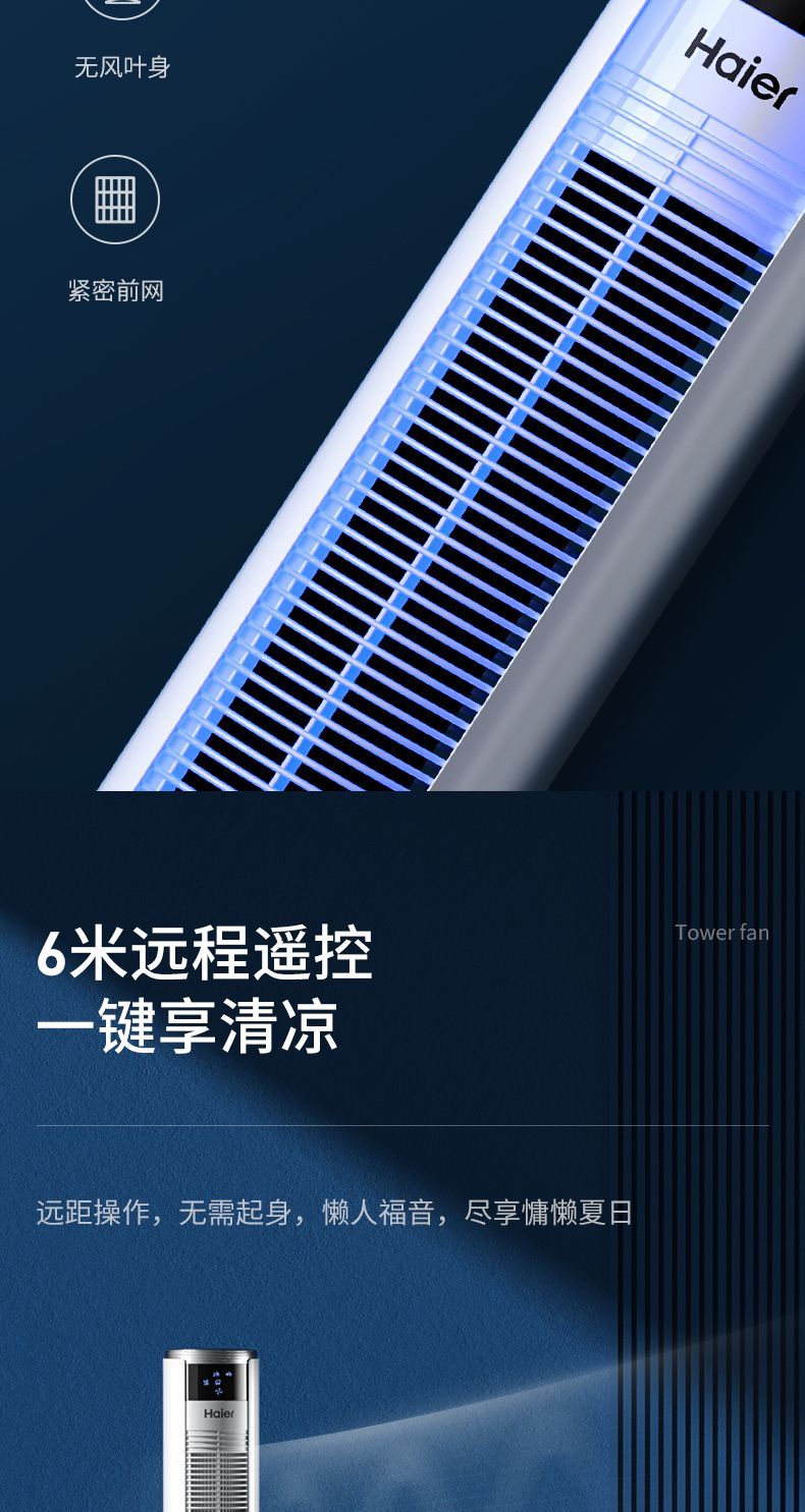 海尔塔扇落地扇摇头大风力轻音无叶电扇台立式电风扇