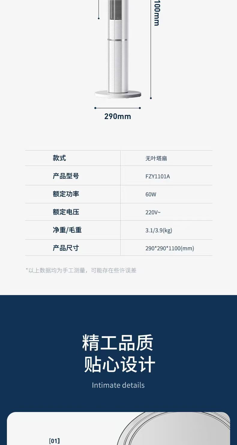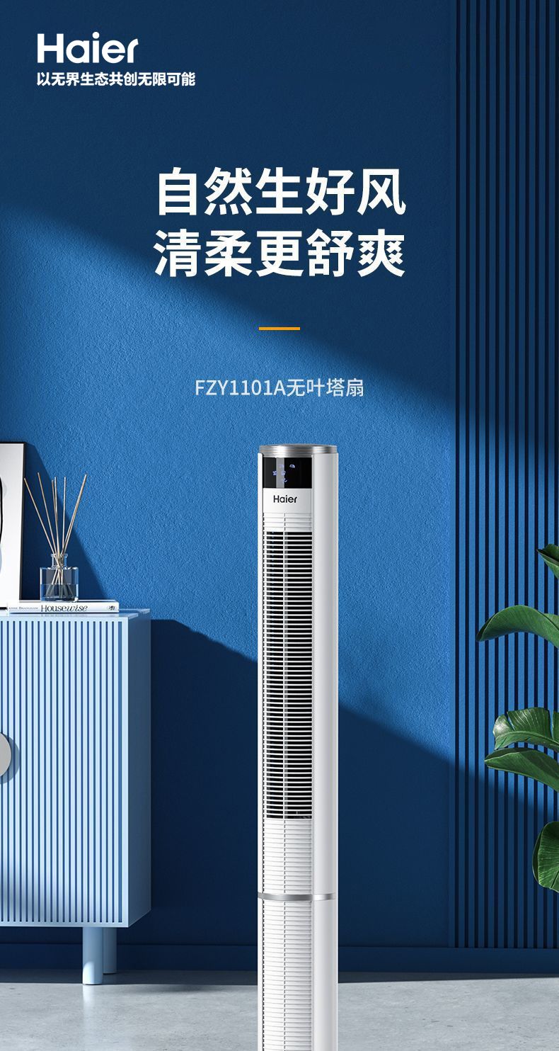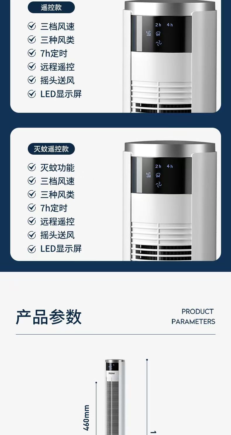 海尔塔扇落地扇摇头大风力轻音无叶电扇台立式电风扇