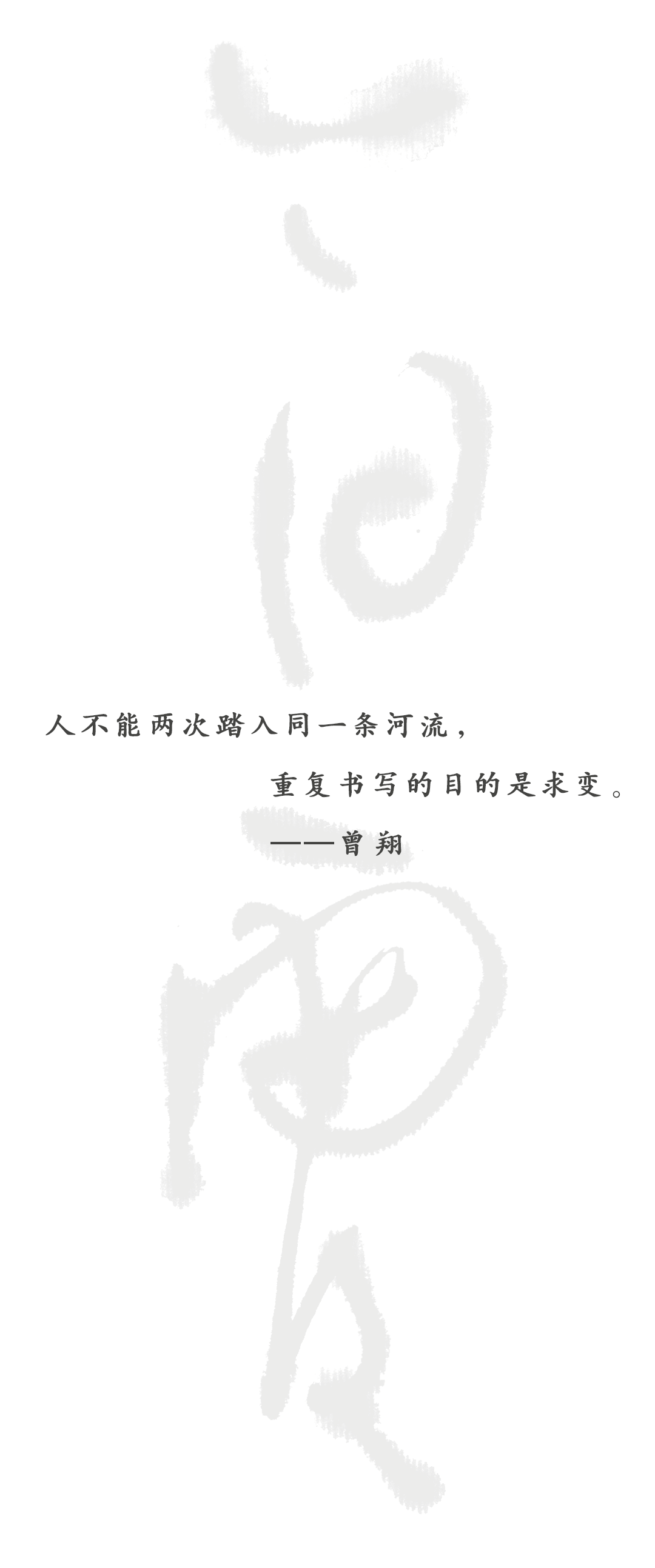 见书如面,对于曾翔而言,临书是与古人的对话。书迹所代表的,并不是简单字形上的招式或者某一家的“样版”,而是如源泉活水般的存在,不具固定面貌,能从中汲取源源不断地生命力。那是传承千年的文化气韵,也是浩瀚无垠地神游想象,如他说:“我的每一次临写,都像是完成了一次时空穿越的旅程。”