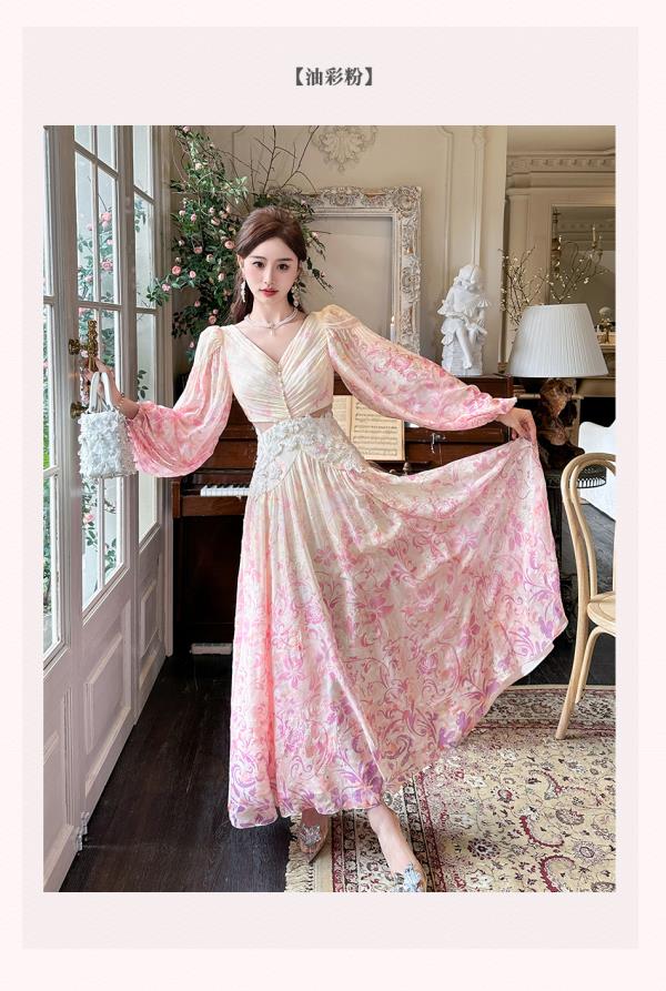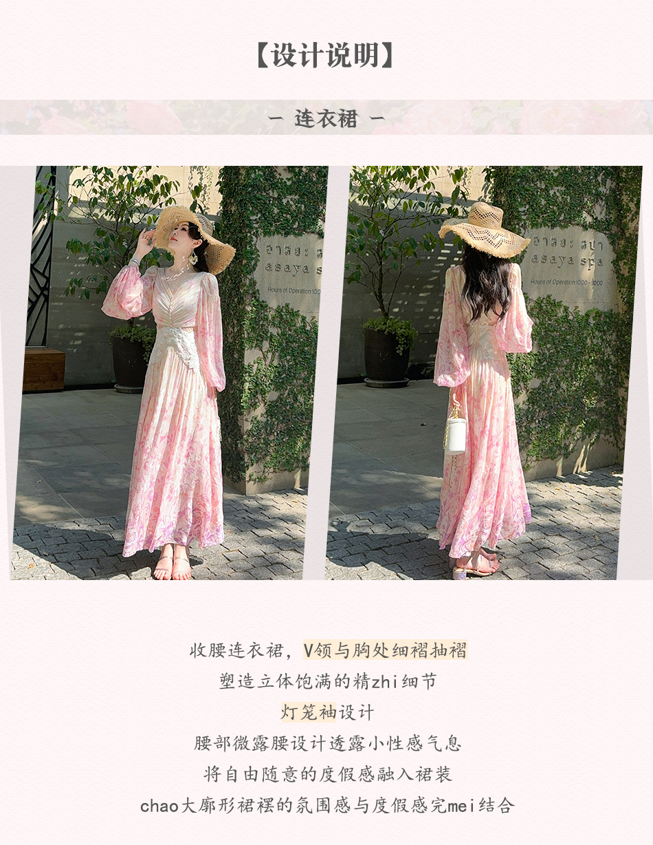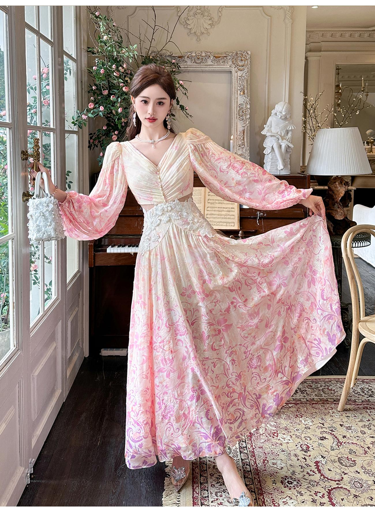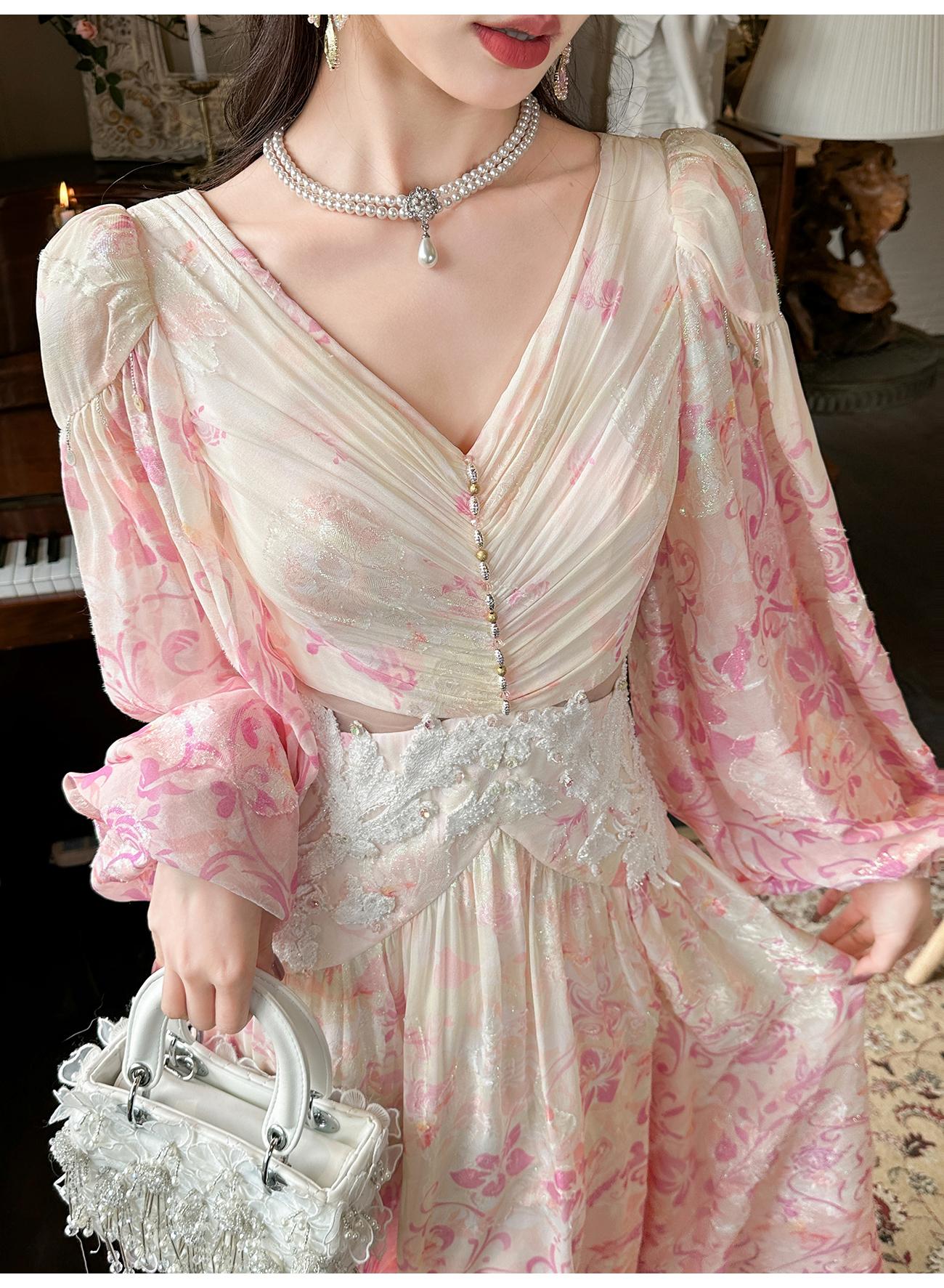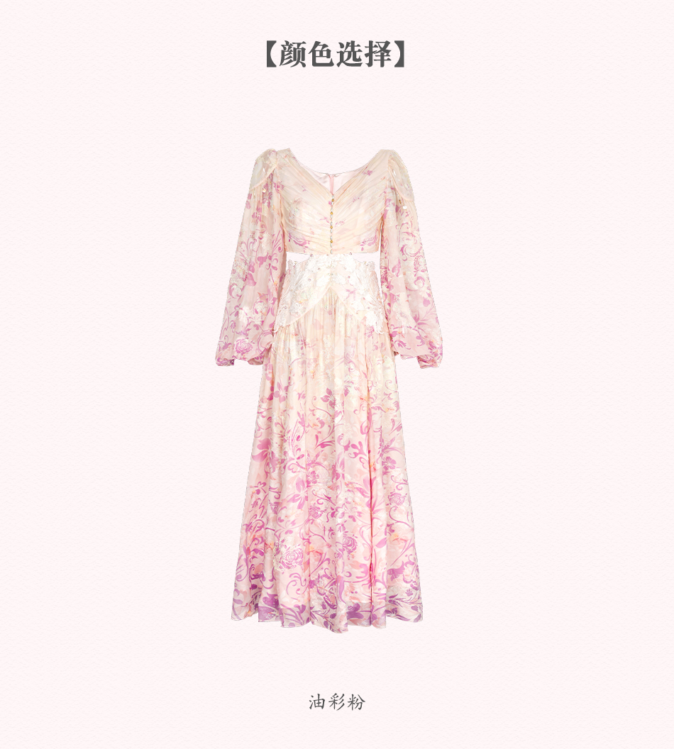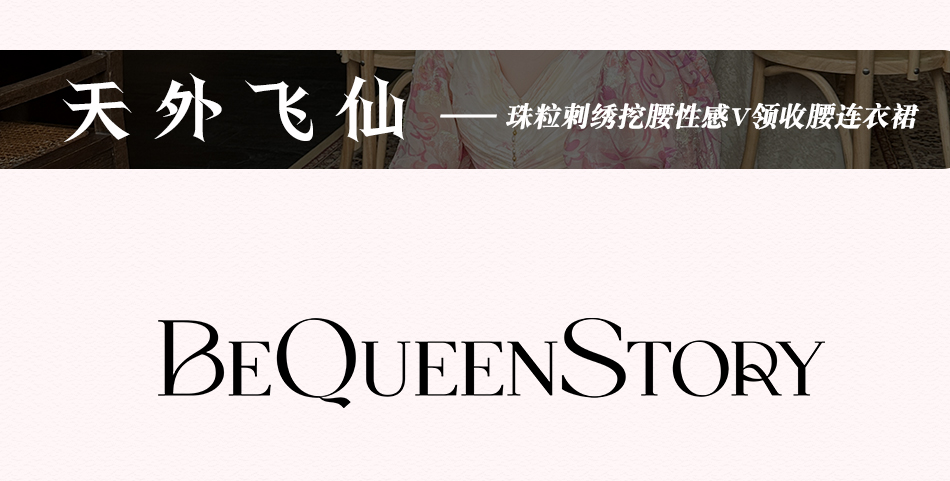 余潇潇【天外飞仙】轻奢重工珠粒刺绣挖腰性感V领收腰连衣裙