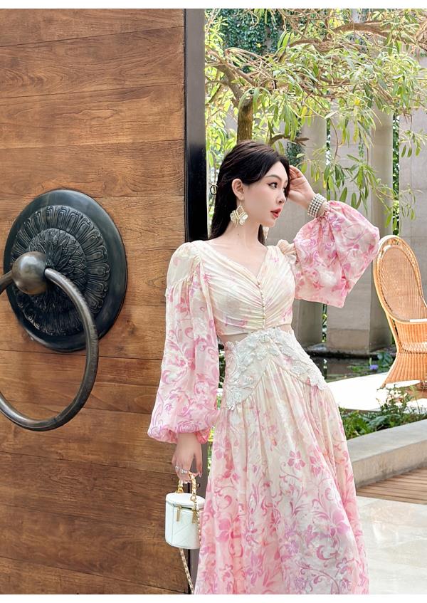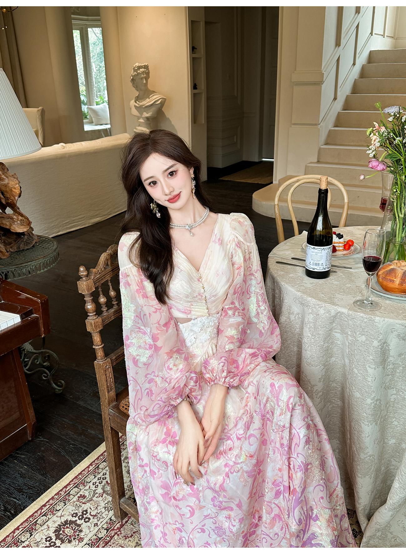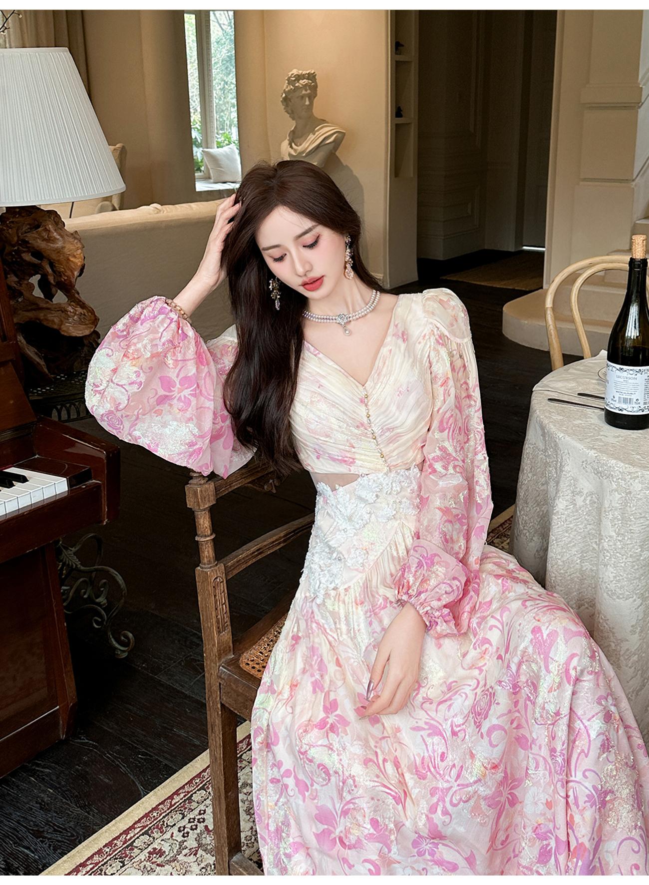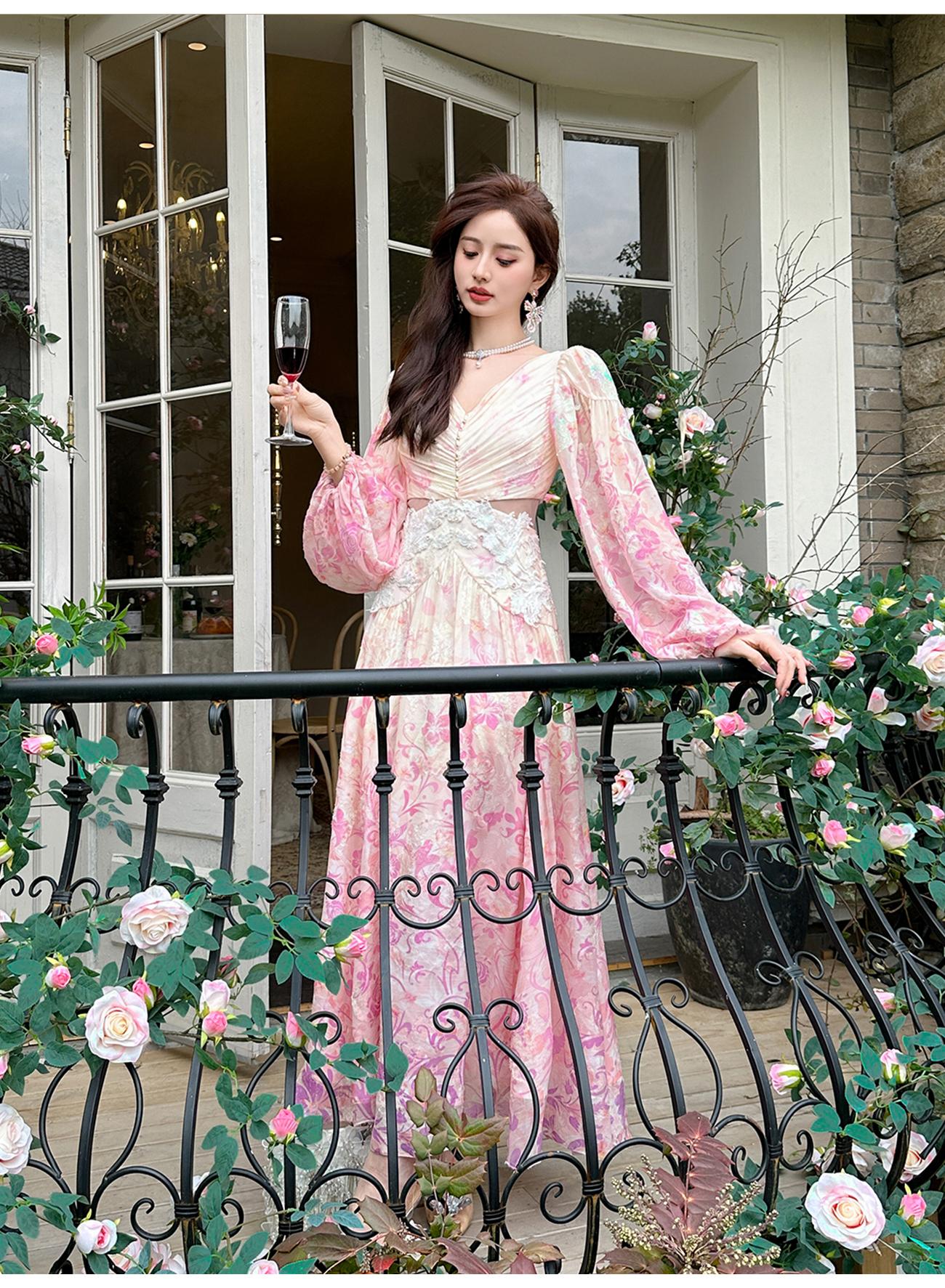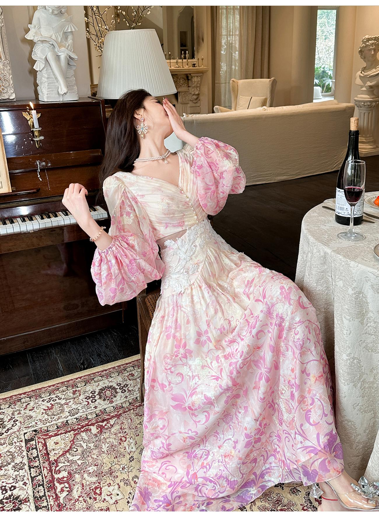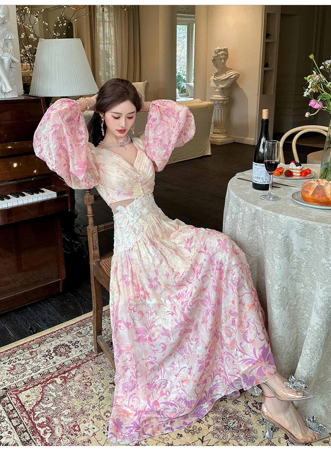 余潇潇【天外飞仙】轻奢重工珠粒刺绣挖腰性感V领收腰连衣裙