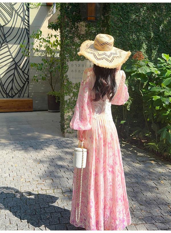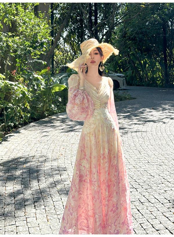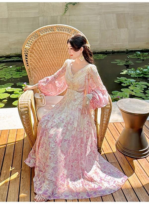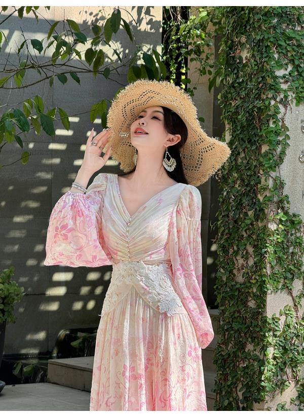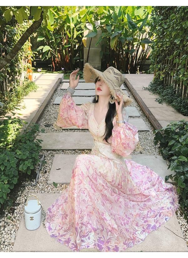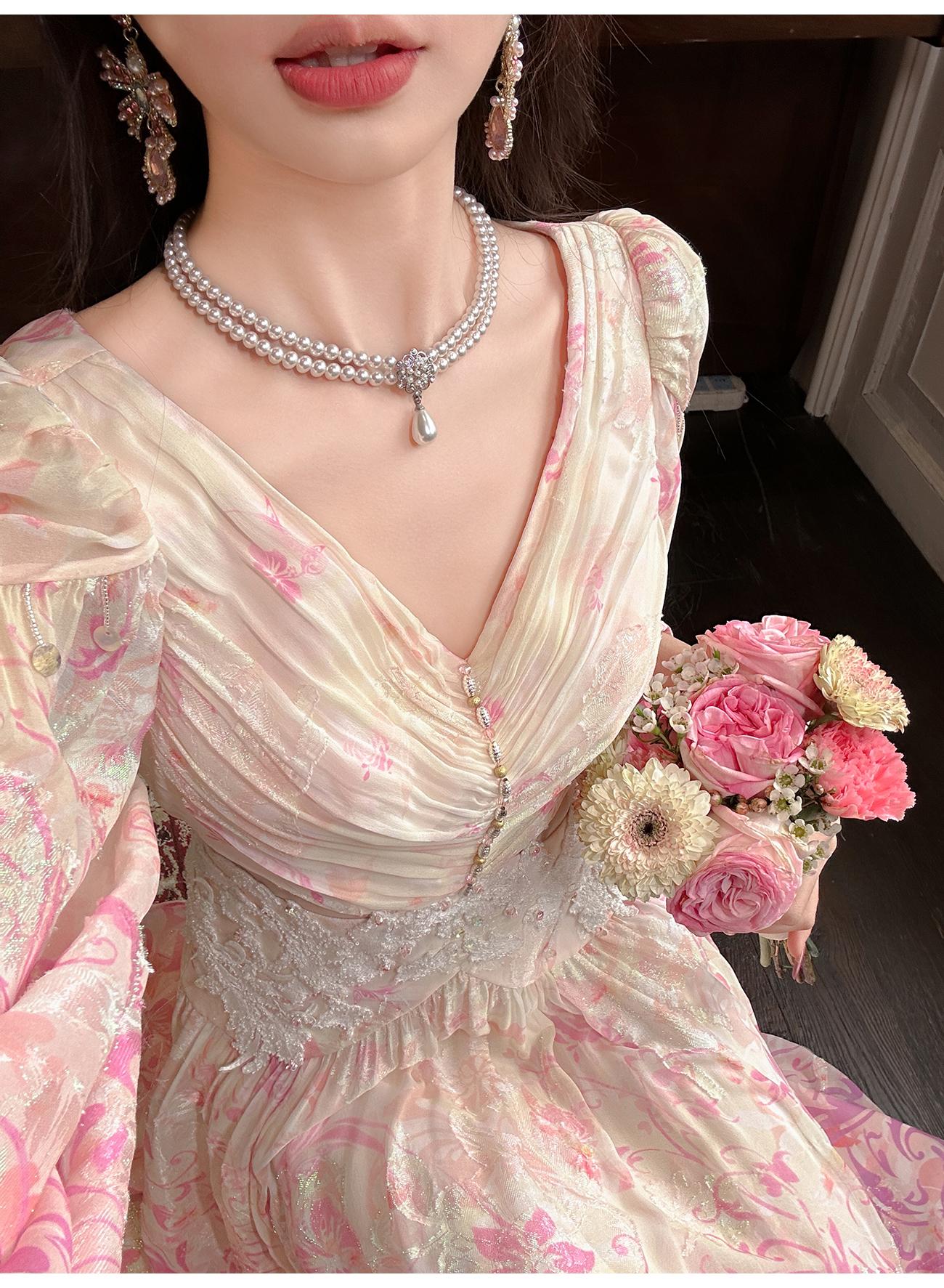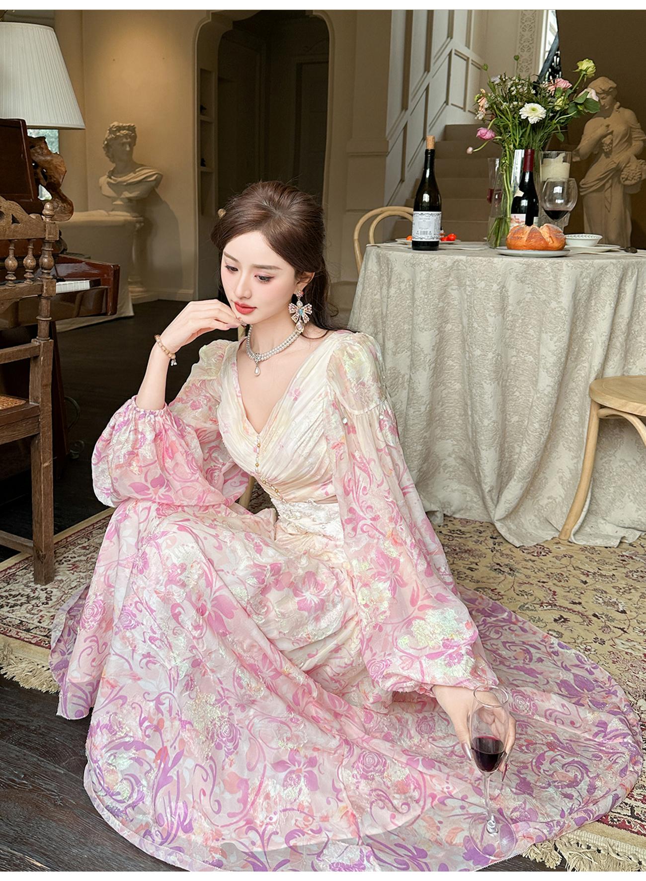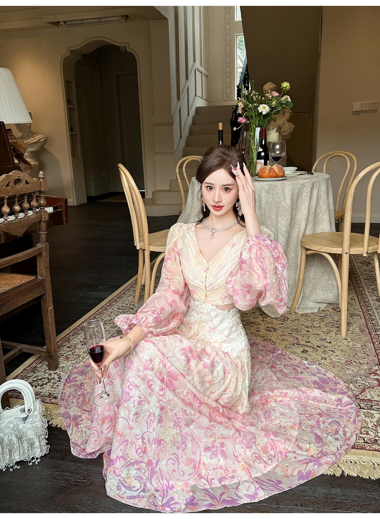 余潇潇【天外飞仙】轻奢重工珠粒刺绣挖腰性感V领收腰连衣裙
