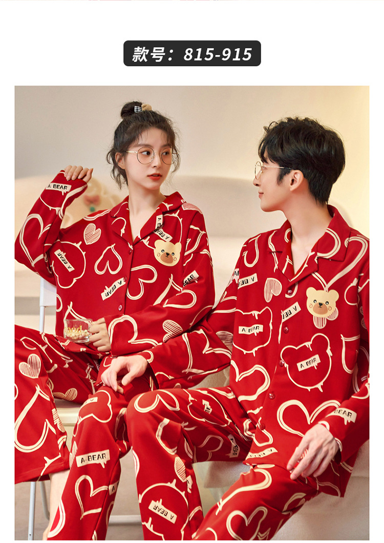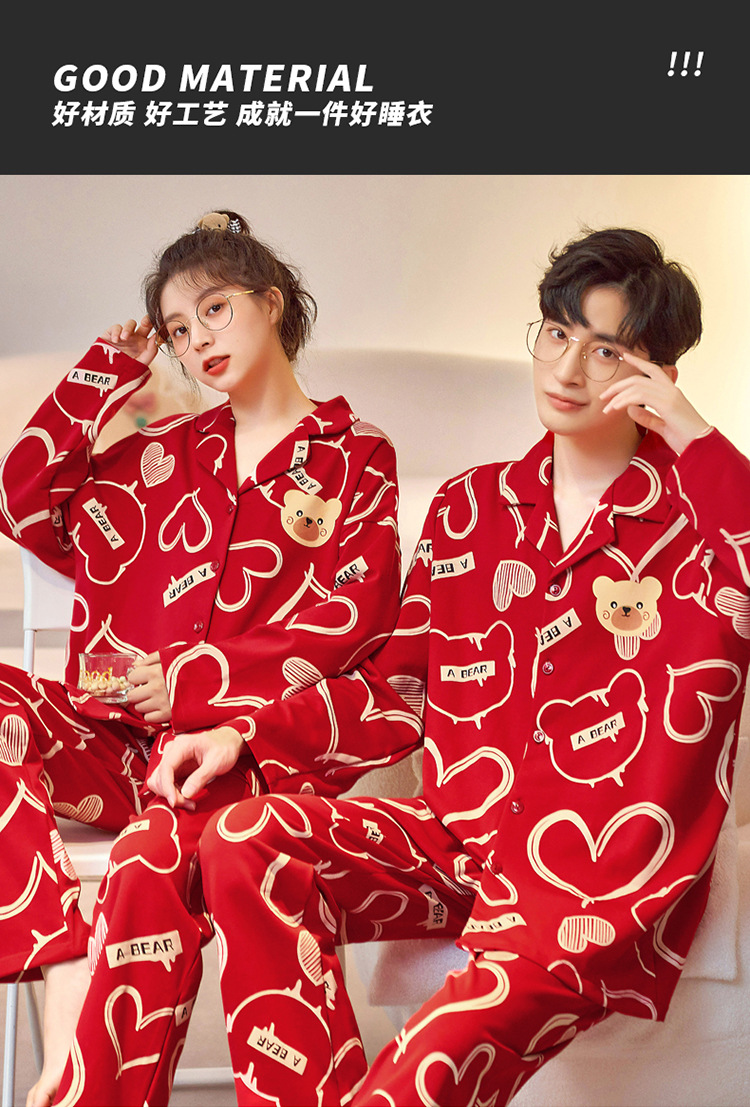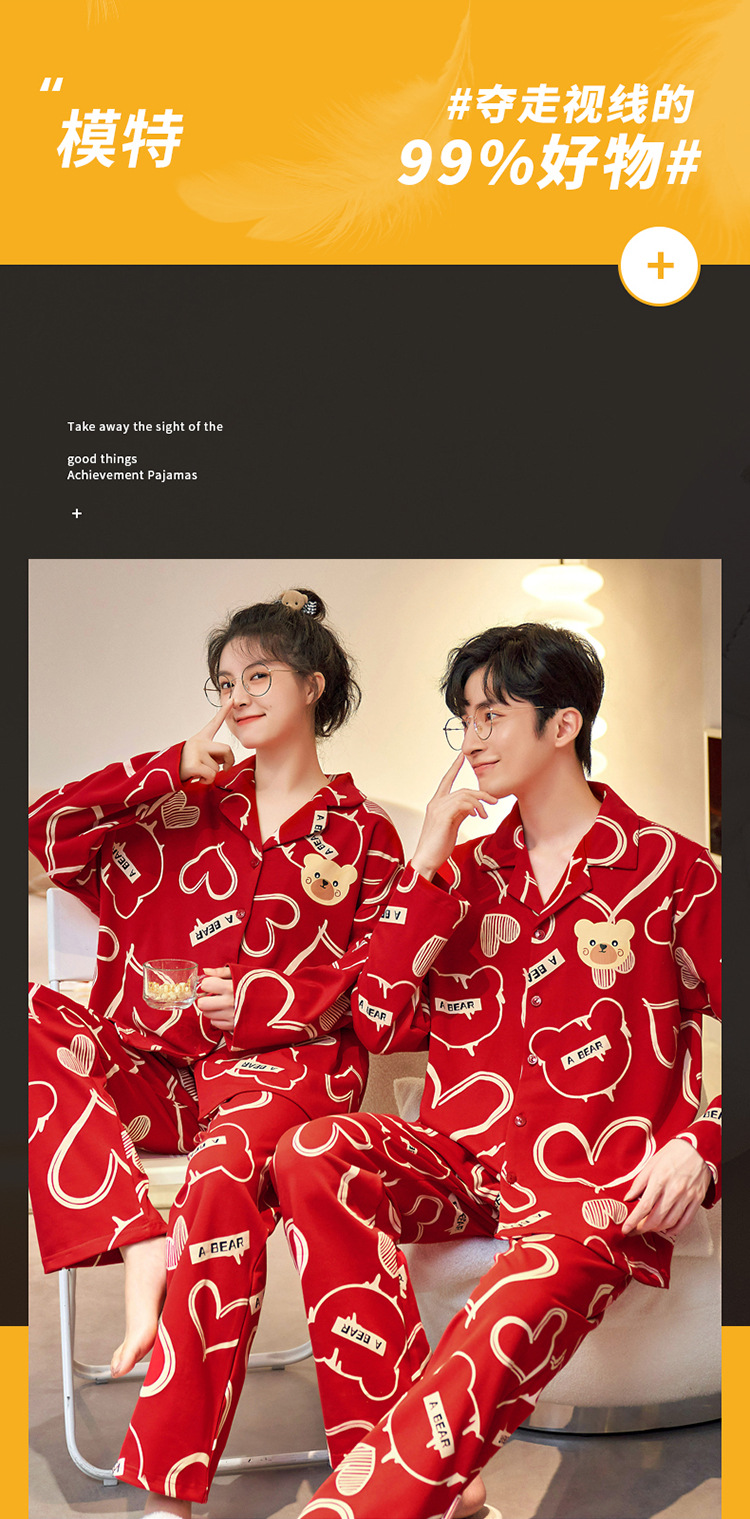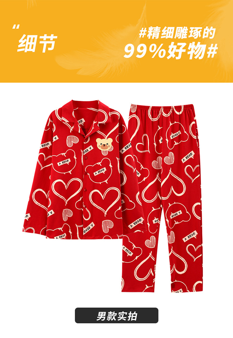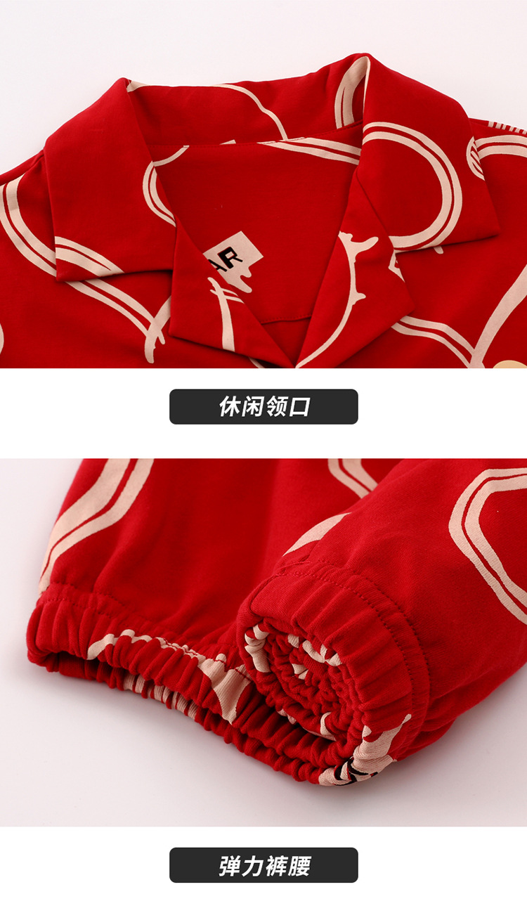 新款春秋本命年【情侣睡衣 结婚红色纯棉长袖】女男新婚喜庆 家居服套装