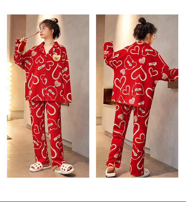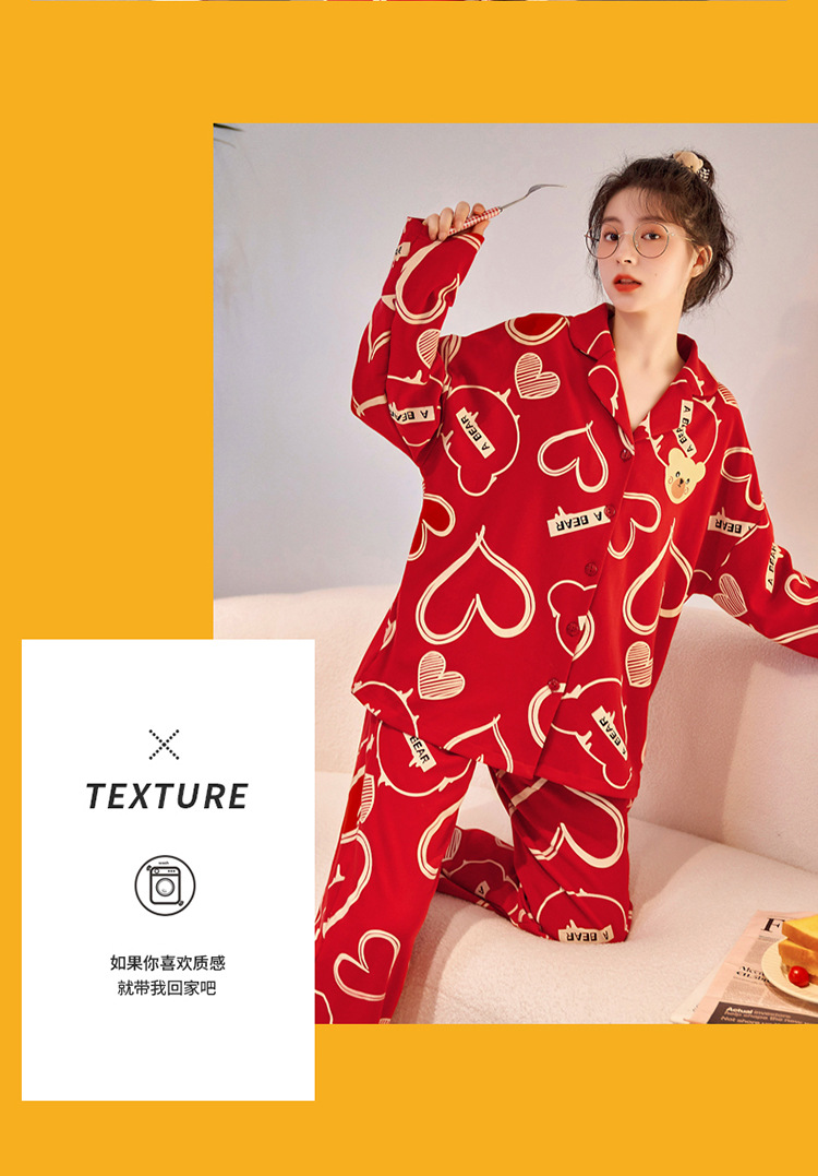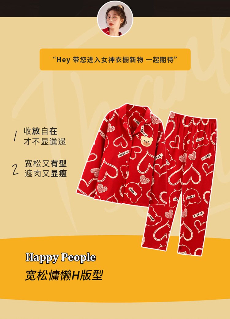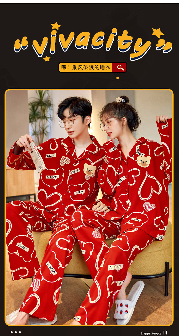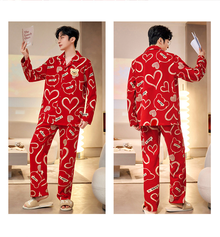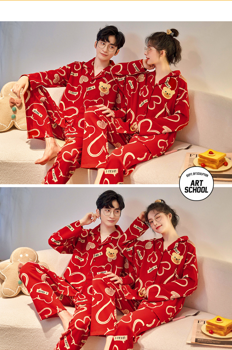 新款春秋本命年【情侣睡衣 结婚红色纯棉长袖】女男新婚喜庆 家居服套装
