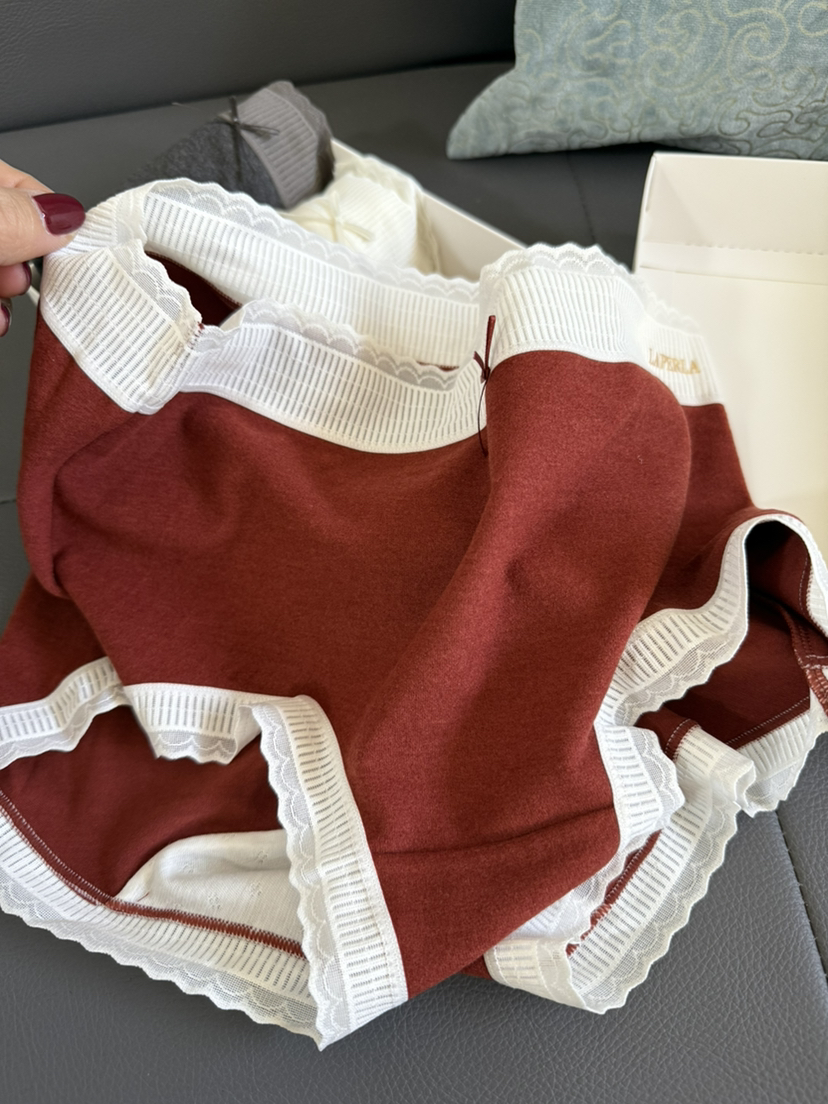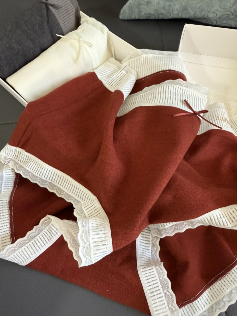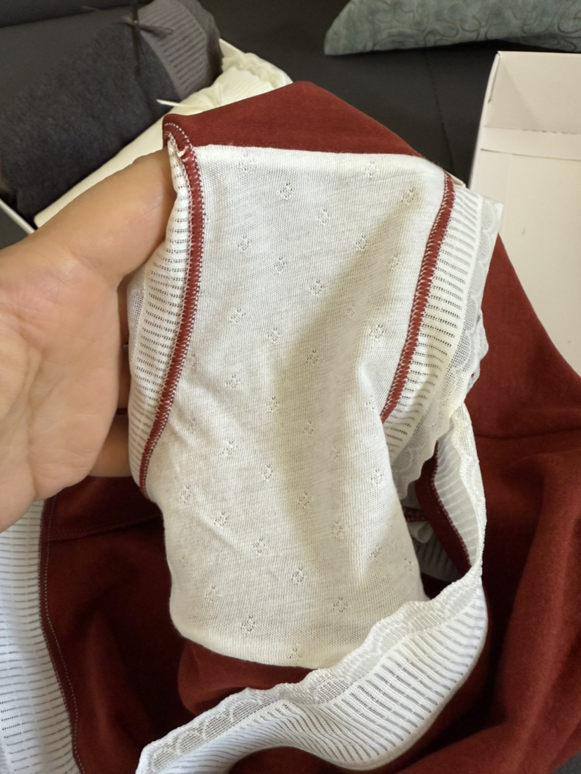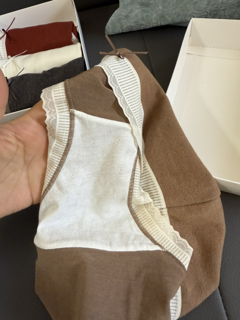 秋冬天指望内裤保暖,不太现实,不过确实不想夏天那种穿上嗖嗖凉,上身就温润保暖的体感,四个颜色配色也很好看,比较有秋冬氛围感,裆部也够大,姨妈期有那啥需求的,也完全足够,够用。