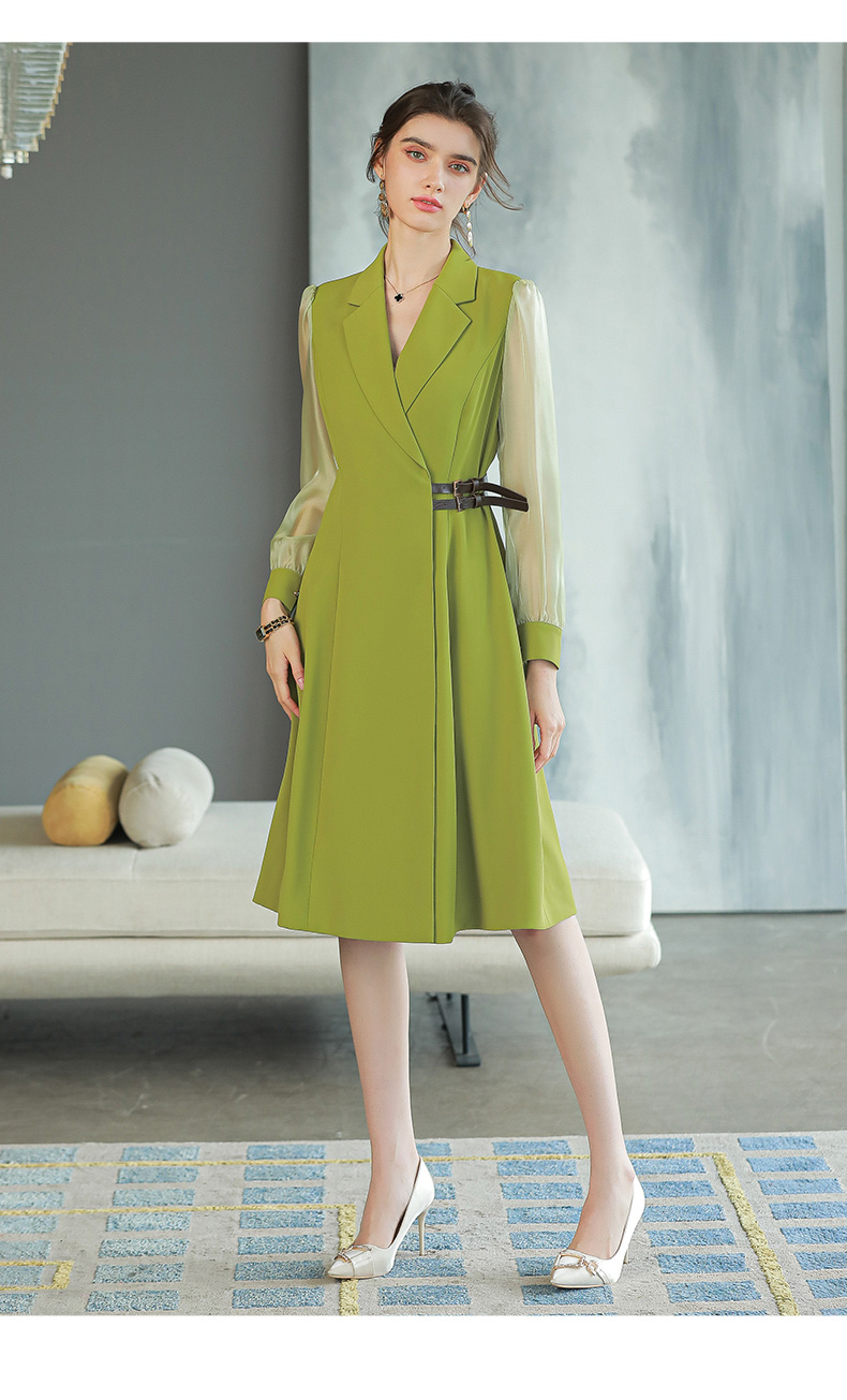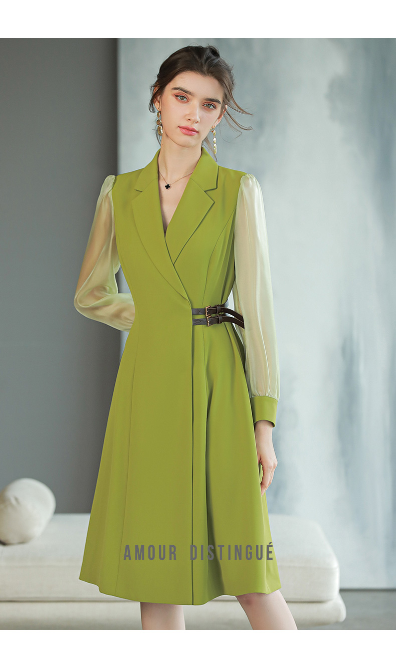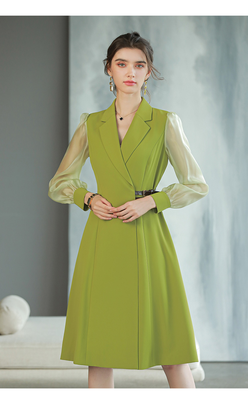 IWY/香草绿色西装连衣裙女长袖时尚气质收腰显瘦裙子Q729a字裙大摆裙