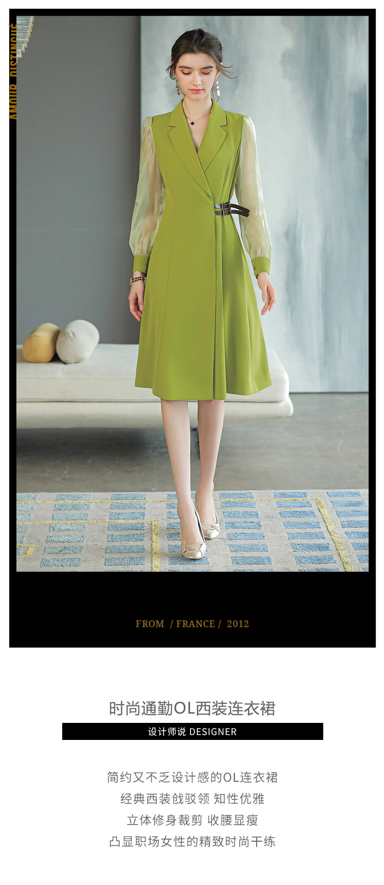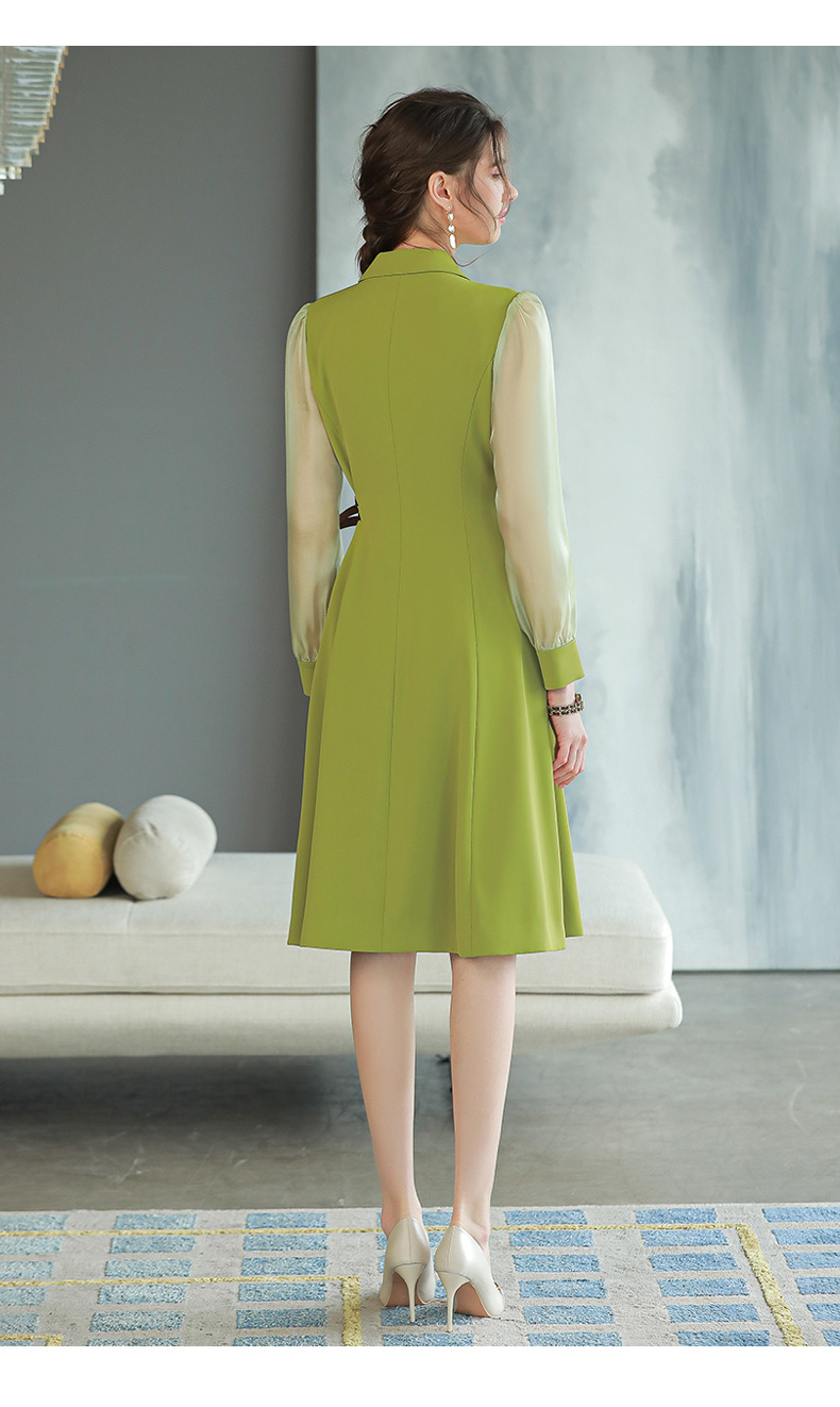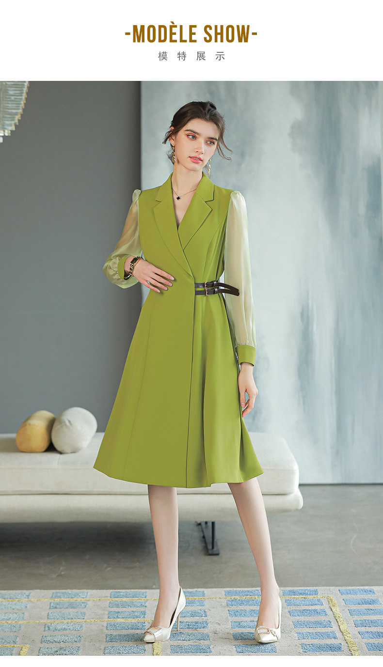 IWY/香草绿色西装连衣裙女长袖时尚气质收腰显瘦裙子Q729a字裙大摆裙