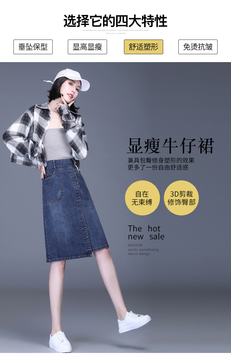 时尚优雅女神范,修身显瘦包臀牛仔裙新款弹力牛仔半身裙MYX-330