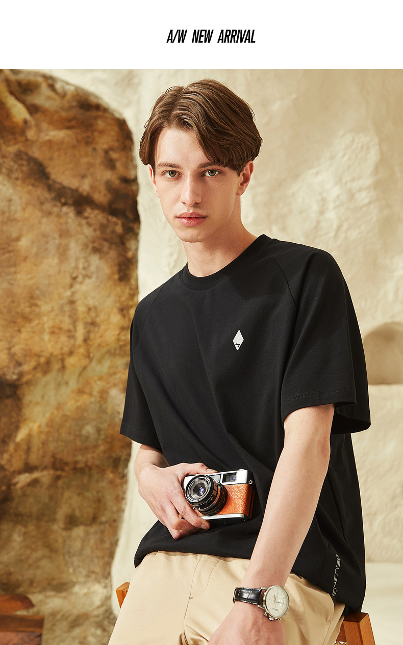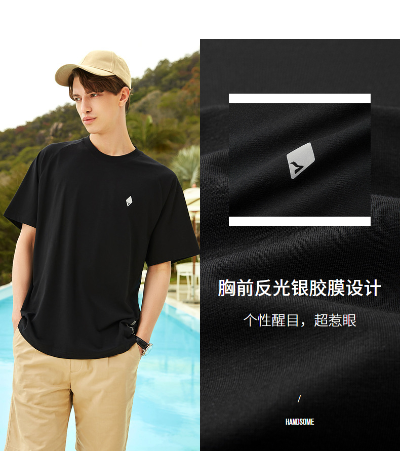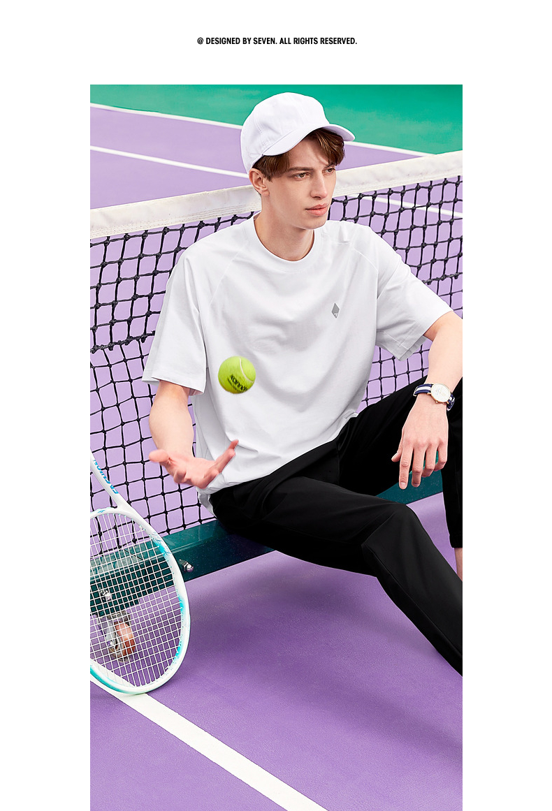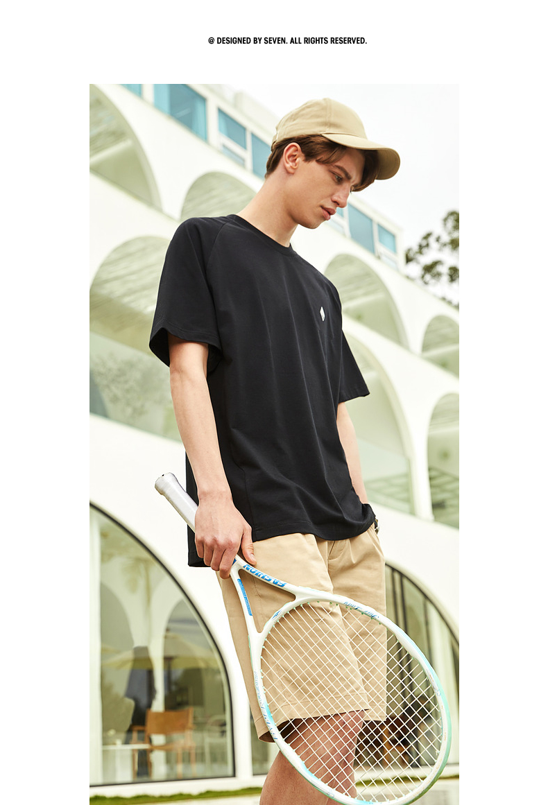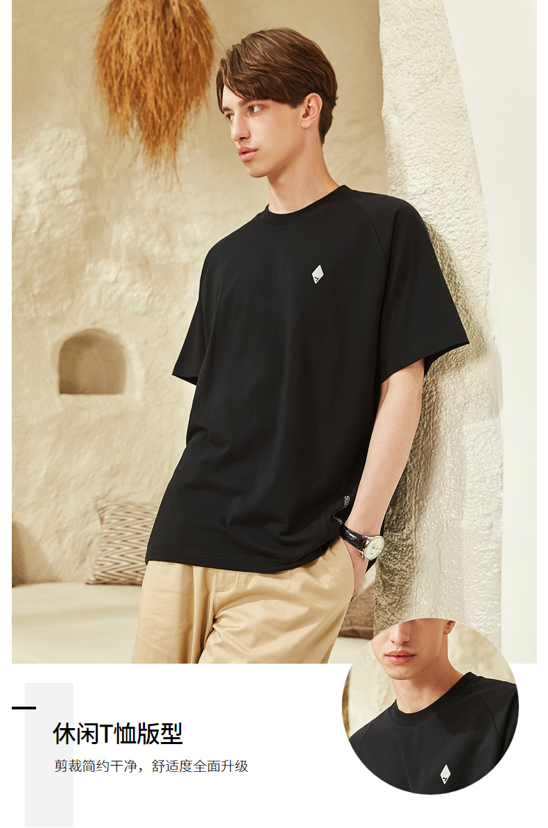 柒牌男士短袖t恤夏季薄款运动休闲中青年插肩袖圆领套头上衣 124T71330