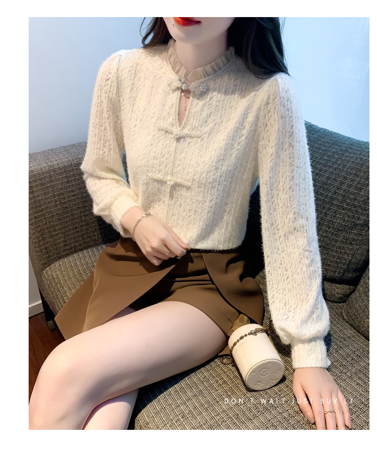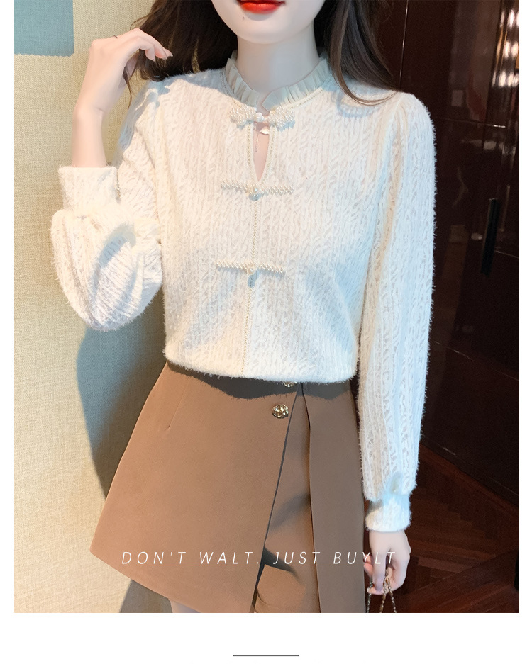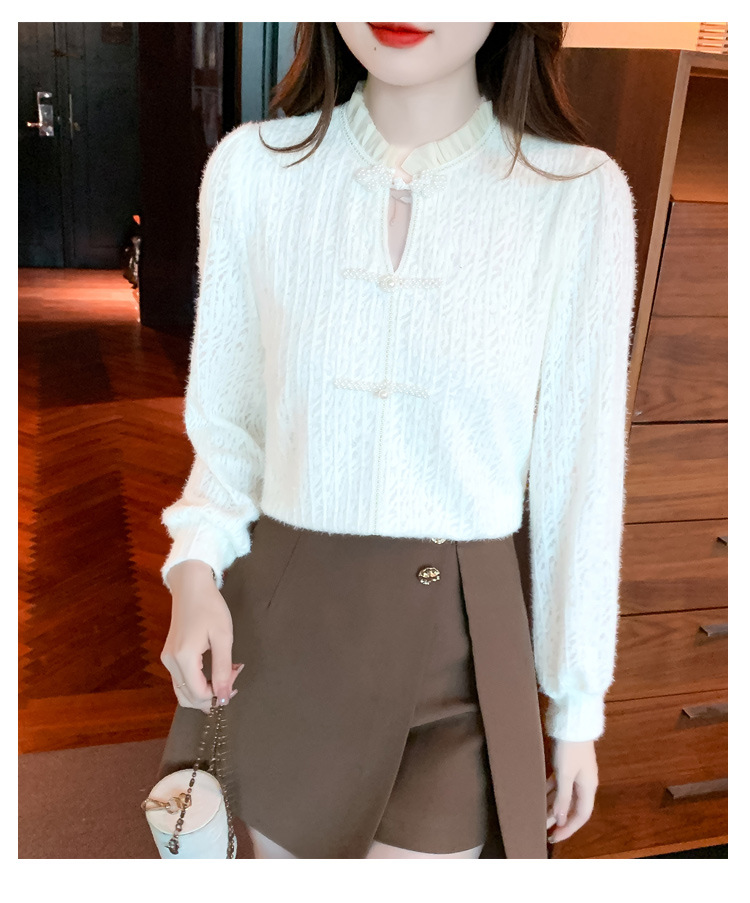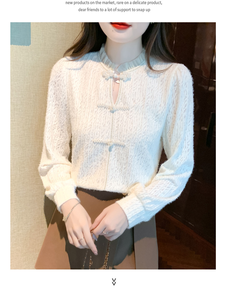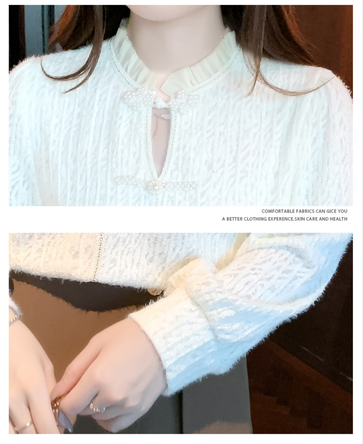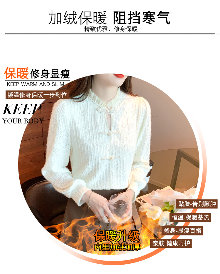 盘扣蕾丝打底衫女,冬加绒内搭别致上衣长袖磨毛洋气小衫AYL-2993