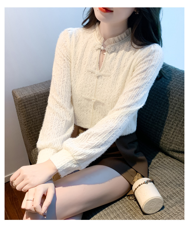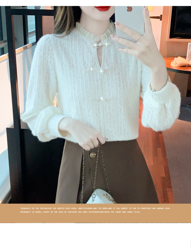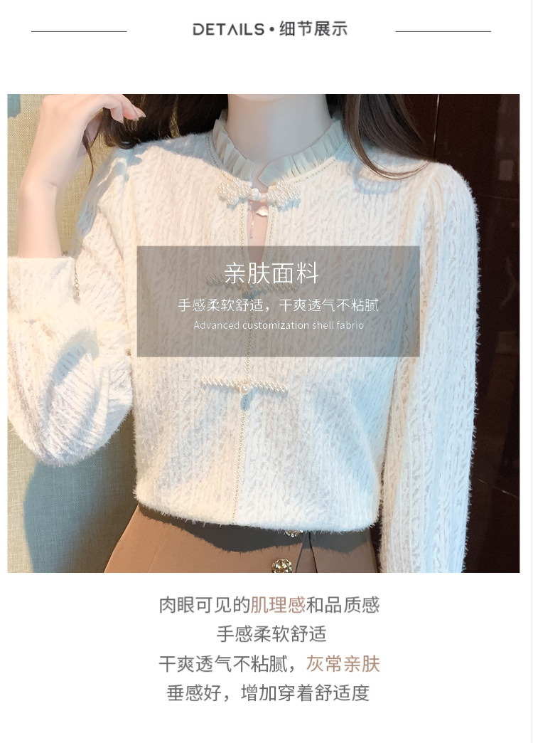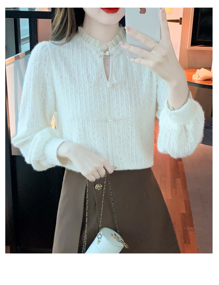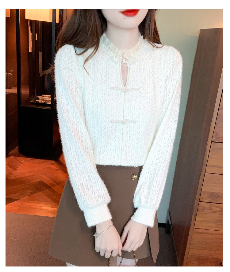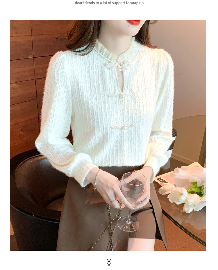 盘扣蕾丝打底衫女,冬加绒内搭别致上衣长袖磨毛洋气小衫AYL-2993