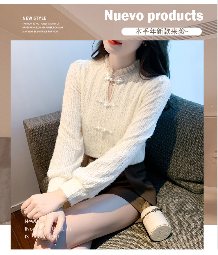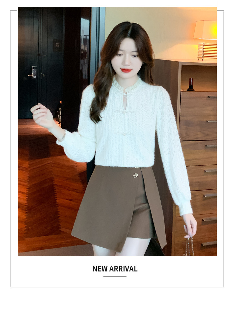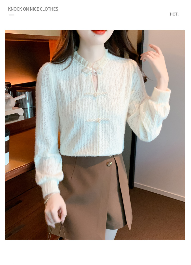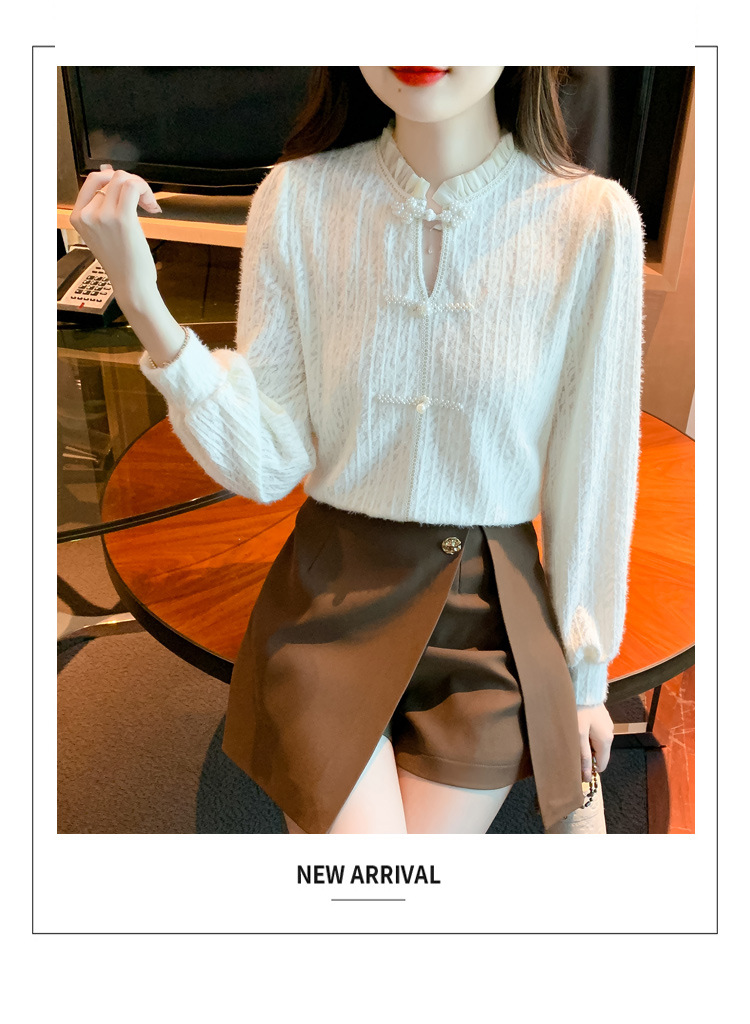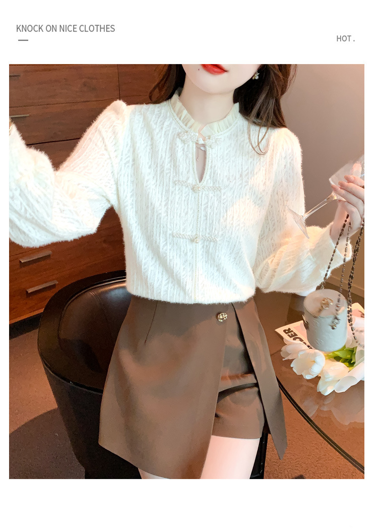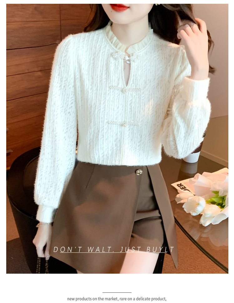 盘扣蕾丝打底衫女,冬加绒内搭别致上衣长袖磨毛洋气小衫AYL-2993